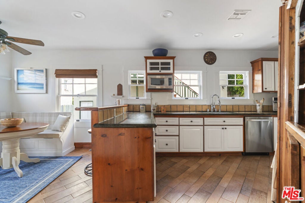 *Property to be delivered vacant* Steps from the sand, this beautifully maintained Craftsman Duplex offers a 2,139 SF Craftsman home with ocean views, timeless charm, complemented by a completely separate and enchanting 600 SF one-bedroom apartment located above a remarkable three-car garage (one open space). The main residence features a fully converted separate living area on the lower floor with kitchenette and full bath (550 SF not included in total square footage) offering flexible use as part of the home or as a private living space. Ideally located just steps from the ocean, Shutters and the beloved Capo Italian restaurant and cafe, this truly one-of-a-kind property is nothing short of magical and located on a quiet and historic block. The home is graced by a welcoming front yard and patio, as well as a serene rear courtyard that thoughtfully separates the two structures. Classic Craftsman elegance abounds, with ocean views, a wood-burning fireplace, original hardwood floors, and beautifully preserved architectural details throughout. The en-suite primary bedroom enjoys ocean views, a large bath with separate tub and shower and a spacious walk-in closet. A charming breakfast nook and delightful kitchen complete the experience, highlighted by a pristine Gaffers & Sattler retro double oven with six burners, a rare and striking centerpiece. The separate one-bedroom apartment, located above the garages and accessed through the courtyard and Vicente Court, is filled with character and offered in move-in condition (possibly furnished). Live the quintessential Santa Monica beach lifestyle, where breathtaking sunsets, surfing, walking, and biking are part of everyday life with nearly everything conveniently accessible by foot or bicycle. **This Craftsman Duplex generates $150,000 in annual income NOT including the home**. This special property is a must see!
