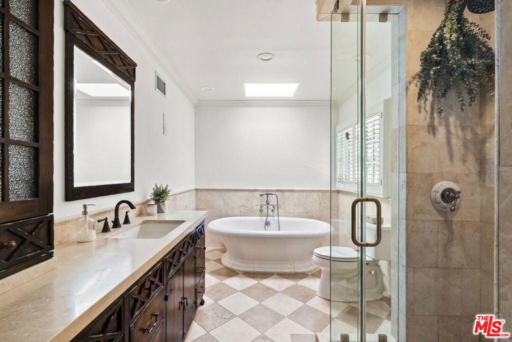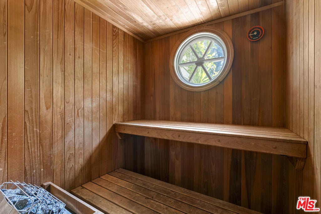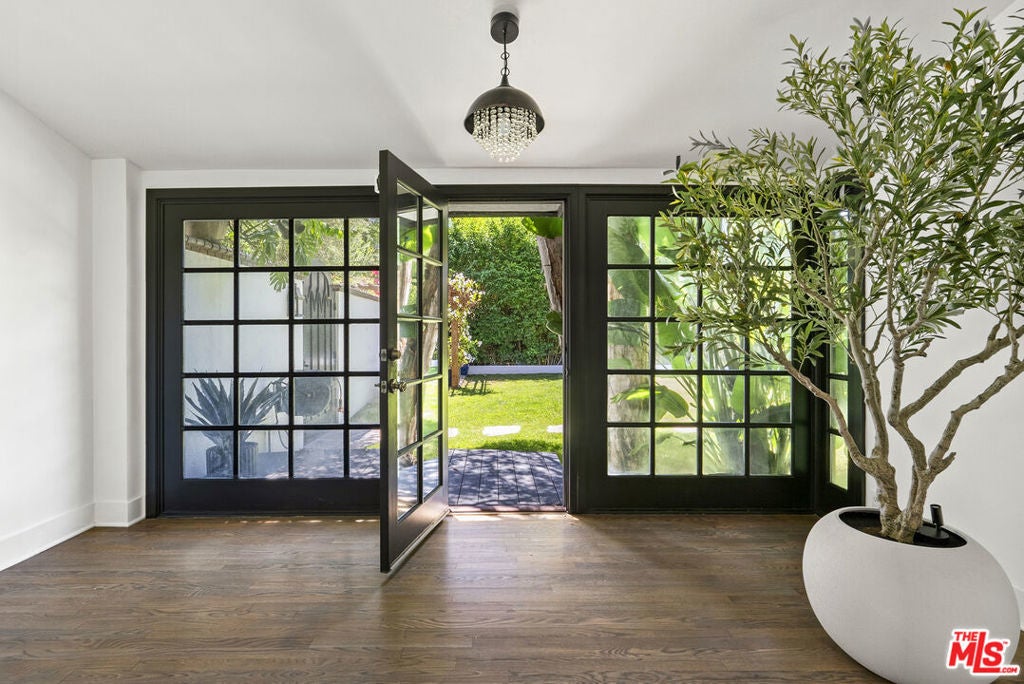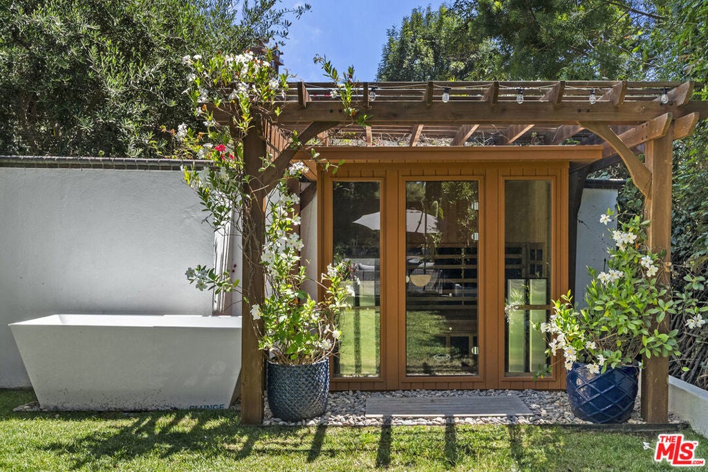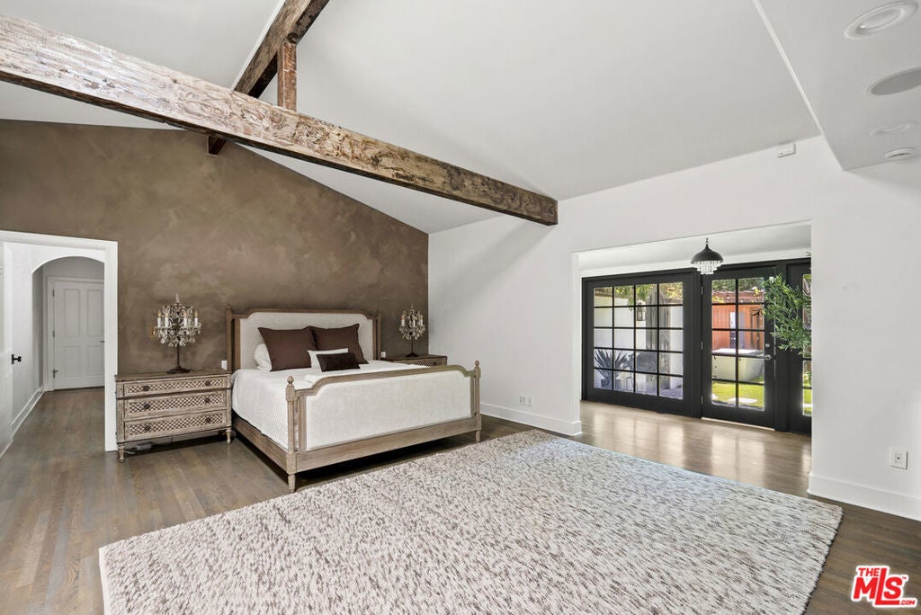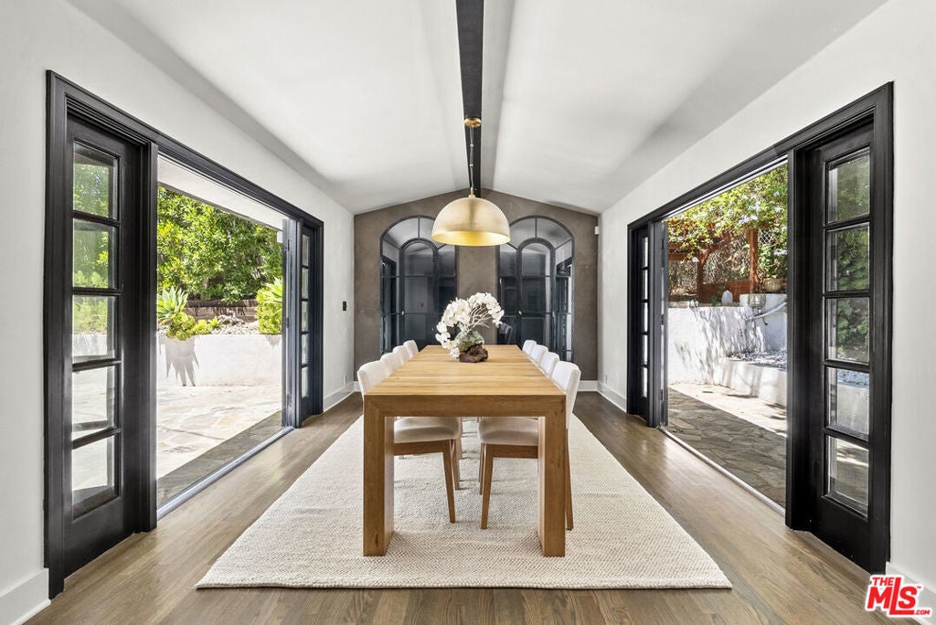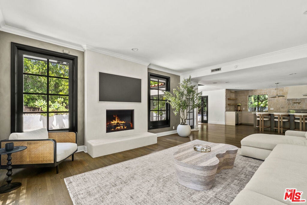 Tucked behind private gates at the end of a quiet drive, this reimagined Beverly Hills retreat embodies the essence of modern California living. Beyond the garden wall, the estate opens to a park-like sanctuary surrounded by mature trees, curated landscaping, and complete privacyan atmosphere that feels worlds away, yet just minutes from the heart of Beverly Hills.Recently and thoughtfully redesigned, the home embraces a bright, contemporary floor plan with effortless indooroutdoor connection through expansive French doors. Vaulted, beamed ceilings and skylights bathe the interiors in natural light, creating an elevated yet relaxed ambiance throughout.The spacious living room centers on a striking fireplace and wide-plank hardwood floors that flow seamlessly to the outdoor terraces. The residence offers three bedrooms and three baths, including a serene primary suite with a sitting area, fireplace, dry sauna, and an oversized walk-in closet. The spa-inspired bath features a soaking tub, steam shower, and dressing area rivaling a luxury resort.At the heart of the home, the chef's kitchen is outfitted with stone countertops and professional-grade appliances, opening to a sunlit dining area perfect for everyday living and entertaining.Altogether, this private, design-forward estate captures the romance of indoor/outdoor California living refined, tranquil, and moments from the best of Beverly Hills.