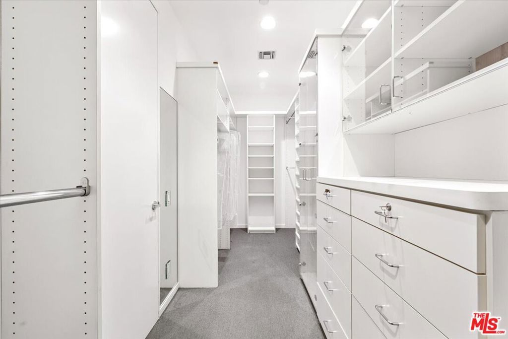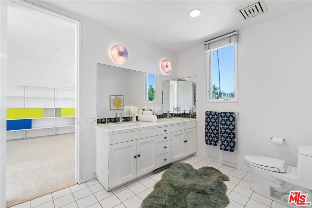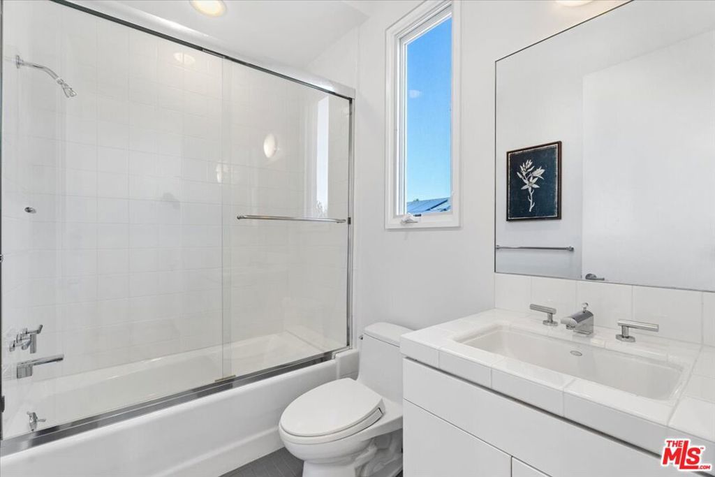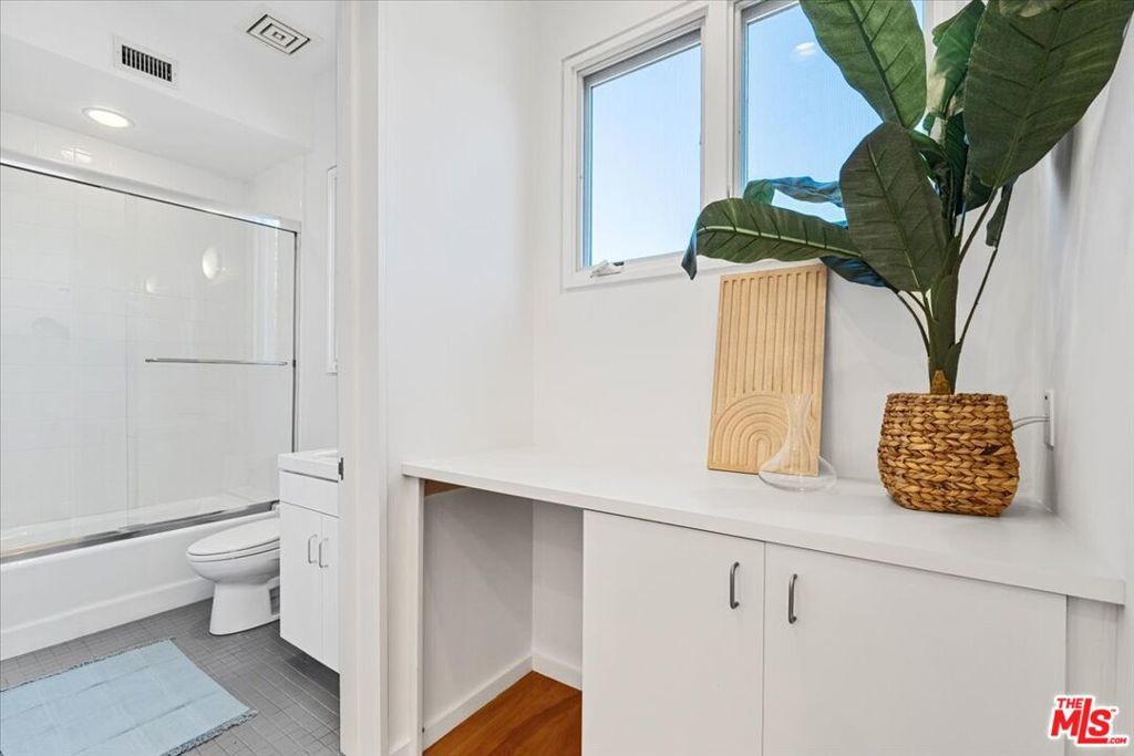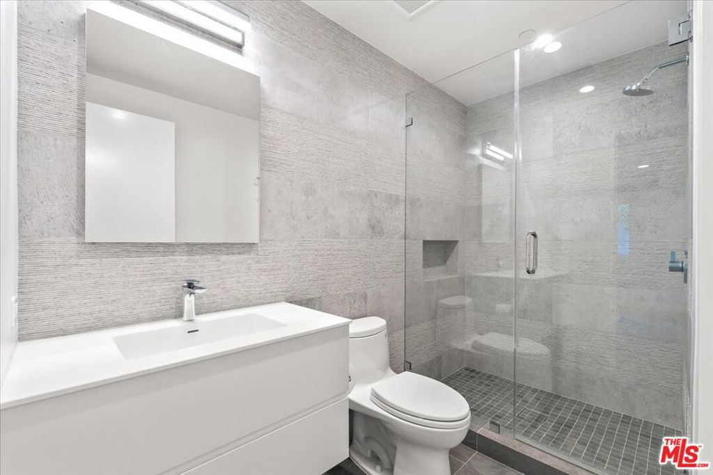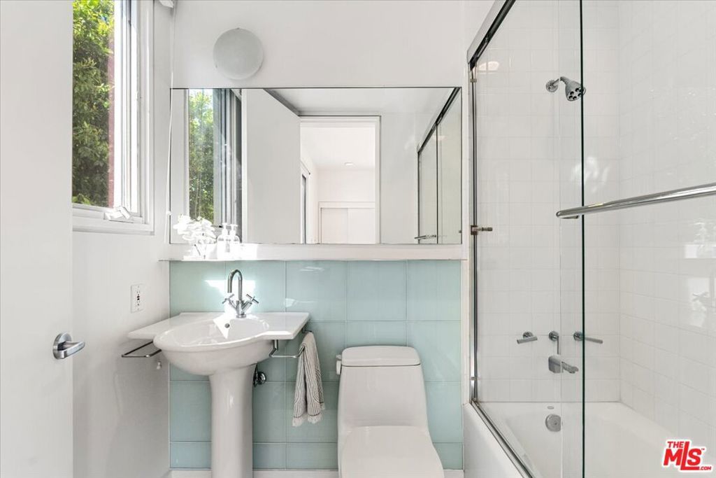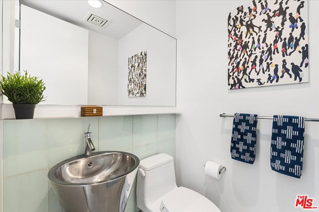 Tucked into one of the most sought-after streets in the Toluca Lake/Burbank pocket, this architectural home sits within a tightly held enclave of just 23 residences, a location that rarely comes available and is well known locally for its privacy and feel. The home pairs clean, modern design with warmth and livability, using materials like glazed concrete, birch, and cherry wood to create a refined, grounded aesthetic throughout. A two-story atrium and expansive skylights bring in natural light, enhancing the open main level that connects the living, dining, and kitchen spaces. The kitchen features Bulthaup cabinetry, Miele and Sub-Zero appliances, granite countertops, and custom wood finishes. Large sliding doors open to a private backyard designed for both everyday use and entertaining, with a pool, spa, firepit, and mature palms creating a true indoor-outdoor flow. The first floor also includes a powder room, a guest suite with its own patio, and a flexible bonus space ideal for a media room, gym, or office. Upstairs, the primary suite offers high ceilings, dual walk-in closets, and a well-appointed bath. A separate office suite with its own workspace and balcony adds flexibility, along with three additional bedrooms and a tucked-away reading nook. Located near the studios and the shops and restaurants in the Village of Toluca Lake along Riverside Drive, with easy access to the 134, 101, and 5, this home offers a rare combination of privacy, design, and convenience.