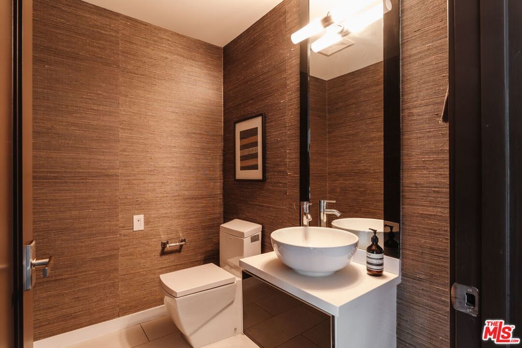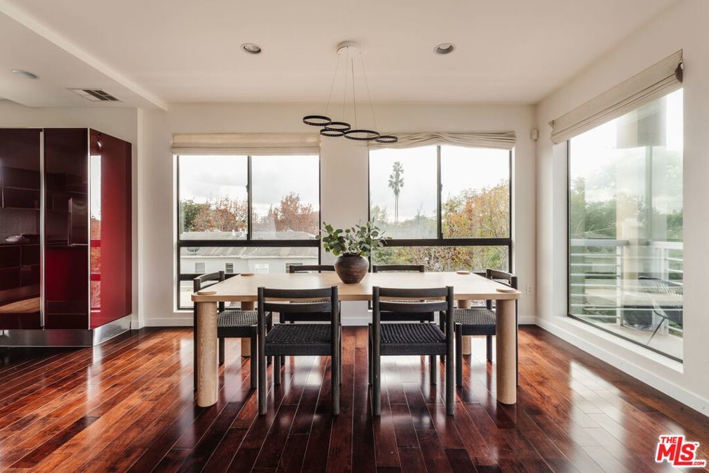Steps from Melrose Place, this light-filled residence is one of just 6 units in an intimate, contemporary West Hollywood building. This bright two-bedroom condo offers an expansive open floor plan designed for comfortable living and easy entertaining. Walls of glass and corner windows fill the home with natural light while capturing treetop and Hollywood Hills views. Sliding doors open to a private balcony off the main living space, creating seamless indoor-outdoor flow. While open in layout, the living spaces feel thoughtfully defined, with a cozy living room centered around a fireplace, a generous dining area, and a high-end Italian kitchen with a large center island that naturally becomes the heart of the home and an ideal space for gathering and entertaining. The spacious primary suite features its own fireplace, a custom walk-in closet, and a large bath with dual vanities, glass-enclosed shower, and separate soaking tub. The guest bedroom is well sized, offering two closets and an en-suite bath, ideal for guests, family, or a home office. Additional highlights include a powder room, separate laundry room with side-by-side washer and dryer, and gated parking with two assigned spaces plus guest parking. Ideally located near West Hollywood's best dining, shopping, nightlife, and the beloved Sunday Melrose Place Farmers Market, this residence offers style and exceptional livability in one of L.A.'s most desirable neighborhoods.