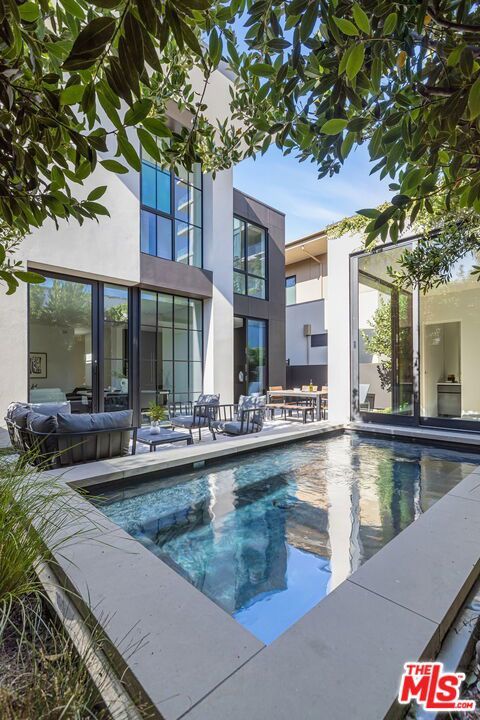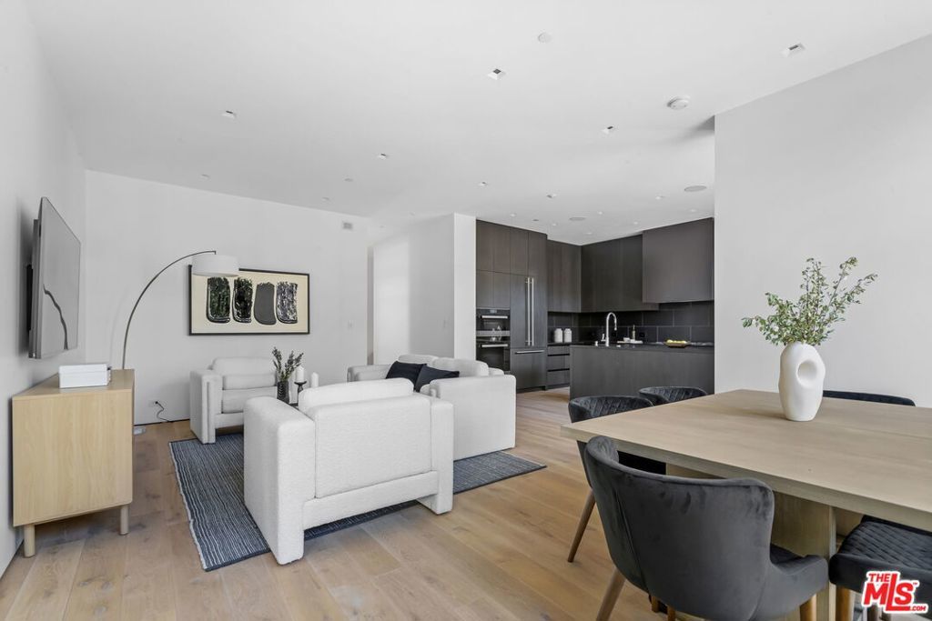 Glass House at 8899 Beverly. West Hollywood luxury presides at 8890 Rosewood Avenue where incredible resort amenities meet architectural brilliance. This exceptional home is part of a unique collection of eight signature homes crafted by the world-renowned architect Olson Kundig, each boasting a distinctive material palette and a one-of-a-kind living experience. Glass House is a stunning home with unparalleled features that epitomize comfort and understated opulence. This three-bedroom, two-level masterpiece immediately makes an impression with a modern exterior featuring exposed structural steel and a curved standing-seam metal roof, complemented by a painted metal trellis wrapping from the front to the side entry. True to its name, Glass House makes use of extensive glazing, soaring ceiling heights, and a natural flow between the indoor and outdoor environments to create open, airy living spaces. Sophisticated yet welcoming in design, the interior boasts wood floors, Lutron HomeWorks QS System lighting, and Fleetwood glazed doors and windows. The gourmet kitchen features top-of-the-line Gaggenau and Miele appliances, dark-stained white oak cabinetry, and custom paneling. A custom stairwell with open-riser wood treads and exposed steel curates an artful transition from level to level.Upstairs, the primary suite includes a private balcony adorned with a woven-wire mesh guardrail and steel grate decking, providing a tranquil retreat to unwind and admire the views. The ensuite bathroom has full stone flooring and walls made of Danube marble. Outside, find a chaparral-inspired garden curated by Coen + Partners, a pool and spa, and a guest house. Explore the eclectic palette of crepe myrtle and cork oak trees, exuberant bougainvillea, sea lavender, and fairy crassula, creating a picturesque backdrop for outdoor gatherings. The signature collection deftly blends individuality and privacy with exceptional resort lifestyle amenities. 8899 Beverly Boulevard - offers residents access to 24-hour concierge service, a state-of-the-art fitness center, and a lushly landscaped oasis with a resort-style pool, spa, a custom outdoor kitchen, and an on-site restaurant, Stella. Experience the epitome of luxury urban living in West Hollywood.