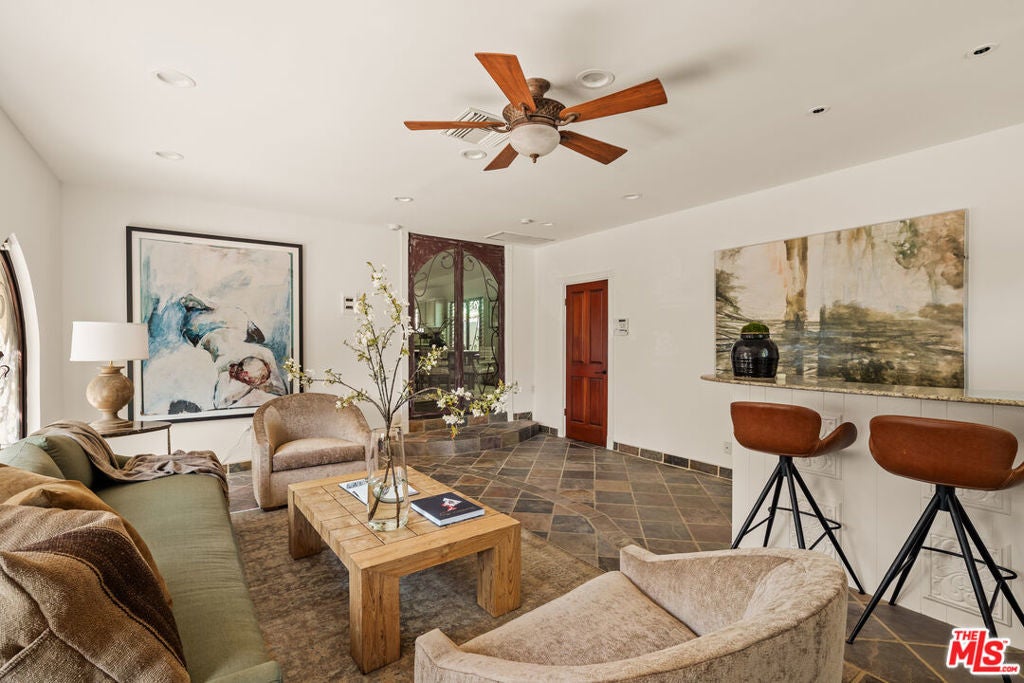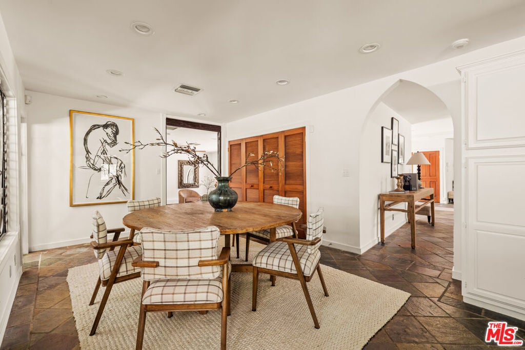 Sited in one of Studio City's most desirable neighborhoods south of Ventura Boulevard, this Mediterranean inspired residence blends timeless character with a thoughtfully designed floor plan and an impressive sense of scale. A grand entry opens to a dramatic living room with soaring ceilings and abundant natural light, creating an immediate sense of openness and warmth. The home offers a seamless flow between living spaces, with a well-appointed kitchen and dining area that connect effortlessly to a versatile den, ideal as a media room, lounge, or additional gathering space. A separate formal dining room with a built-in bar, offers a refined setting for hosting. The layout features 4 generously sized bedrooms, including one currently configured as a custom office, along with well-appointed bathrooms. The living room opens to a private, greenery-filled backyard with multiple seating areas, an elevated deck, and built-in barbecue, creating an inviting setting for outdoor dining and entertaining. Ideally located just moments from the shops, restaurants, and cafes along Ventura Boulevard, and within the highly sought-after Carpenter Community Charter School district, the home offers a rare blend of space, privacy, and convenience in one of Studio City's most desirable neighborhoods - The Donas.