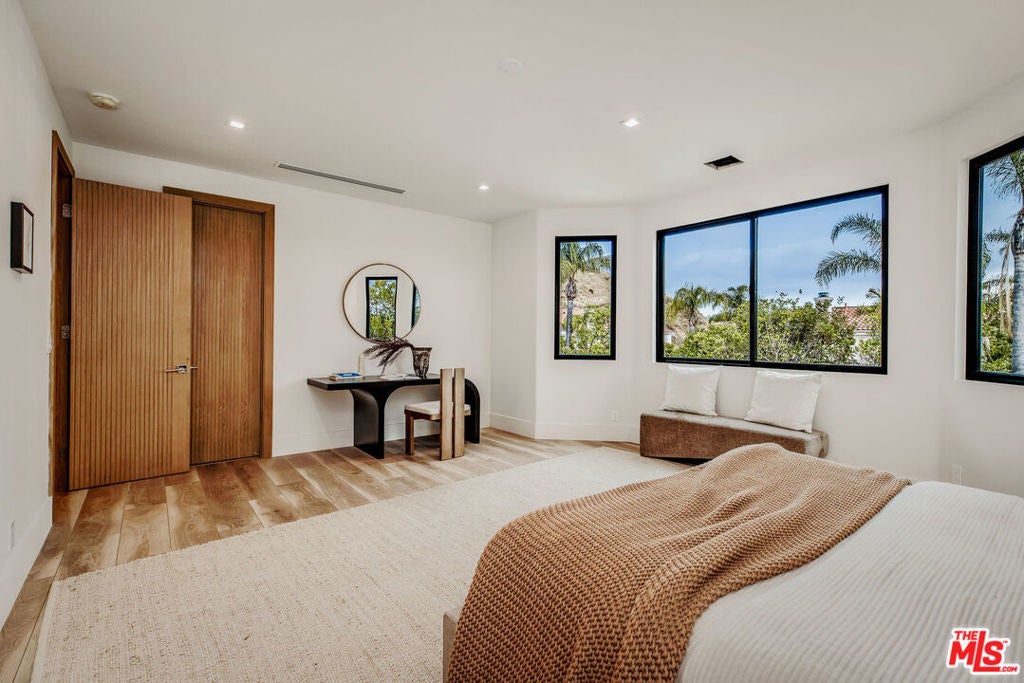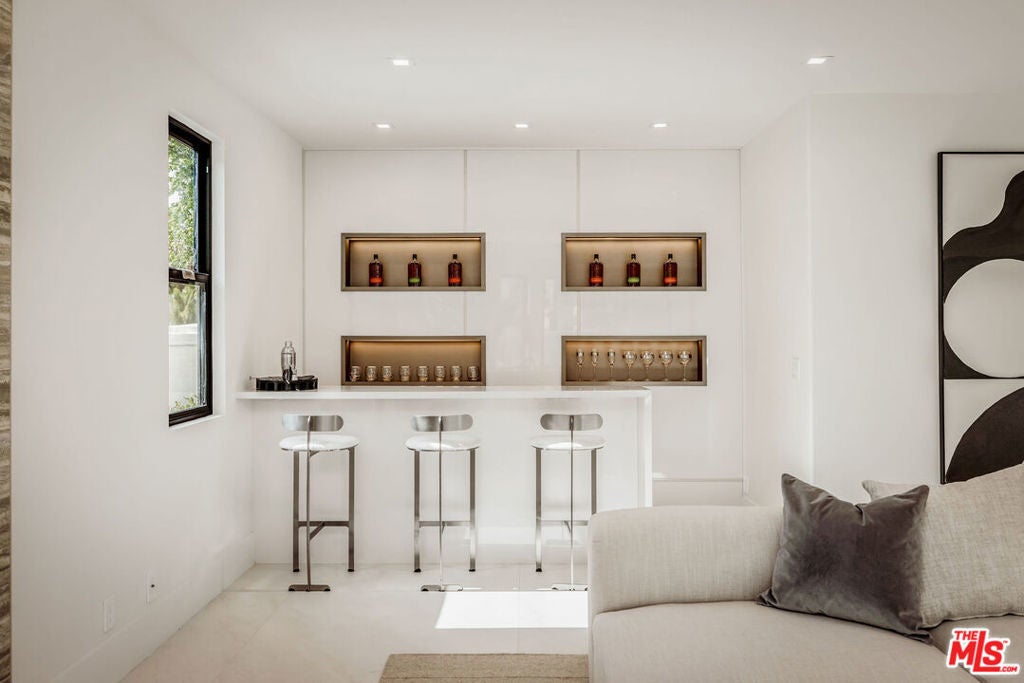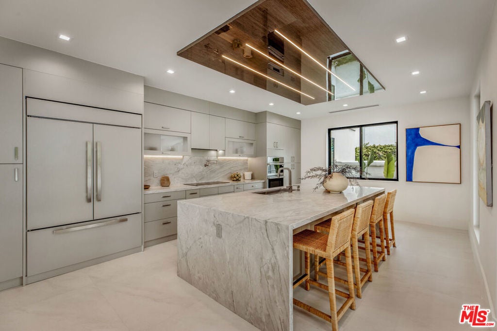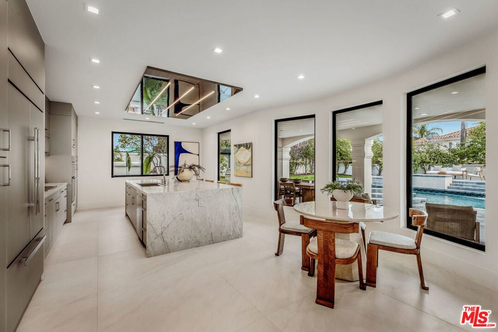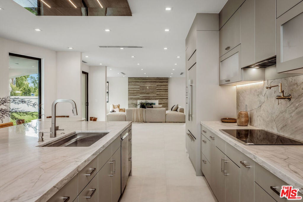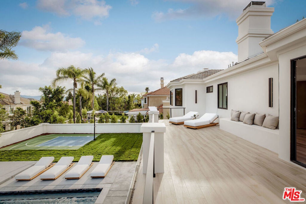 Newly completed 2026 designer remodel in guard-gated Mountain View Estates, adjacent to Hidden Hills. Set on a quiet cul-de-sac, this ELM Studio Homes renovation, designed and built by ELM Studio Homes, blends modern architecture with warm, organic finishes. A striking pivot entry opens to a dramatic two-story foyer, anchored by custom wood detailing and clean, contemporary lines throughout. The state-of-the-art kitchen features a waterfall stone island, integrated appliances, and opens seamlessly to the family room with a floor-to-ceiling travertine fireplace and indoor-outdoor flow. Formal living and dining spaces are refined yet inviting. The expansive primary suite offers a private terrace, a fireplace, and a spa-inspired bath with dual vanities, a soaking tub, and an oversized shower. Resort-style grounds include a pool, lounge areas, and a basketball court, creating a true entertainer's setting. Located moments from award-winning Las Virgenes schools, dining, and Malibu beaches.