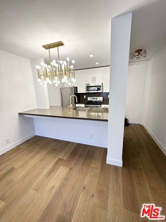 Beautifully reimagined 1-bedroom + den residence in the iconic Rob Clark Building, blending classic architectural character with elevated modern design. Wide-plank hardwood floors run throughout, setting a warm, sophisticated tone, while curated lighting and a limestone-accented fireplace add depth and style to the living space. The open-concept layout flows effortlessly, with expansive windows and sliding glass doors that flood the home with natural light and lead to a private, sunlit balcony, perfect for morning coffee or unwinding at the end of the day. A sleek, modern kitchen features Caesarstone countertops, stainless steel appliances, filtered water, and an in-unit washer/dryer, all designed with both function and style in mind. The spacious den offers flexibility for a home office, guest space, or additional lounge area. The bedroom is bright and inviting, complemented by a custom walk-in closet with high-end built-ins. The bathroom is equally refined, showcasing designer tilework, custom cabinetry, and a full tub/shower. Set in one of West Hollywood's most walkable locations, moments from Melrose, dining, and shopping, this is a standout residence in one of the area's most sought-after buildings.