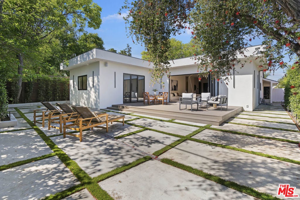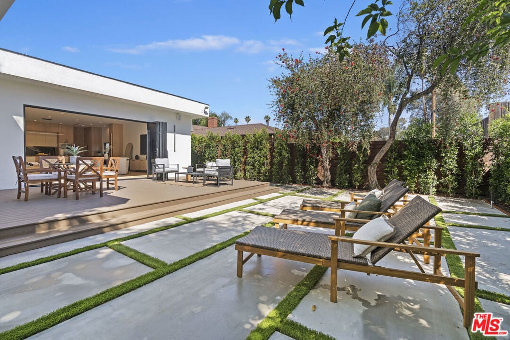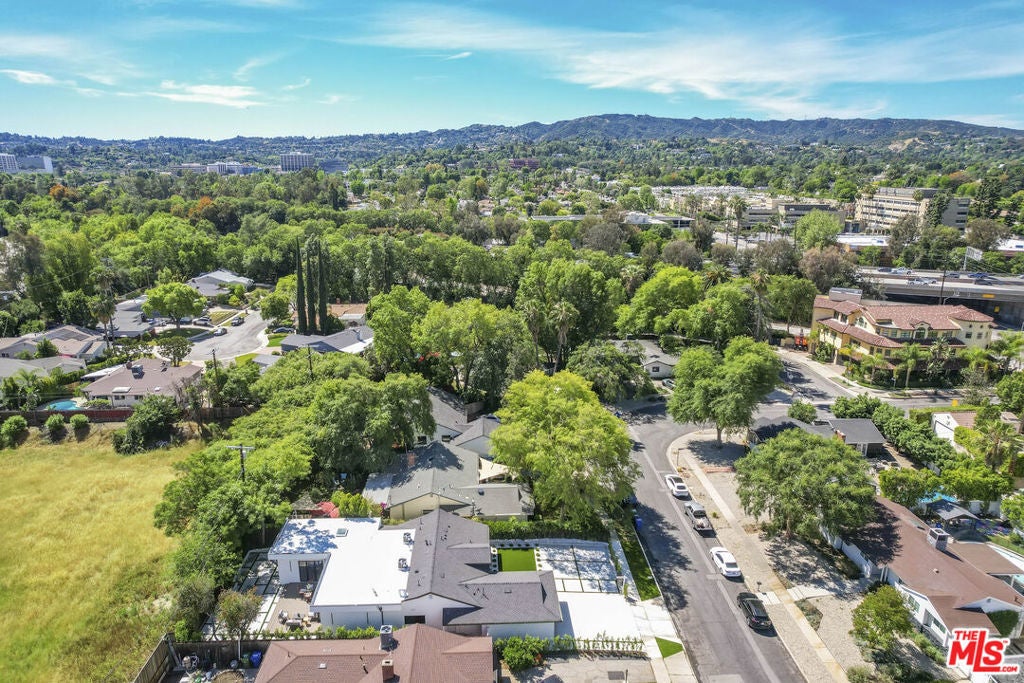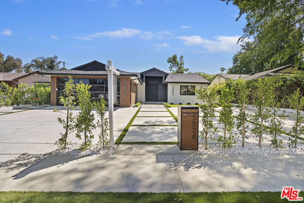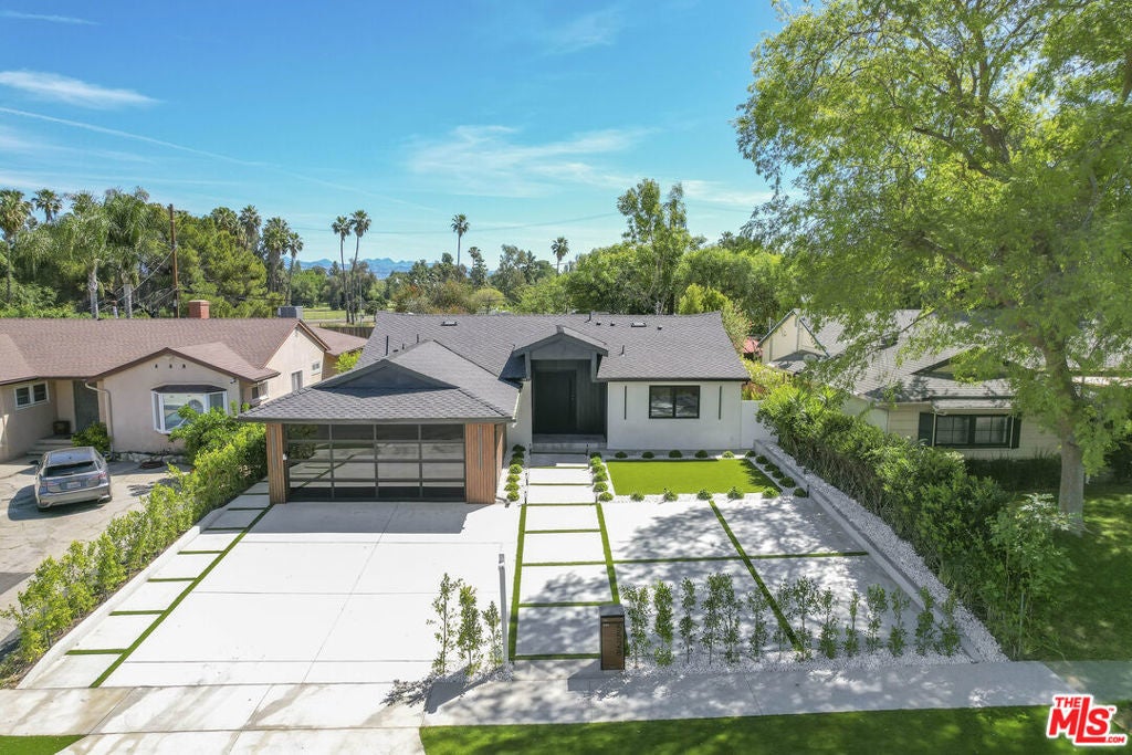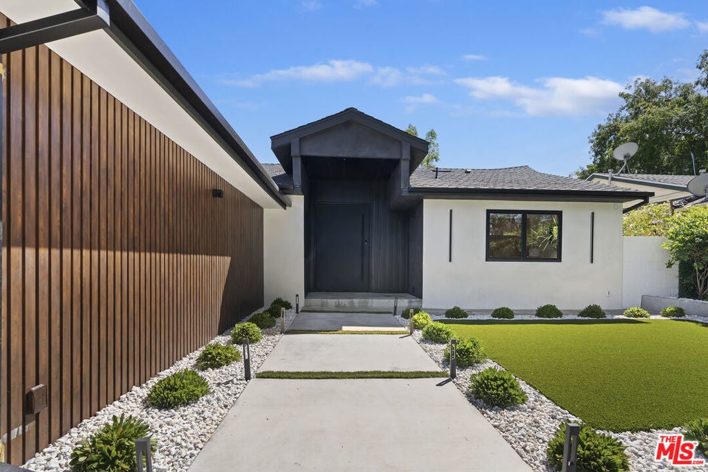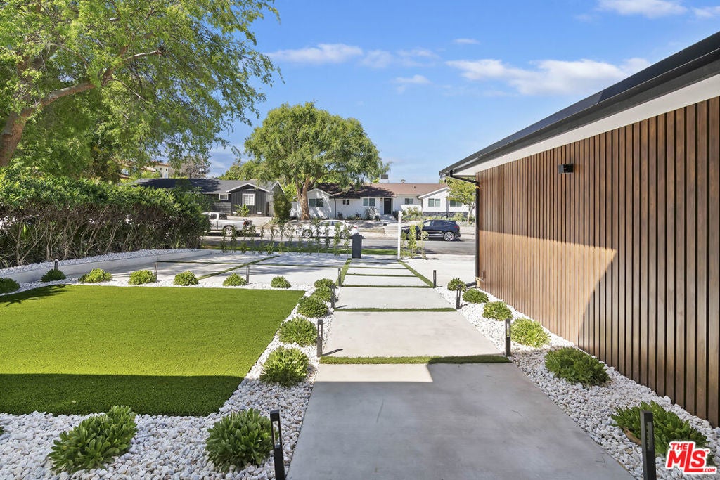 Welcome to this exquisite modern estate in the heart of Encino. This magnificent single-story residence offers 4 bedrooms and 4 bathrooms, thoughtfully designed with elegance, comfort, and seamless indoor-outdoor living in mind. As you step inside, you are greeted by an open-concept floor plan that flows effortlessly from the entryway to the backyard. The chef's kitchen features custom cabinetry, premium Thermador appliances, a sleek modern island, and a spacious walk-in pantry with direct access to the garage perfect for everyday convenience. The living room is light-filled and inviting, highlighted by expansive sliding pocket doors that beautifully blur the line between indoor and outdoor living. Just off the entry, you'll find a well-appointed in-law suite complete with its own bathroom and a custom-designed closet ideal for guests, extended family, or a private home office. The primary suite is a true retreat, featuring a luxurious spa-inspired bathroom, a thoughtfully designed walk-in closet, and sliding pocket doors that open to a serene outdoor deck, creating a peaceful and airy ambiance. Two additional bedrooms are conveniently located on the same wing, along with a dedicated laundry area and a stylish powder room. Beautifully landscaped front yard offers great curb appeal with clean modern lines, mature greenery, and a welcoming entry. The private backyard is designed for both relaxation and entertaining, featuring low-maintenance landscaping, ample space for outdoor dining and BBQ, and a serene setting ideal for gatherings or quiet evenings under the stars. Prime Encino location, centrally situated near parks, convenient freeway access, and an array of top dining and shopping options.