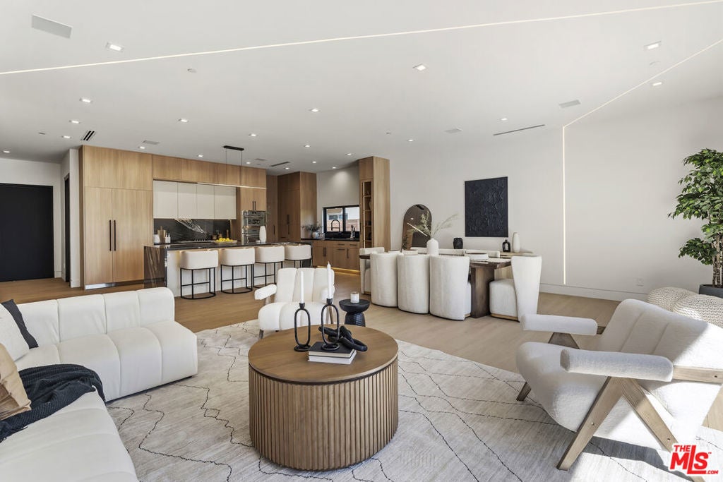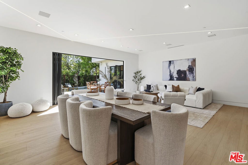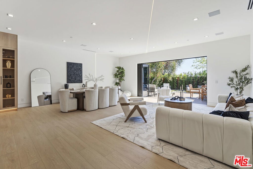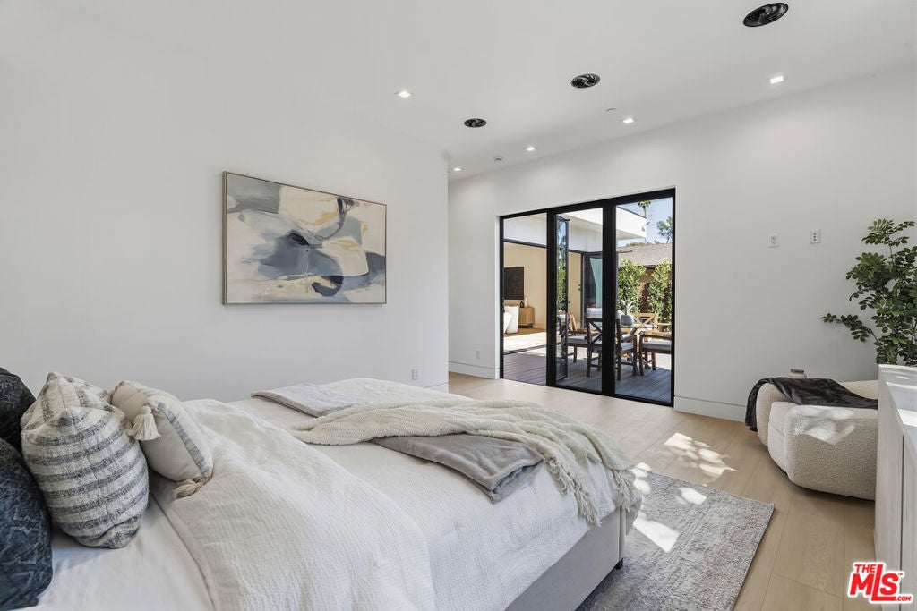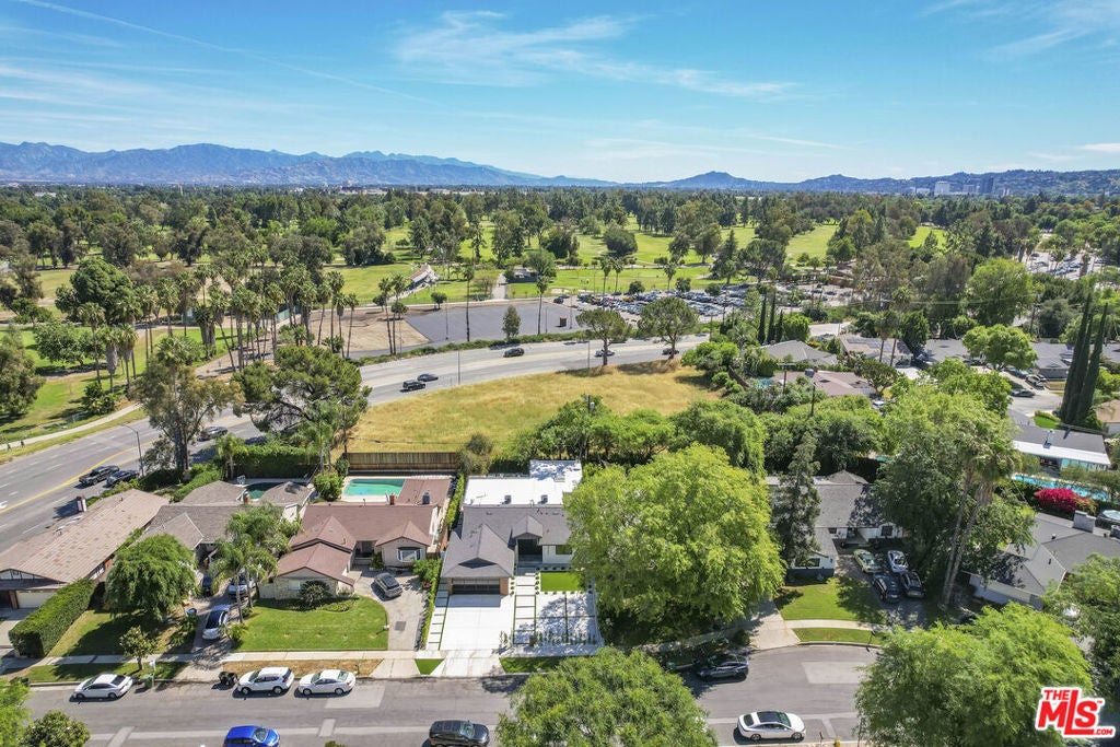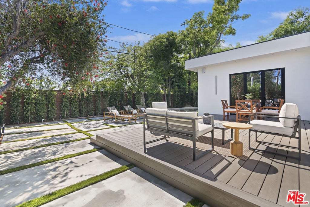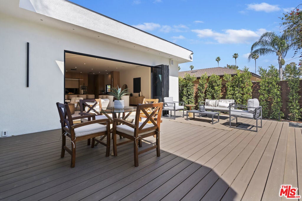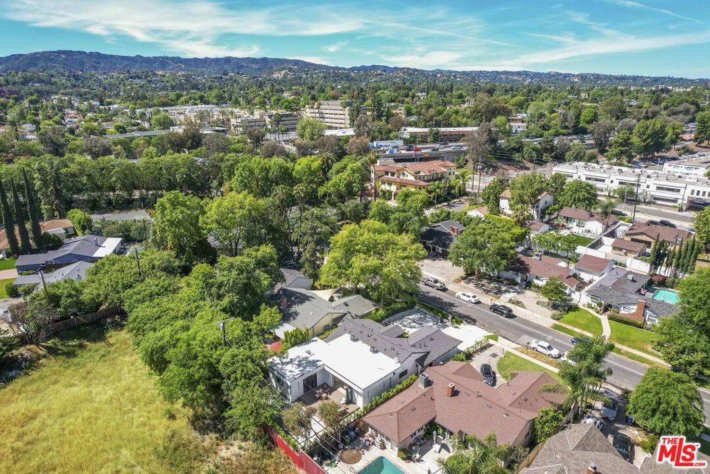 Welcome to this exquisite modern estate in the heart of Encino. This magnificent single-story residence offers 4 bedrooms and 4 bathrooms, thoughtfully designed with elegance, comfort, and seamless indoor-outdoor living in mind. As you step inside, you are greeted by an open-concept floor plan that flows effortlessly from the entryway to the backyard. The chef's kitchen features custom cabinetry, premium Thermador appliances, a sleek modern island, and a spacious walk-in pantry with direct access to the garage perfect for everyday convenience. The living room is light-filled and inviting, highlighted by expansive sliding pocket doors that beautifully blur the line between indoor and outdoor living. Just off the entry, you'll find a well-appointed in-law suite complete with its own bathroom and a custom-designed closet ideal for guests, extended family, or a private home office. The primary suite is a true retreat, featuring a luxurious spa-inspired bathroom, a thoughtfully designed walk-in closet, and sliding pocket doors that open to a serene outdoor deck, creating a peaceful and airy ambiance. Two additional bedrooms are conveniently located on the same wing, along with a dedicated laundry area and a stylish powder room. Beautifully landscaped front yard offers great curb appeal with clean modern lines, mature greenery, and a welcoming entry. The private backyard is designed for both relaxation and entertaining, featuring low-maintenance landscaping, ample space for outdoor dining and BBQ, and a serene setting ideal for gatherings or quiet evenings under the stars. Prime Encino location, centrally situated near parks, convenient freeway access, and an array of top dining and shopping options.