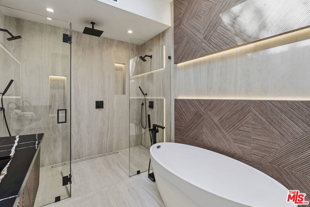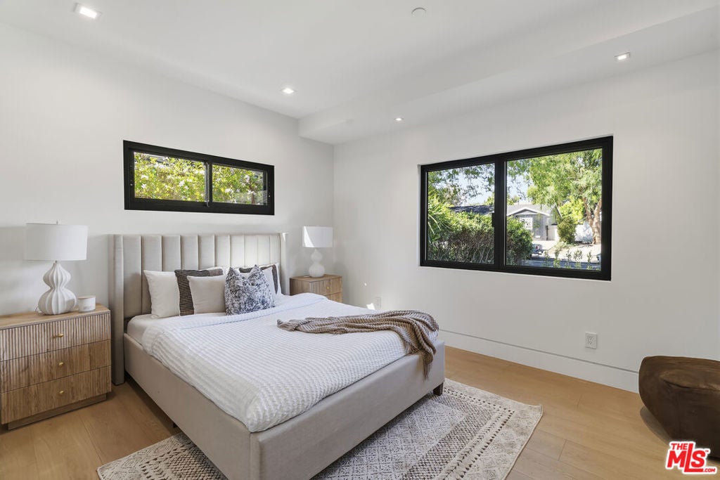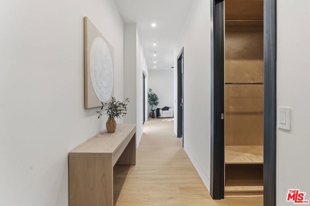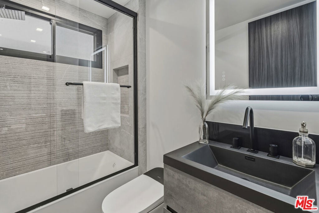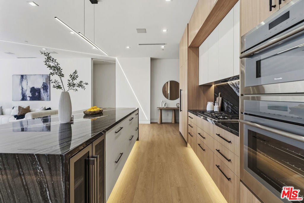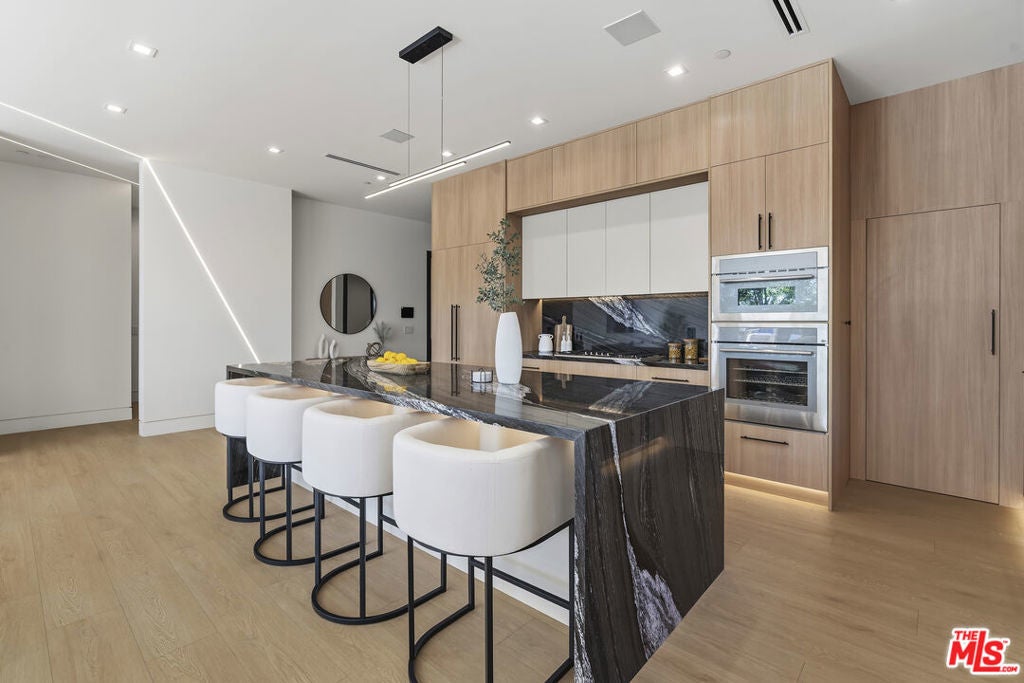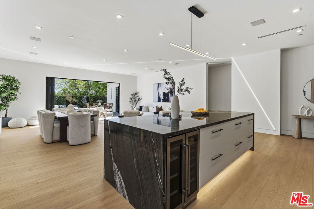 Welcome to this exquisite modern estate in the heart of Encino. This magnificent single-story residence offers 4 bedrooms and 4 bathrooms, thoughtfully designed with elegance, comfort, and seamless indoor-outdoor living in mind. As you step inside, you are greeted by an open-concept floor plan that flows effortlessly from the entryway to the backyard. The chef's kitchen features custom cabinetry, premium Thermador appliances, a sleek modern island, and a spacious walk-in pantry with direct access to the garage perfect for everyday convenience. The living room is light-filled and inviting, highlighted by expansive sliding pocket doors that beautifully blur the line between indoor and outdoor living. Just off the entry, you'll find a well-appointed in-law suite complete with its own bathroom and a custom-designed closet ideal for guests, extended family, or a private home office. The primary suite is a true retreat, featuring a luxurious spa-inspired bathroom, a thoughtfully designed walk-in closet, and sliding pocket doors that open to a serene outdoor deck, creating a peaceful and airy ambiance. Two additional bedrooms are conveniently located on the same wing, along with a dedicated laundry area and a stylish powder room. Beautifully landscaped front yard offers great curb appeal with clean modern lines, mature greenery, and a welcoming entry. The private backyard is designed for both relaxation and entertaining, featuring low-maintenance landscaping, ample space for outdoor dining and BBQ, and a serene setting ideal for gatherings or quiet evenings under the stars. Prime Encino location, centrally situated near parks, convenient freeway access, and an array of top dining and shopping options.