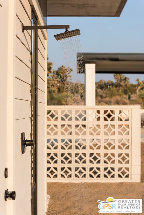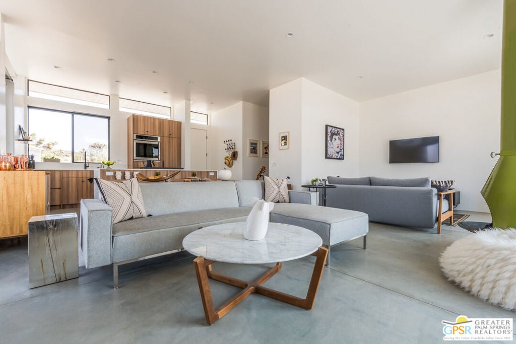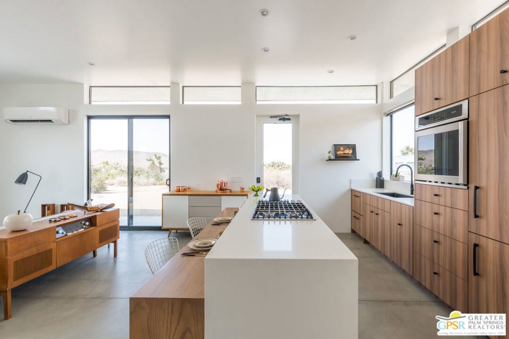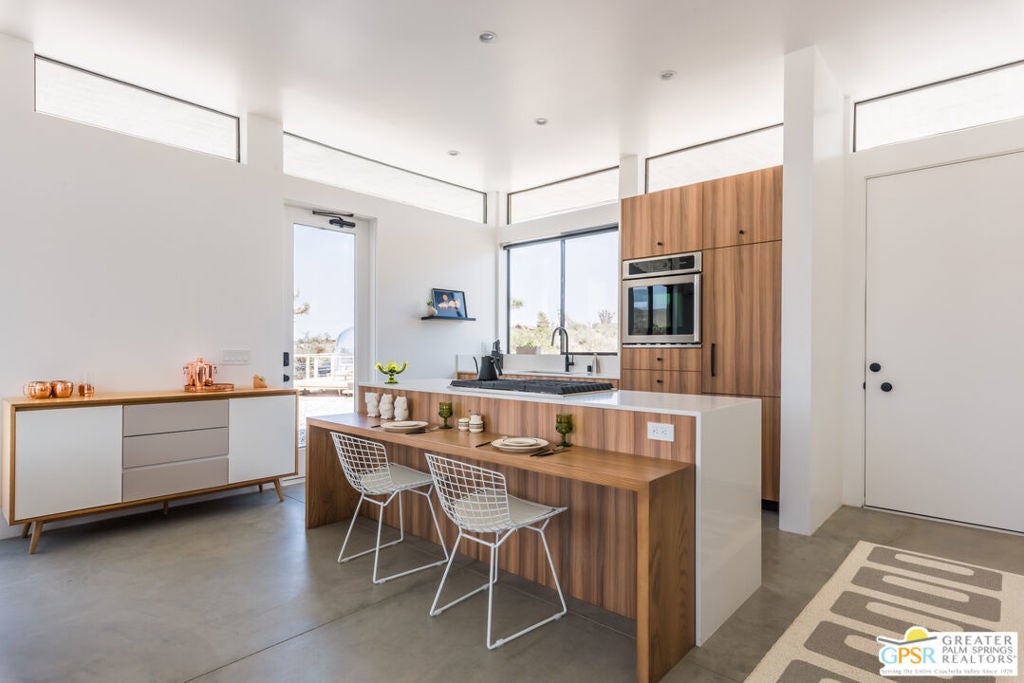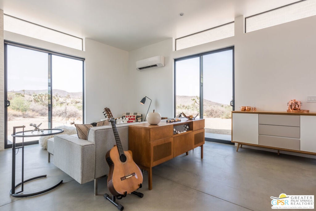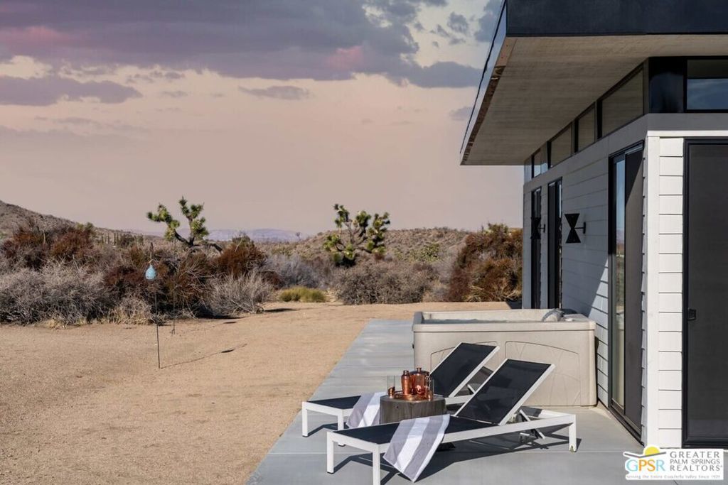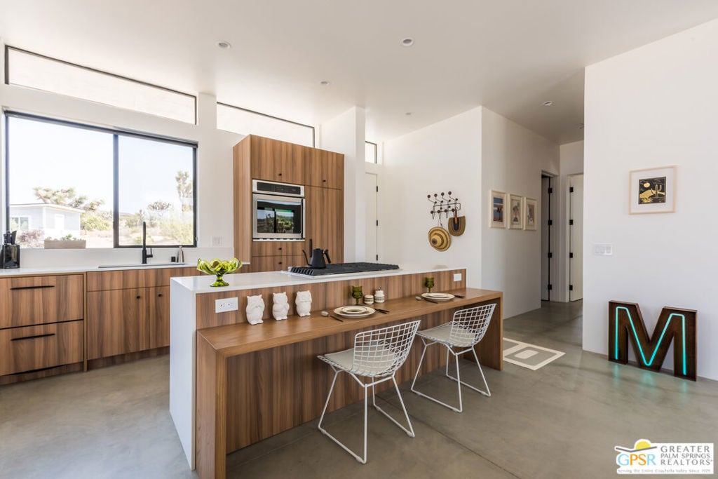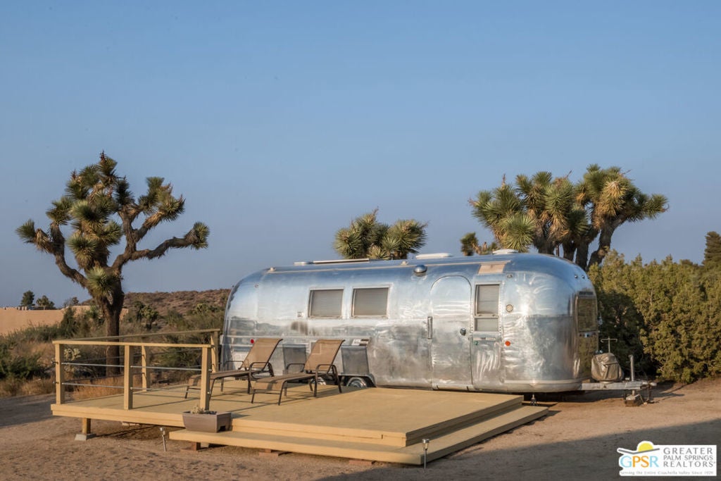 Amazing opportunity--one of a kind, one owner custom built by architect Cioffi as a High Desert retreat sited on nearly 2.5 acres of stunning and natural desert landscape featuring abundant flora and mesmerizing Mt. San Gorgonio views. Property is a proven and successful cash generating vacation rental with pride of ownership abounding. Stunning Mid-Century Modern influenced finishes and embellishments, 5-star hotel quality baths and an abundance of natural light. Outdoors you will enjoy the covered entertainment pavilion with full kitchen and dining space for family & friends and the included hot tub for nights of stargazing. The fully outfitted chef's kitchen offers refined cabinetry, quartz countertops and upscale appliances. High ceilings, clerestory windows and views from every room. House your guests in the included 1968 Vintage solar powered Airstream which is connected to septic, propane and water. This low-maintenance property is a perfect full time, second home or investment property. The very private setting is easily accessible to Palm Springs and Los Angeles. A magnificent and rare escape. Some furnishings and art available outside of escrow.
