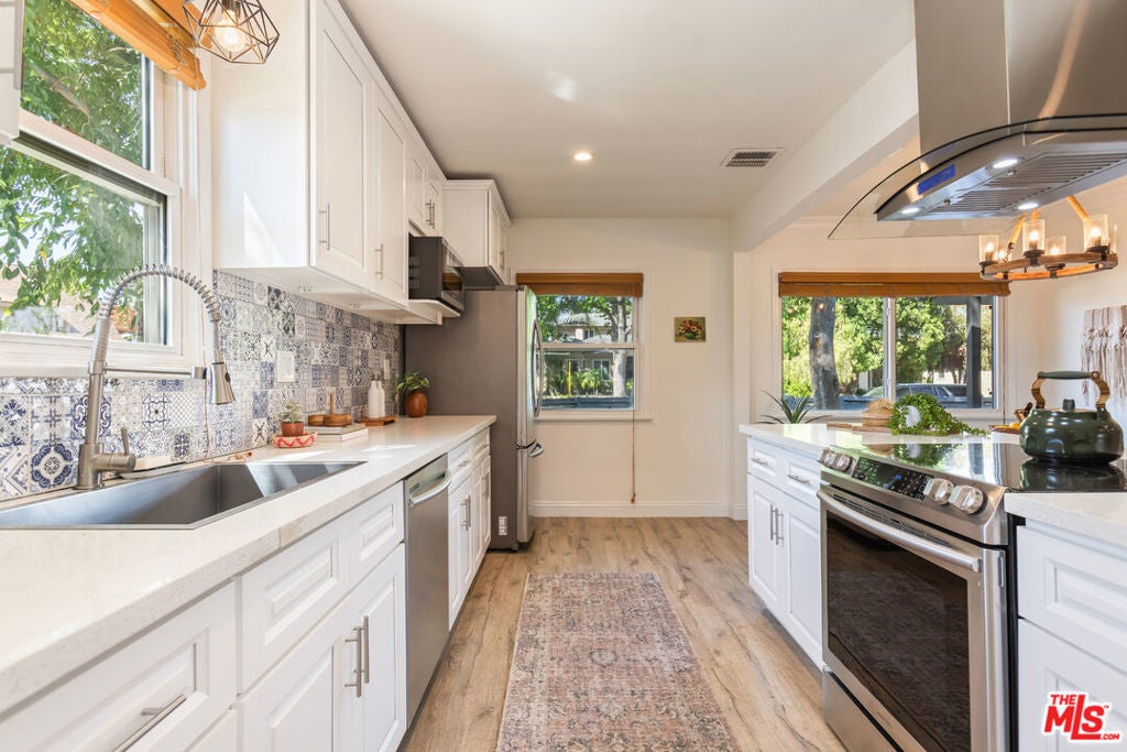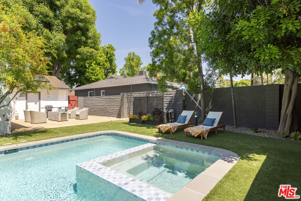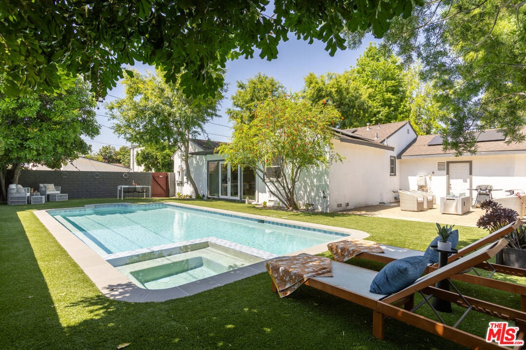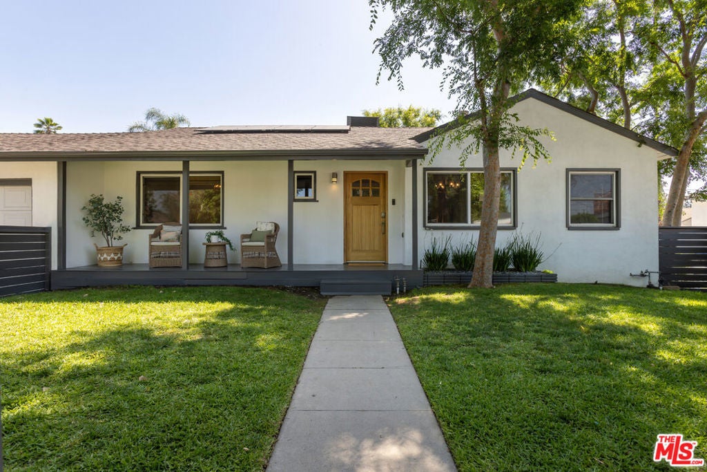 This bright and charming 3-bedroom, 2-bathroom Valley Glen home has been thoughtfully cared for, with plenty of meaningful updates throughout. The open living space flows easily, with a formal dining room featuring exposed beams and French doors that open out to the pool and spacious backyard. The kitchen is clean and modern, with quartz countertops and stainless steel appliances. The interior has been freshly painted, along with the front porch and fence, giving everything a crisp, move-in-ready feel. Out back, the yard is set up for classic Southern California living. The pool and spa were remodeled in 2023 with a new heater and pump, and the turf, drip irrigation, and sprinkler system keep maintenance simple. And there's plenty of yard space for entertaining. Some of the bigger updates are already done for you, including a newer HVAC system (2022), newer ceiling insulation and updated ductwork, a water circulator, an EV charger, and fully paid-off solar panels installed in 2023. Close to the 101 and 405 freeways near Erwin Street Elementary (9/10 on Great Schools), this home offers a location that keeps every day living convenient and accessible.