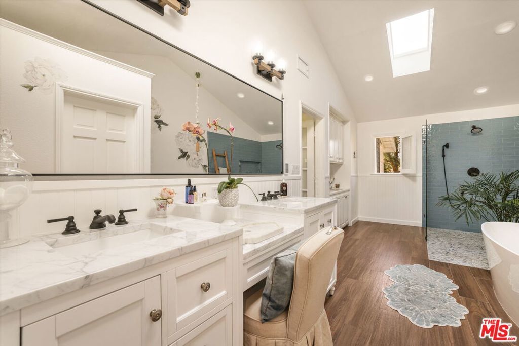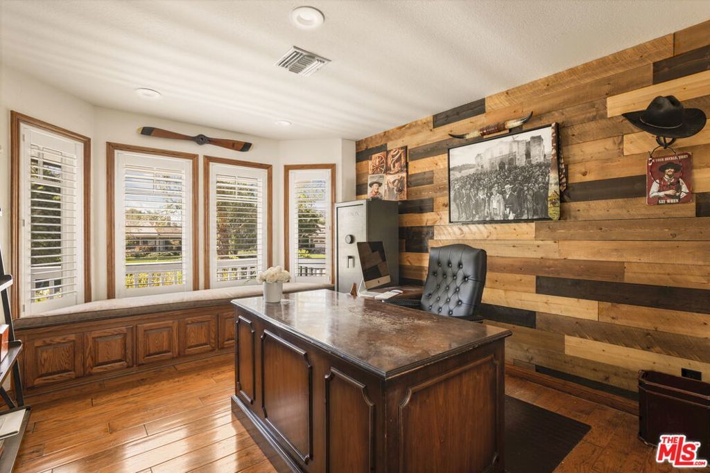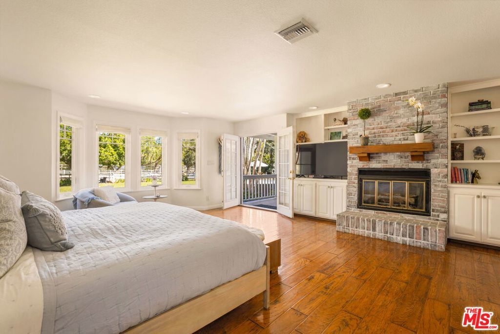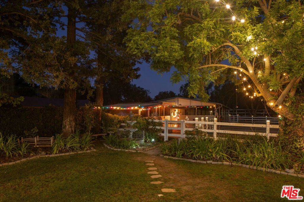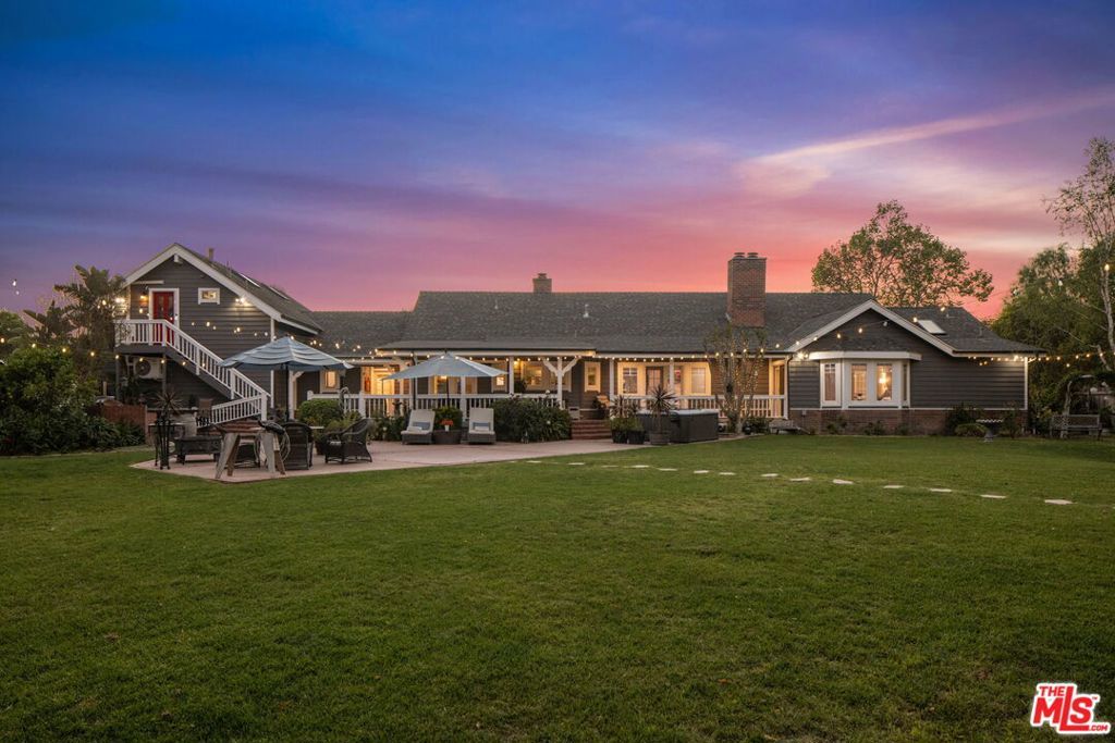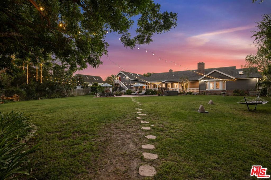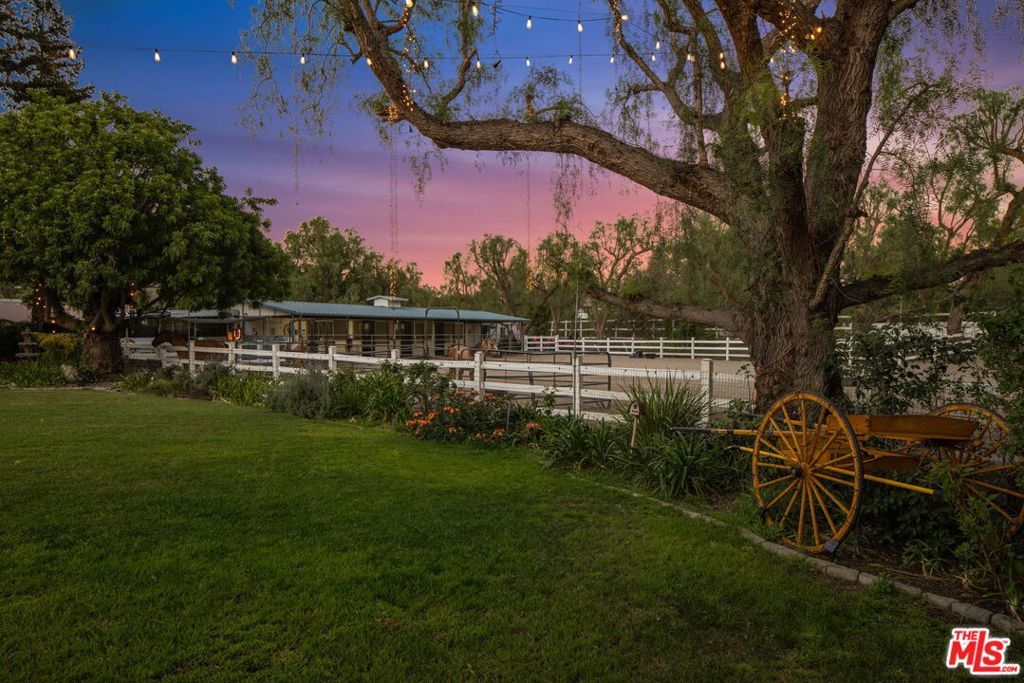 Turnkey Exceptional Equestrian Ride-Out Ranch with Direct Trail Access. Coveted equestrian property with direct riding trail access in the highly sought-after and exclusive community of Santa Rosa Valley. This rare offering is set on over one flat, usable, fully fenced and gated acre, showcasing pride of ownership throughout. The private ranch-style property offers rear gated access directly onto Santa Rosa Valley's extensive riding trail system, allowing you to saddle up and ride straight from your own property-no trailering required. This is true California ranch living at its finest. Designed for a horse-ready lifestyle, the property features equestrian facilities including a large, fenced sand arena, four-stall breezeway barn with tack and feed rooms, chicken coop, automated water and fly systems, trailer and RV parking, and convenient side access for deliveries. The layout is functional, efficient, and thoughtfully designed for daily riding, training, and animal care-making this a one-of-a-kind ride-out ranch. The ranch-style home offers 5 bedrooms and 5 bathrooms, including a 1-bedroom, 1-bath upstairs ADU with separate entrance, and a classic, traditional floor plan with distinct living spaces. Interior highlights include multiple fireplaces, a kitchen with center island, breakfast bar, breakfast area, and walk-in pantry, formal dining room, and den. The kitchen, dining area, den, primary suite, back covered patio and ADU all enjoy beautiful backyard views overlooking the sand arena, horse facilities, and mature landscaping, reinforcing the connection between home, land, and your horses. The large primary suite is a private retreat, featuring a beautiful fireplace with built-in shelving, direct patio access, and grand views of the back yard and the equestrian grounds. The spa-style en-suite bath includes a double-sink vanity, walk-in closet, skylights, and heated floors, offering comfort and relaxation. The home is designed for true indoor-outdoor living, with covered patios ideal for everyday enjoyment and entertaining, complemented by BBQ, pizza oven, and spa. The grounds are landscaped with redwood, pine, and pepper trees, rose bushes, and tree lighting, creating a private and magical ranch setting. The many newer renovations and upgrades include: Life Source water filtration system, four bathrooms, copper piping, LED lighting and switches, electric panel wired for portable backup generator, two on demand water heaters, garage door openers, new window coverings with shutters, invisible screens, and painting. The Ranch Retreat is located near the acclaimed Santa Rosa Technology Magnet School for TK-8 and short distances to Southern California's world-renowned coastal beach areas. Come and experience this private magical equestrian retreat for your ultimate lifestyle dreams!