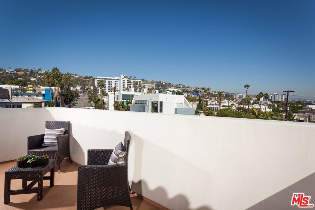 Luxurious Penthouse-like Condo at The Desmond West Hollywood. Experience elevated living in this rare two-story top floor condo at the iconic Desmond, one of the most coveted addresses in the Norma Triangle. Bathed in natural light through a dramatic arched picture window, the residence blends timeless architecture with modern upgrades. The main level showcases open-concept living and dining areas with 20+ft ceiling and a cozy fireplace that flow seamlessly to a generous balcony featuring views of the Design Center and DTLA. The chef's kitchen is updated with sleek Caesarstone countertops, marble backsplash, and stainless-steel appliances, plus in-unit laundry and a versatile en-suite guest bedroom with walk-in closet. Upstairs, the private primary retreat impresses with its own balcony, spacious walk-in closet, and en-suite bath. Additional highlights include two side-by-side gated parking spaces, secure entry, tons of secure guest parking, and access to The Desmond's lush courtyard with tranquil fountains. Spacious and thoughtfully designed, it has all the features that make condo living exceptional and is perfectly positioned just steps from West Hollywood's premier dining, boutiques, and nightlife. This penthouse offers an ideal mix of style, comfort, and convenience -- a perfect place to call home! Vacant and available now, furnished or unfurnished.