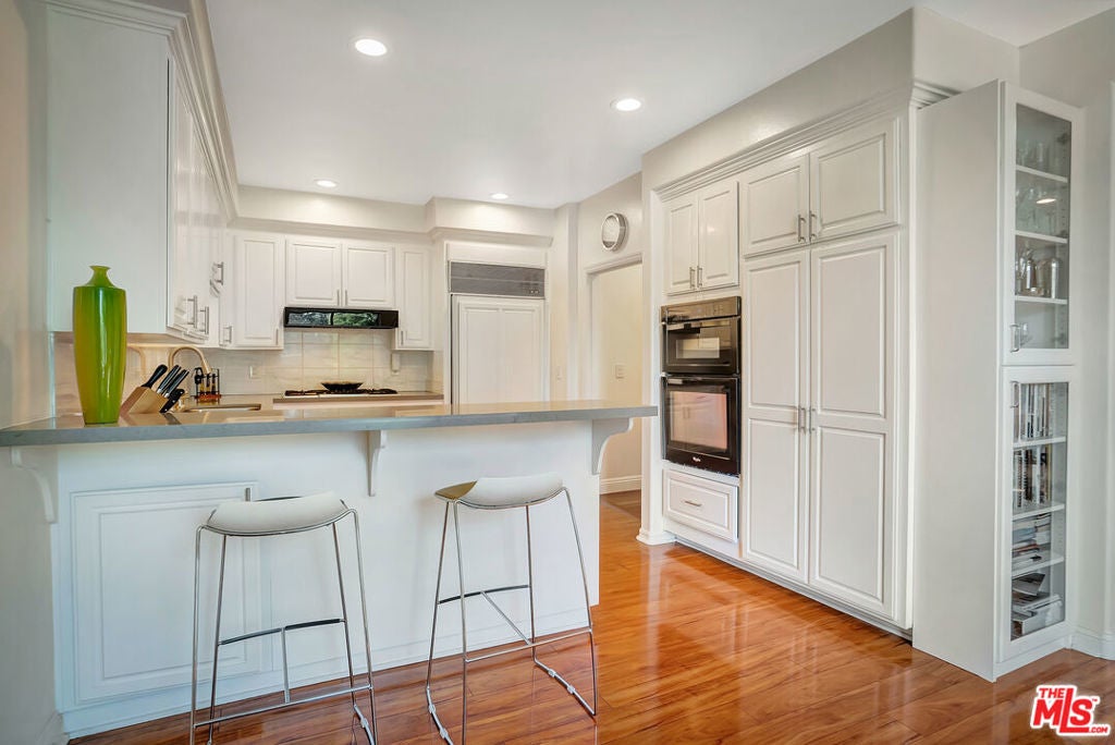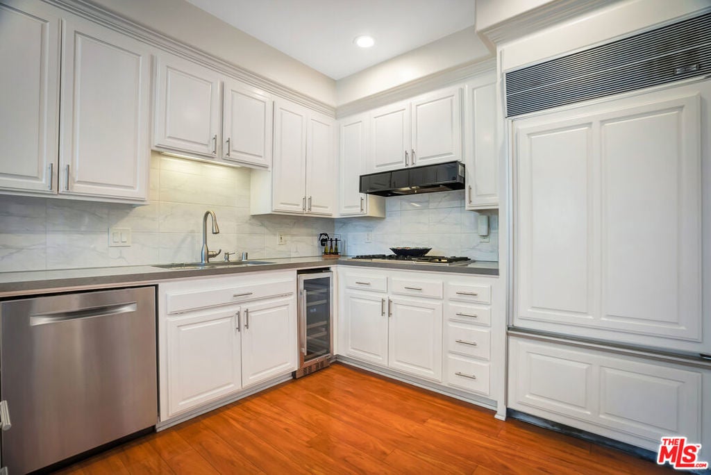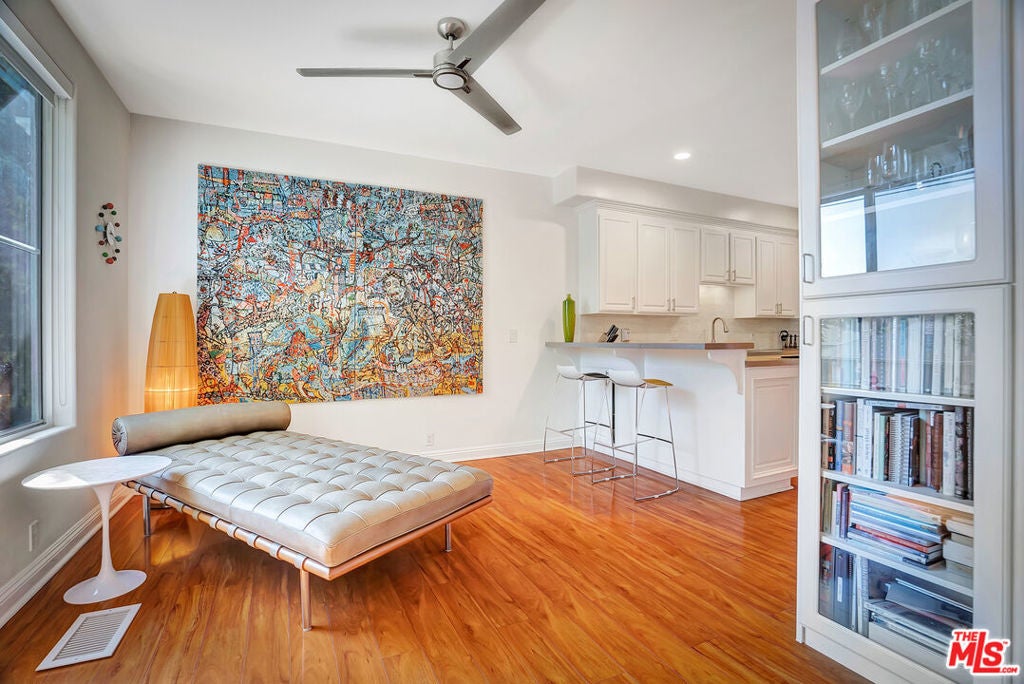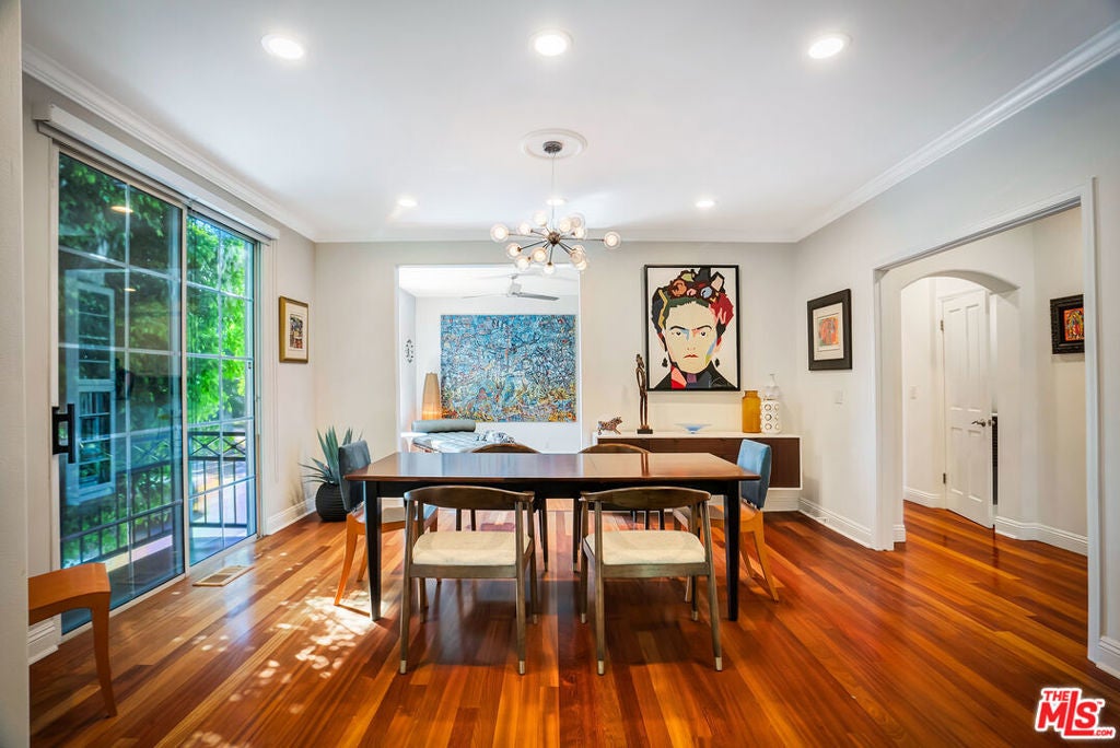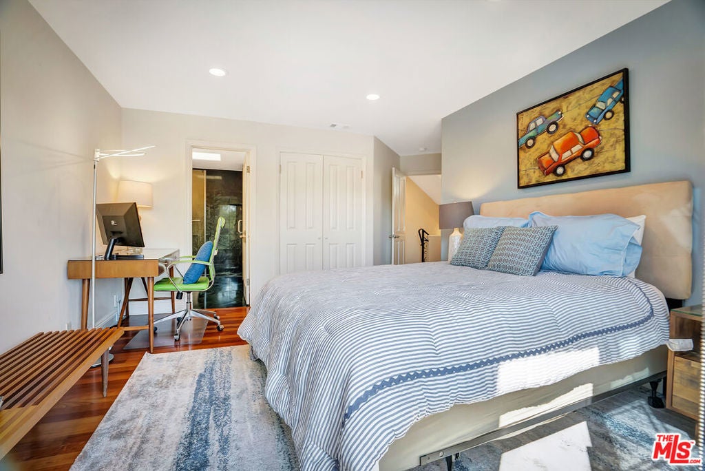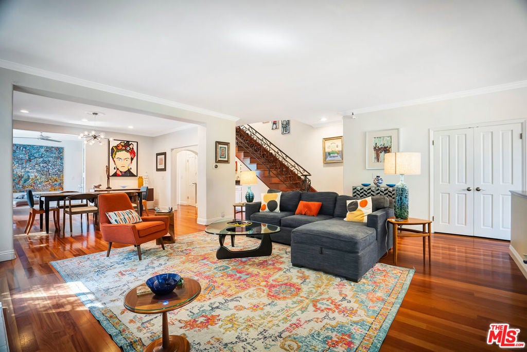 Luxurious townhome with an expansive private rooftop deck, ideally situated in prestigious Toluca Lake. This exceptional 3-bedroom, 3.5-bath residence welcomes you with a bright, open floor plan enhanced by modern designer finishes throughout. A dramatic two-story marble foyer with ornamental wrought iron detailing sets the tone, leading into an elegant layout designed for both everyday living and effortless entertaining. Rich cherry wood floors run throughout, while abundant windows fill the home with natural light.The formal living room is anchored by a beautiful fireplace and flows seamlessly into the adjoining dining room, complete with a sleek wet bar. The crisp white chef's kitchen features quartz countertops, breakfast bar, a Sub-Zero refrigerator, and a separate eating area. Upstairs, the stunning primary suite serves as a true cozy retreat, an oversized walk-in closet, a private balcony with views, and a large spa-inspired bathroom with a jetted soaking tub. A secondary bedroom suite is also located on this level, providing comfort and privacy. On the first floor, an additional bedroom suite offers ideal flexibility, perfect for guests, an executive home office, or private workspace. At the top, the show-stopping private rooftop deck captures the essence of Southern California living featuring a hot tub, dedicated dining and lounge areas, and a gas hookup for BBQ. Enjoy unobstructed sunrise views behind Griffith Park, Holidays watch parties of Universal Studios and WB Studios fireworks, creating a dynamic backdrop perfect for year-round entertaining.Additional highlights include a private two-car garage and a convenient dumbwaiter. Ideally located near major motion picture studios, shopping, dining, and all that Toluca Lake has to offer.