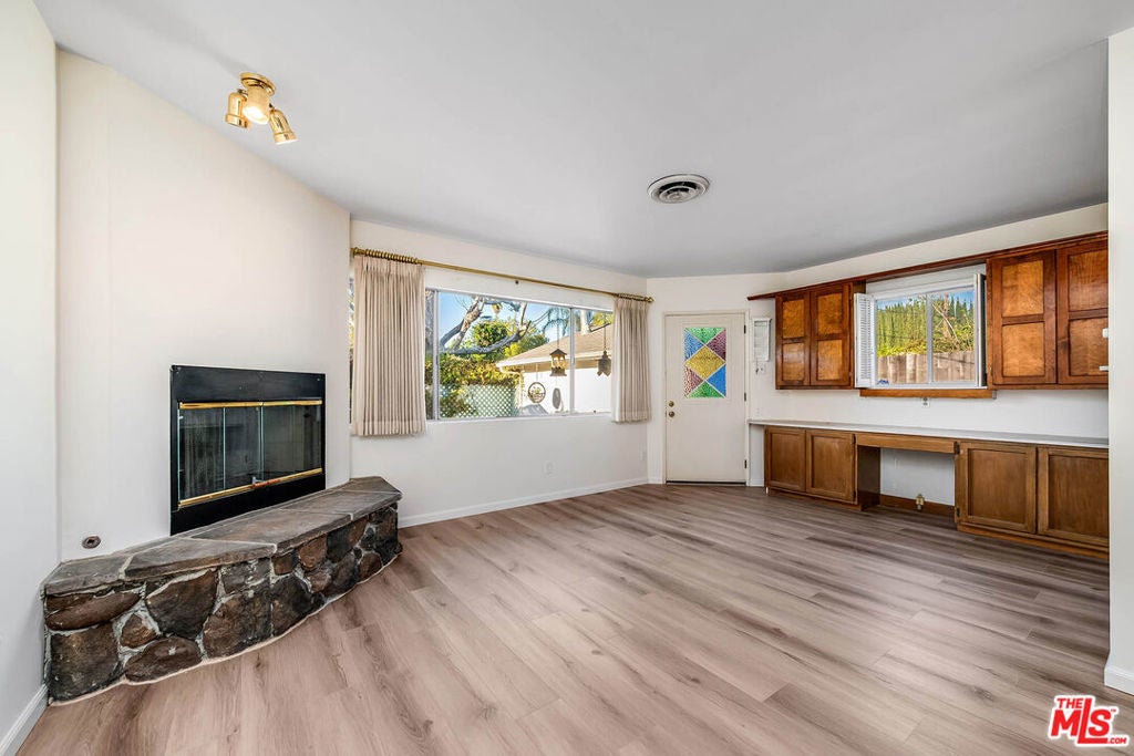First time on the market in over 30 years, this charming Encino residence on a cul-de-sac, presents a rare opportunity to create your dream home in a highly sought-after neighborhood. Offering 3 bedrooms, 2 bathrooms, and approximately 1,458 square feet of living space on a 5,552 square foot lot, the home features a functional single-story layout with a spacious living room anchored by a stone fireplace, a separate dining area, and a bright kitchen with adjacent breakfast nook. Original hardwood floors, generous natural light, and well-proportioned rooms provide a solid foundation for renovation or personalization. The primary suite and secondary bedrooms offer comfortable living, while the private backyard showcases a unique patio setting ideal for entertaining or reimagining into an outdoor retreat. Complete with a detached garage and ample driveway parking, this property is perfect for an end user or investor seeking a value-add opportunity in prime Encino.