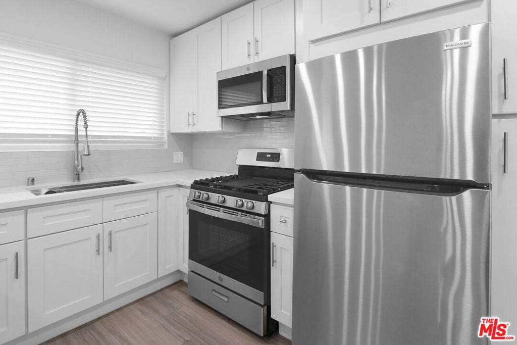 Step into this adorable, remodeled one-bedroom, one-bath unit in the heart of North Hollywood! The plank flooring, updated kitchen and bathroom exude modern charm, while the high-quality AC unit and recessed lighting create an ambiance of comfort and luxury. This charming unit offers the perfect balance between indulgence and coziness. Nestled in a vibrant neighborhood, this unit is surrounded by an array of conveniences. Indulge in many nearby restaurants, stores, and amenities, all just moments away from your doorstep. The famous NOHO Arts District is a mere 5-minute drive away, offering a dynamic cultural scene and endless entertainment options. ONE small pet allowed. Photos are of similar unit. Can show now and available to move in on April 22. Some photos may not be of this actual unit (but the finishes are accurate) and some photos are virtually staged.