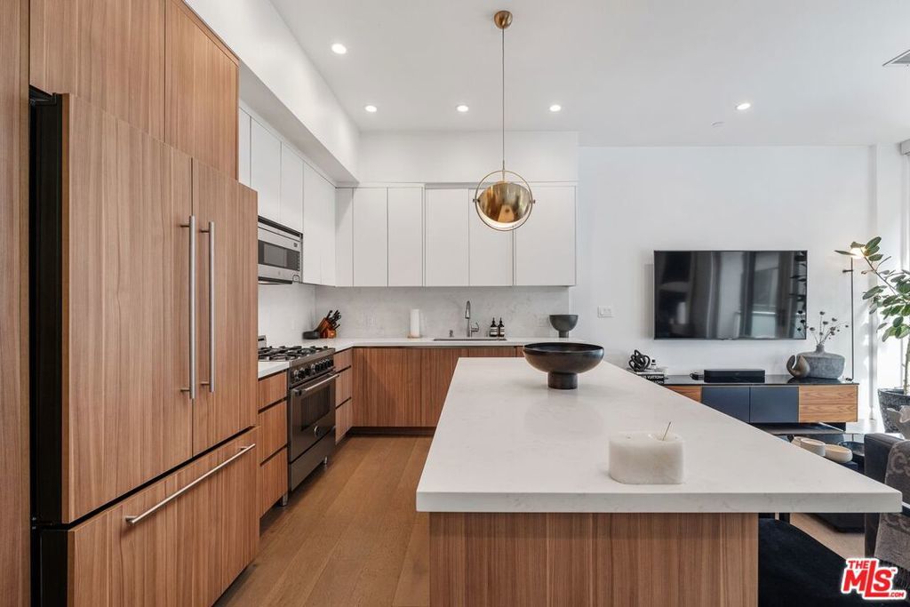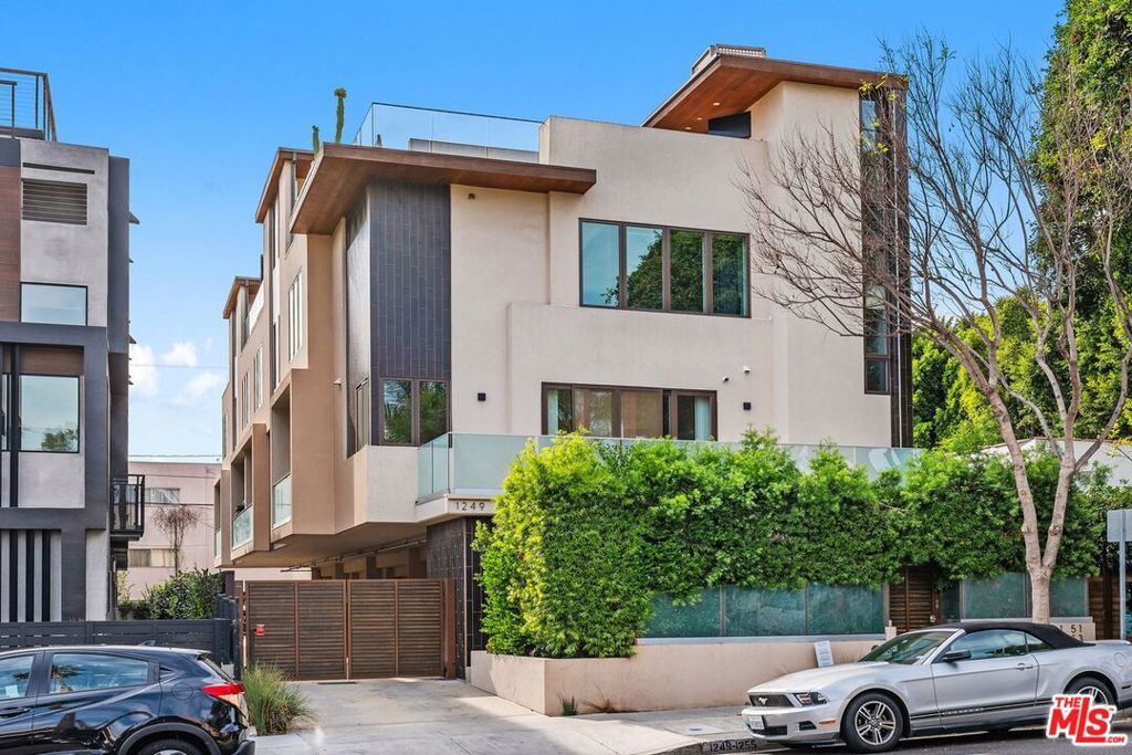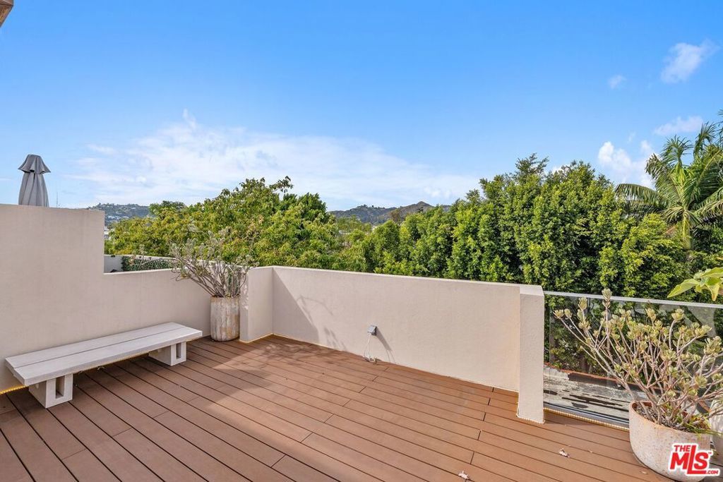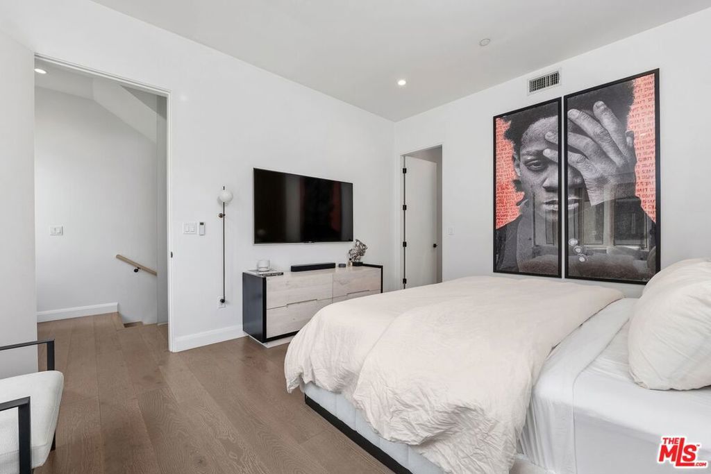 Welcome to a striking modern townhome in the heart of West Hollywood, where elevated design meets effortless city living just moments from the most sought after dining, shopping, and nightlife in Los Angeles. Recently built and thoughtfully designed, this residence offers a seamless blend of style, comfort, and functionality, beginning with direct access from a private two car garage with additional storage into a clean and contemporary entry level. The main living level opens to an airy, light filled space defined by vaulted ceilings, floor to ceiling windows, and a seamless indoor outdoor connection through a sliding glass door leading to a private balcony. The chef's kitchen is both refined and functional, featuring custom cabinetry, Caesarstone countertops, and top tier appliances, while powered blinds throughout add a layer of convenience and sophistication. This level also includes a versatile bedroom ideal for a home office or guest suite, along with a beautifully designed powder room with shower. Floating architectural stairs lead to the upper level, where a conveniently located laundry area and a serene primary retreat await, complete with remote controlled shades, a custom walk in closet, and a spa inspired bathroom featuring dual vanities, a soaking tub, separate glass enclosed shower, private water closet, and large windows with peaceful tree top views. Crowning the home is an expansive private rooftop terrace with sweeping city views, designed for both relaxation and entertaining with a fully equipped outdoor kitchen featuring a stainless steel gas grill, sink, mini refrigerator, stone countertops, and TV hookup. Additional highlights include mounted flat screen TVs in every room, rich hardwood flooring throughout, and a layout that balances openness with privacy, offering the rare combination of modern design and private luxury living in the center of it all. Available for a May move in.