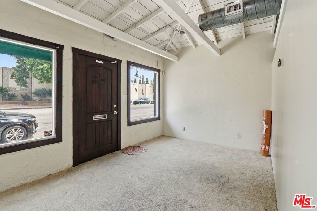 Located on prime Ventura Blvd in Studio City, this vacant versatile commercial space is ideal for retail, massage therapy, storefront, office, studio, or wellness use. The interior features a lobby, spacious open area with high open-beamed ceilings, exposed ductwork, and front-facing windows that bring in natural light. The flexible layout include an additional room that can be used as private office, treatment rooms, workspace, or storage. There is also a 3/4 bath and a kitchenette area for added convenience. A separate rear entrance adds flexibility for staff, clients, or service access. A great opportunity for s tenant seeking a well-located space on one of Studio City's most desirable commercial corridors. There is street parking available and tenant can build out the interior to suit their needs.