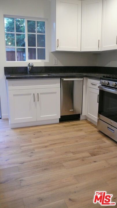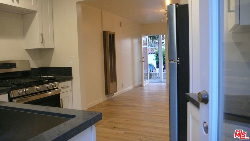 Remodeled and charming 1st floor Unit w/1 bedroom and 1 bath in secure & gated 4 Unit Building. Fantastic location . . . 1 block east of Main St, 3 blocks from the beach. The Unit features hardwood floors, a remodeled kitchen with dishwasher, stove, microwave hood, & refrigerator, and a remodeled bathroom. The back door opens out to a private fenced in patio and the front door opens out to an open patio. One car secure parking behind an electric gate. On site laundry.