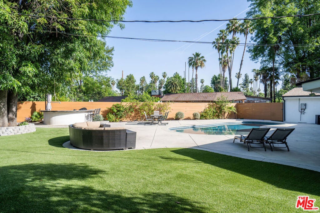 Welcome to this beautifully updated 3-bedroom, 2-bathroom home in the heart of Woodland Hills, offering a bright open-concept layout ideal for modern living. Spacious living and dining areas flow seamlessly into a stylish kitchen with updated finishes and ample counter space. Large windows fill the home with natural light, and a built-in surround sound system enhances the living experience. Private backyard retreat features a sparkling pool, play area, and outdoor BBQ perfect for entertaining and family enjoyment. Located in a desirable, established neighborhood near top shopping, dining, parks, and everyday conveniences. A perfect blend of comfort, and lifestyle!