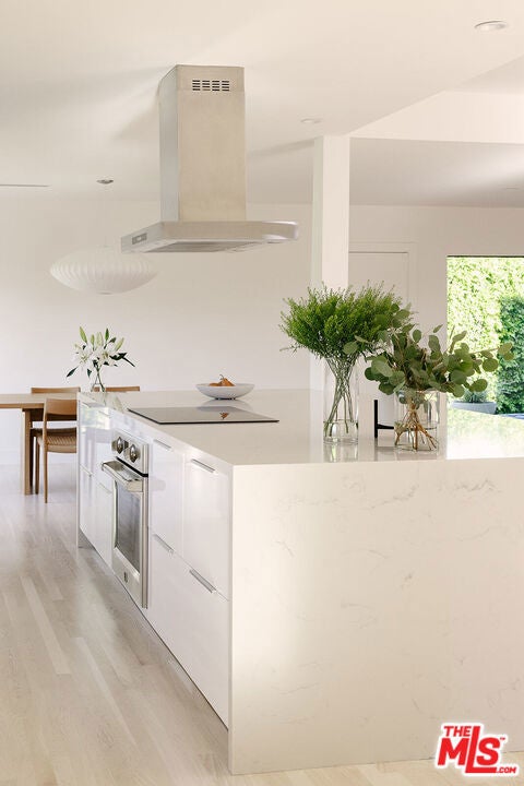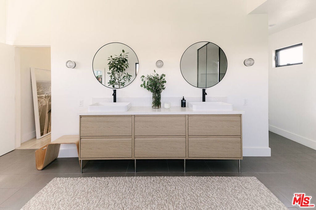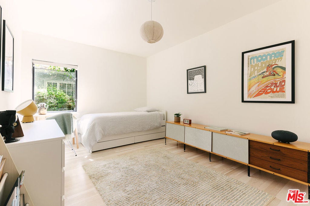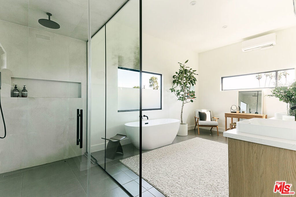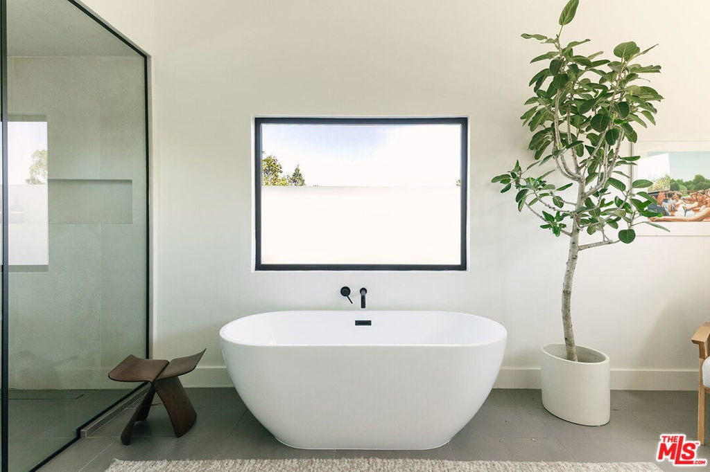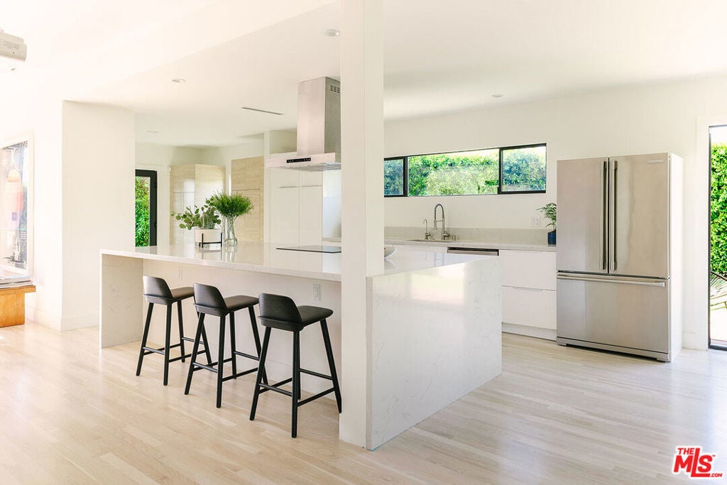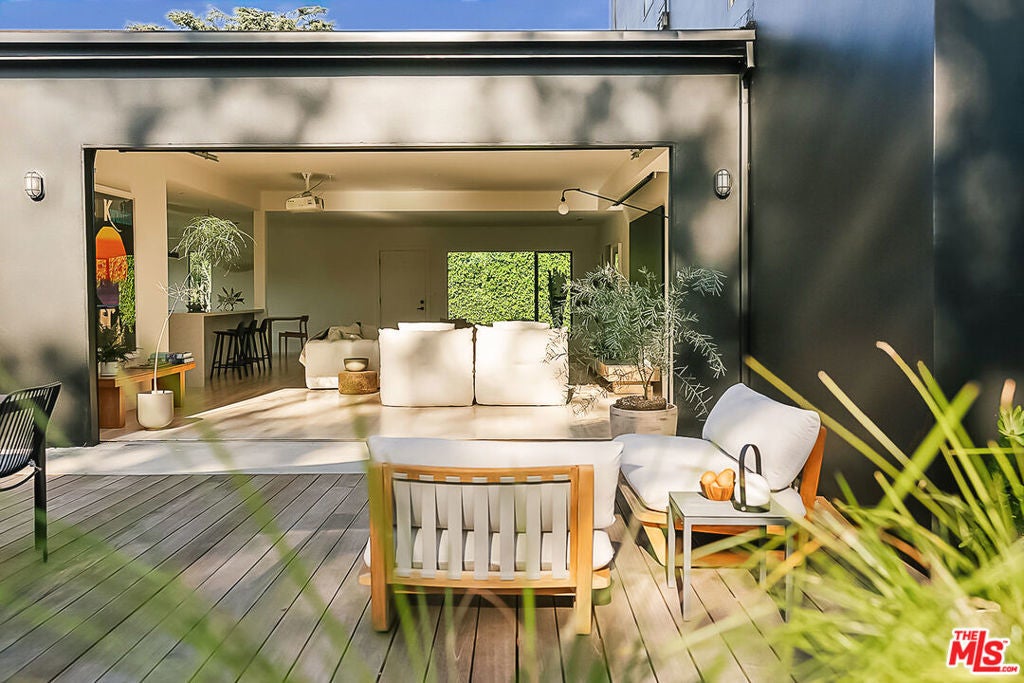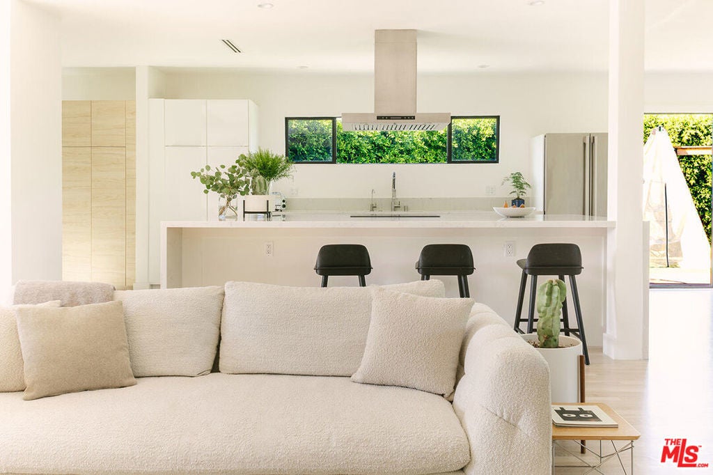 A Rare, Private, Modern Architectural in the Heart of West Los Angeles. Bold architectural lines, a striking matte black facade and a fully hedged and gated perimeter unite to form this exceptional, private residence. Remodeled and thoughtfully reimagined and expanded from its original footprint. Designed around an open floorplan that flows effortlessly from living to dining to kitchen, indoors to outdoors, capturing nature, the Los Angeles light and lifestyle. A dramatic glass door opens to a large entertaining deck that flows seamlessly into expansive yard space that surrounds the property. Composed of aesthetically designed, drought tolerant landscaped gardens and turf wrapped in lush mature hedges, creating a serene and private, idyllic setting for gatherings, play, pets, and quiet reflection. Inside, wide plank wood floors and glass throughout capture natural light and volume, creating a soulful escape. The kitchen is sculptural and functional, anchored by a waterfall island and enhanced by an adjacent pantry that provides additional storage and discrete small appliance organization, a thoughtful detail elevating daily living. The living room and adjacent dining room offer open spaces for everyday living and entertaining, with ample wall space to feature art and glass throughout that frames the landscaped outdoor gardens, bringing nature and greenery indoors. Three spacious bedrooms and a full bathroom complete the main level, offering flexibility for family, guests or office needs. Upstairs leads to the separate primary retreat. A fantastic, light filled, open suite, designed for serenity and restoration. Featuring a spacious, custom, walk in closet and luxury spa bathroom with a freestanding porcelain tub, oversized enclosed steam shower, towel warmer and dual sinks, with generous proportions throughout. A special space to restore and recharge. Outside, a detached shed provides additional, organized storage space, while the gated driveway, hedged exterior and detached two car garage enhances privacy and security. Close and convenient to the freeways, Silicon Beach, UCLA, St. John's Health Center, and a short distance to the beaches, bike paths, Stoner, Douglas and Airport Parks, and the best dining, shopping, fitness and connectivity the Westside lifestyle has to offer, including the Sawtelle District, Alana's Coffee Roasters, Jyan Isaac Bread, Erewhon, The Mar Vista Farmer's Market. Equinox, and the new Lazy Acres market that is coming soon! This is the perfect Los Angeles home.