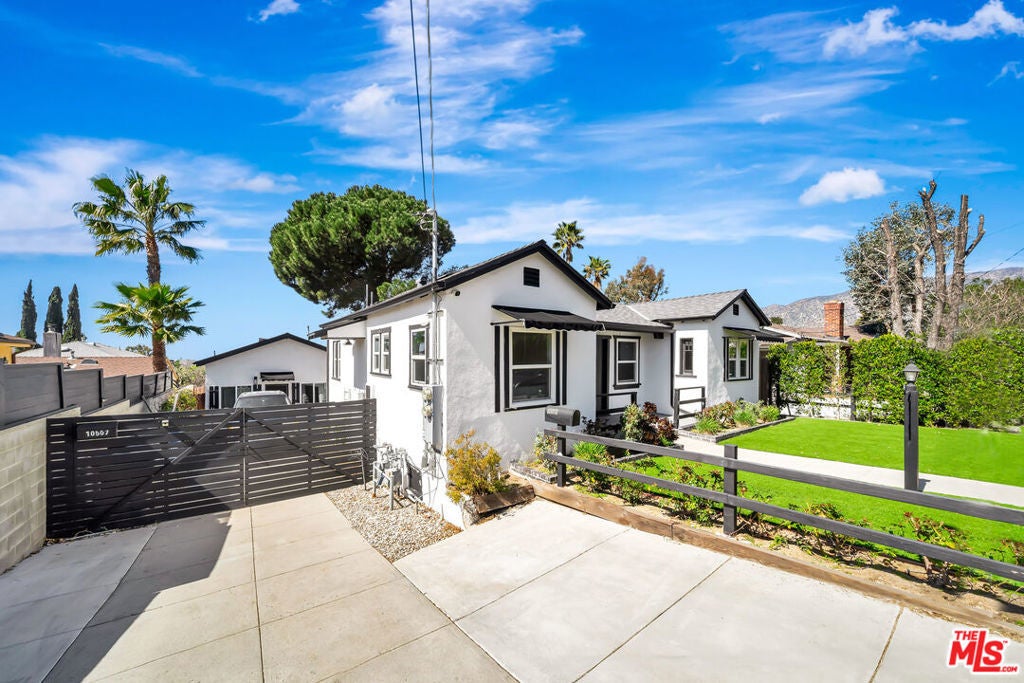 Rare and versatile income opportunity in Tujunga featuring two stunning homes on one expansive 6,707 square foot lot. This exceptional property at 10509 and 10507 Wilsey Avenue offers the perfect blend of historic character and modern 2021 construction, currently generating a total monthly income of 5,800 dollars with 3,300 dollars from the front house and 2,500 dollars from the ADU. The charming front residence is a beautifully updated 2-bedroom home characterized by soaring vaulted wood-beamed ceilings, a cozy gas fireplace, and an open-concept kitchen featuring quartz countertops, a farmhouse sink, and a water osmosis system. A versatile bonus nook provides the ideal space for a home office or sunlit breakfast area, while a step-down den with French doors leads to a private backyard retreat complete with a built-in BBQ, lush lawn, and mature fruit trees. Tucked privately at the rear is the modern 2-bedroom, 2-bathroom ADU built from the ground up in 2021. This 605 square foot unit boasts contemporary hardwood floors, central air conditioning, and its own low-maintenance yard with AstroTurf. A unique feature of this property is that while each unit currently enjoys its own separate and private backyard, the fencing can easily be opened up to create one massive, contiguous outdoor oasis for a single-family compound. Additional highlights include newer copper plumbing, updated electrical, central HVAC in both units, a convenient side herb garden, and extra basement storage. Located in a peaceful neighborhood north of Foothill Boulevard, you are minutes from local shopping and dining while maintaining a high-yield investment or the perfect live-in-one, rent-the-other setup. This turn-key Tujunga gem is a must-see for savvy buyers and investors alike.