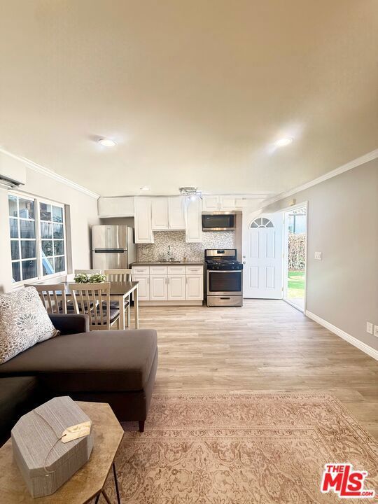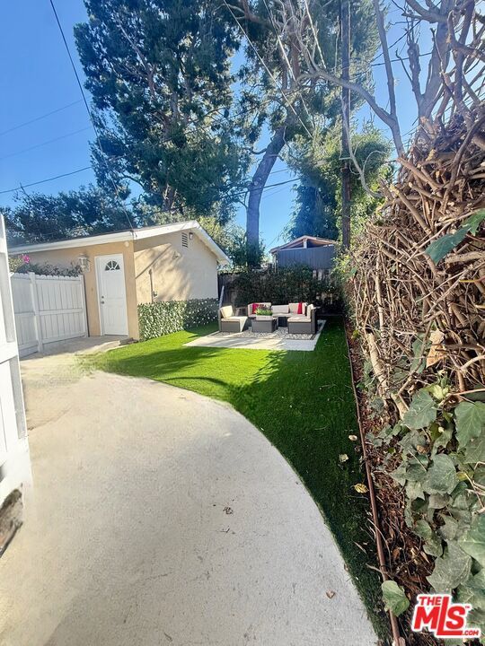 Step into your own private retreat this detached studio offers the perfect blend of comfort, style, and convenience. Tucked behind a secure gated entrance and surrounded by lush landscaping, the home welcomes you with a private walkway and your own fenced yard ideal for relaxing or enjoying time with a pet. Inside, the bright, thoughtfully designed space comes fully furnished and move-in ready. Enjoy a modern kitchen with stainless steel appliances and granite countertops, a cozy yet functional living area, and the convenience of in-unit stackable laundry. Every detail has been curated, from the new queen bed and dining setup for four to the sectional sofa with a pull-out bed and included outdoor furniture. Located just moments from Trader Joe's, popular shops, and great dining and only one mile north of Ventura Blvd you'll have quick access to the Westside and nearby studios while still enjoying a peaceful residential setting. Additional perks include ample street parking, water covered by the owner, and a private front gate for added security (main house located at the front of the lot). Don't miss this rare opportunity, click to view the video tour!