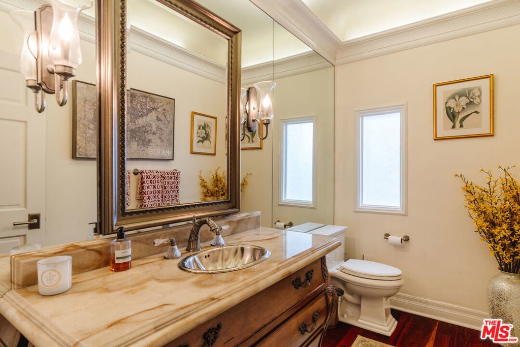 Don't miss this rare opportunity to own a stunning traditional estate in the prestigious Lake Encino communityoffered at an unbeatable price. Tucked away at the end of a quiet cul-de-sac, this elegant 6-bedroom, 7-bathroom home boasts nearly 4,500 square feet of thoughtfully designed living space, with breathtaking panoramic views of the San Fernando Valley. Behind private gates, a brick-lined motor court leads to a grand two-story foyer and interiors that blend timeless charm with modern comfort. Highlights include cathedral ceilings, exposed beams, three fireplaces, a formal dining room, and a spacious family room with a wine closet, built-ins, and a bar area that opens to the backyard through grand, fully opening bi-fold doors.The chef's kitchen is a dream, featuring three Viking ranges, a large center island, and a bright eat-in area with seamless indoor-outdoor flowperfect for entertaining. The luxurious primary suite offers a marble fireplace, dual en-suite bathrooms, and a walk-in closet.Additional features include three en-suite bedrooms, Jack-and-Jill bedroom with a shared bath, and a newly added sixth bedroom and full bath above the three-car garageideal for guests or a home office. A dedicated laundry room with a sink, ample storage throughout, newly installed French drains, and a fire-resistant stone/slate roof further enhance the home's functionality.Smart home upgrades include whole-house wiring for sound with a new Sonos system, along with wireless controls for the pool and spa. Outdoors, enjoy a backyard oasis complete with a pool, built-in BBQ, and a screened-in gazebo with a TV and heaters for year-round enjoyment. The beautifully landscaped grounds feature a rose garden and fruit trees, creating a warm and inviting atmosphere. Come view this exceptional property today! Tenant occupied until July 31, 2026.