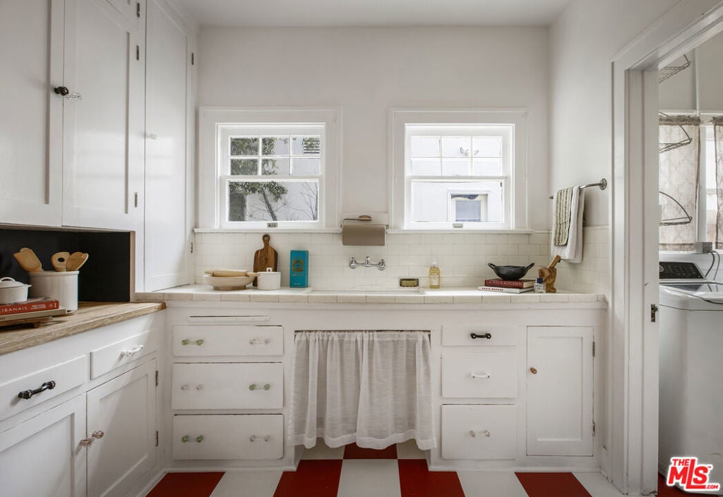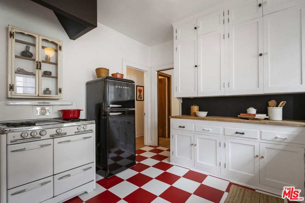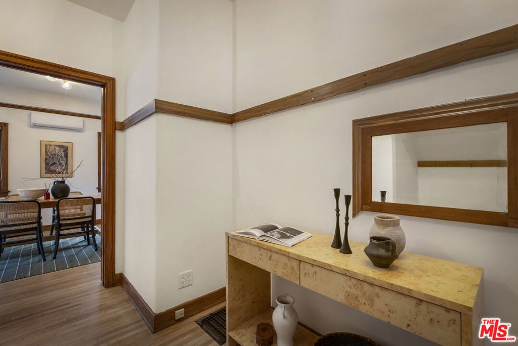 Charming & spacious Mediterranean 1920's New York style apartment that feels like a spacious home close to Los Feliz village. Over 1200 square feet includes living room w/high coved ceilings, formal dining room, breakfast room, laundry room. Period kitchen w/ ample cabinetry & storage, vintage stove & new retro fridge. One large bedroom, vintage tile bath/shower + den/office. Gorgeous rich old-world charm and original details, impeccable hardwood floors, mahogany doors w/crystal doorknobs, high ceilings, unpainted oak molding, original wood windows. Light & bright with great flow. Air/ Heat. One car garage plus driveway parking space. Vintage stove, new retro fridge & kitchen floors. One block to Hillhurst and all the amazing restaurants, stores & shops Los Feliz Village has to offer.
