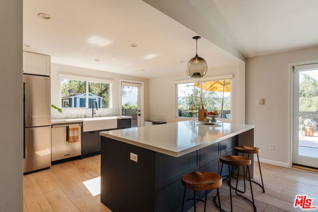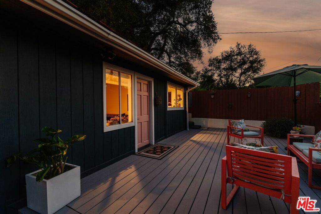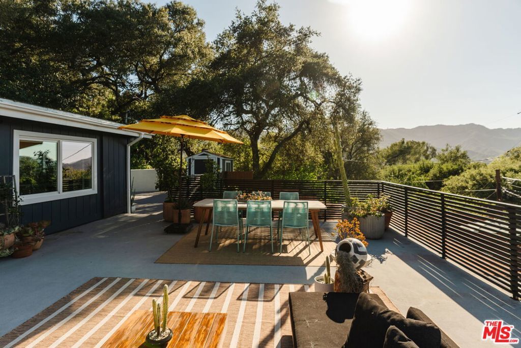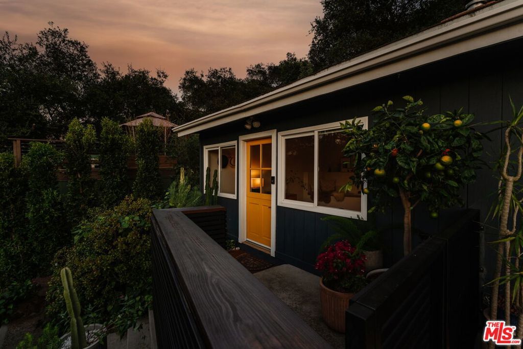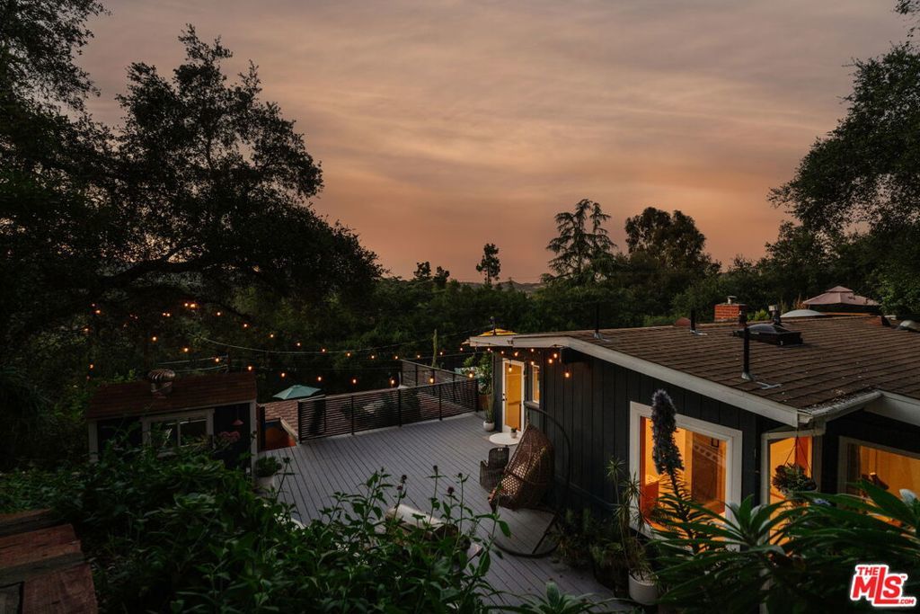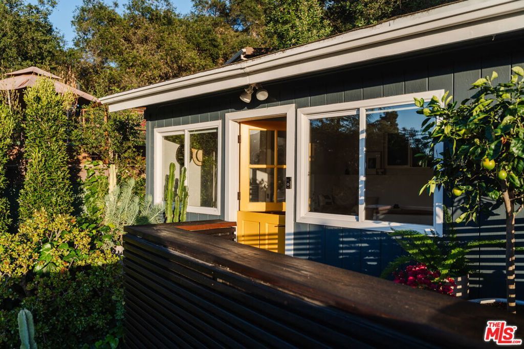 Nestled in the prestigious PO Tract of Topanga Canyon, this modern, artsy cottage perfectly balances rustic charm with clean, contemporary lines and updated finishes. Allowing for easy access to the beautiful trails, this prime location across from Topanga State Park and moments from the town center offers a rare blend of secluded nature and easy access to both the Westside and the Valley. Inside, the home features an open-plan updated kitchen and living area designed for effortless flow, while french doors frame sweeping canyon views from its elevated vantage point and allow for easy access to the large deck for entertaining. The recently remodeled bathrooms feature terrazzo stone floors, countertops and beautiful designer finishes. The expansive sundeck and a tranquil garden wrap around the home, creating an ideal setting for entertaining amidst mature trees, whilst newly installed decks offer destinations that capture tree top and canyon views. The property also includes a recently remodeled, self-contained guest unit with its own private patio, completing this serene canyon haven. Updated with a rare blend of charm, quality and designer touches that the most discerning Buyer will appreciate, it has been maintained with a pride of ownership that combines for a very rare offering.