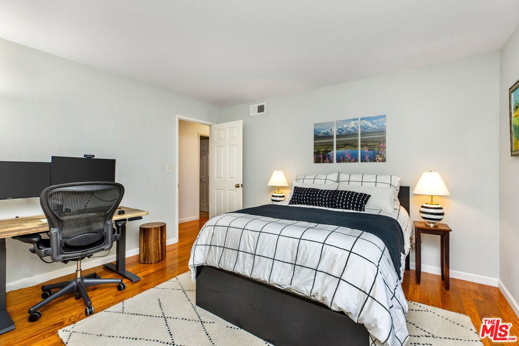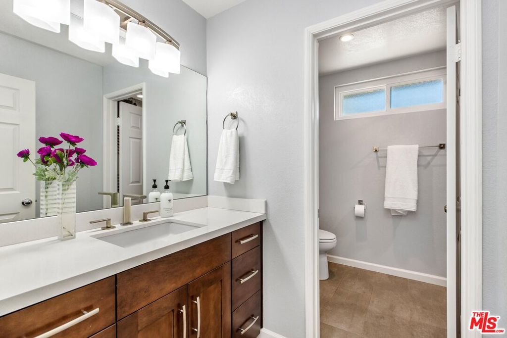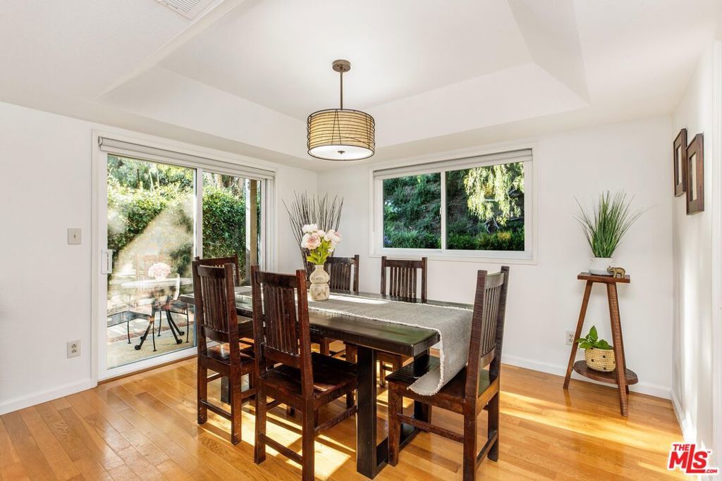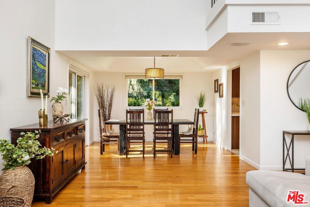Set on a peaceful cul-de-sac in the hills of Burbank, this recently remodeled 4 BD/3 BA home showcases an expansive entertainer's backyard, a thoughtfully designed floor plan, and elegant finishes throughout. Beyond the mature front landscaping, an inviting living room welcomes you with vaulted ceilings, a charming brick fireplace with a wood mantel, and rich wood flooring underfoot. The space flows seamlessly into a formal dining room highlighted by a tray ceiling and sliding glass doors that open to a side patio, perfect for effortless indoor-outdoor living. Just beyond, the bright kitchen offers abundant cabinetry, sparkling countertops, stainless steel appliances, and bar seating. Ideal for both quiet mornings and lively gatherings, it connects to an additional living area with a breakfast nook and sliding glass doors leading to a covered patio. A main-level bedroom, well-suited for an office or guest suite, and a sleek bathroom with a step-in shower complete the first floor. Upstairs, three bedrooms await, including a stunning primary suite featuring lofted ceilings, a walk-in closet with built-ins, and a private balcony with treetop and city views. The ensuite bath includes a dual vanity, generous storage, and a step-in shower with a bench. Two additional bedrooms offer ample closet space and share an updated full bath with a shower/tub combination. Outside, the private backyard feels like a retreat, with a secluded hillside backdrop, expansive lawn, multiple covered patios, and numerous areas for relaxing or entertaining. Additional highlights include a dedicated laundry room with side-by-side washer and dryer and a two-car garage with direct access to the kitchen. Located near award-winning schools, the Burbank Empire Center, and the shops and dining of Downtown Burbank, this meticulously maintained home offers comfort, style, and convenience in one exceptional setting.