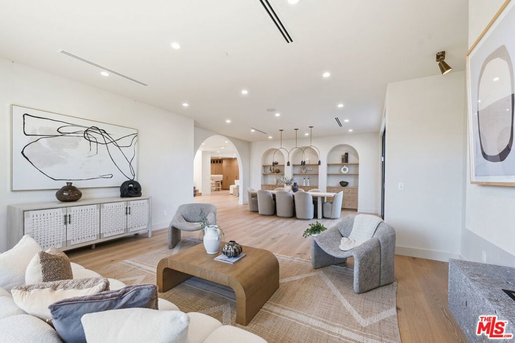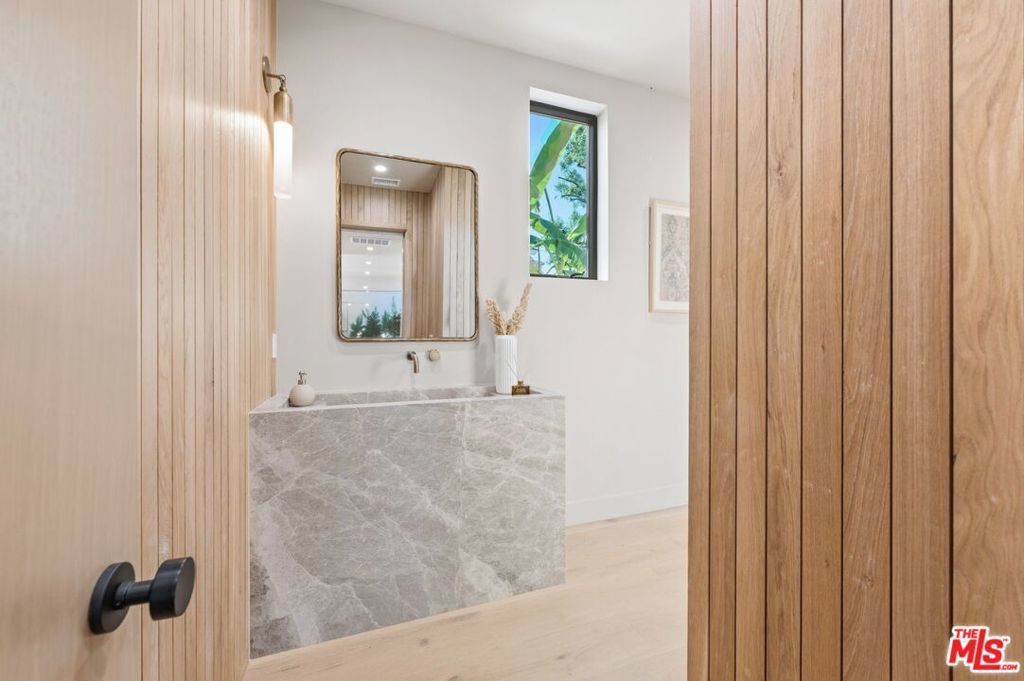 Modern organic newly built home on a prime Encino lot of over 10,000 sq ft, this refined farmhouse blends timeless architecture with warm, upscale design. Thoughtfully crafted with Roman clay plaster walls, soaring high ceilings, and an impressive open-concept layout, the home offers both comfort and sophistication. The main living spaces are designed for seamless indoor-outdoor living, filled with natural light and ideal for entertaining. At the center, the chef's kitchen features custom oak cabinetry, top-tier appliances, and an oversized island with breakfast seating. The primary suite is a true retreat, complete with a private balcony overlooking the yard, a spacious walk-in closet, and a spa-inspired bath. Home also offers a 1-bedroom ADU with its own kitchenette providing flexibility for guests, a home office, or extended living. The expansive backyard is a private oasis with a sparkling pool and spa, abundance of grass area and a built-in BBQ with bar seating, perfect for hosting or entertaining. Situated on a quiet tree lined street located near Encino's premier shopping, dining, and top-rated schools.