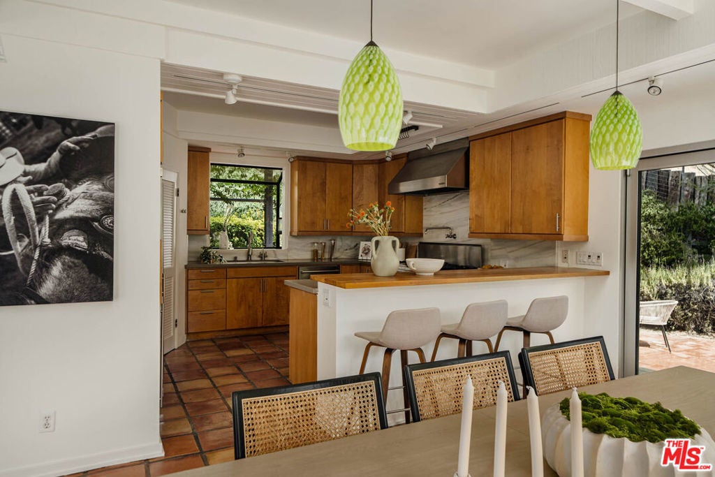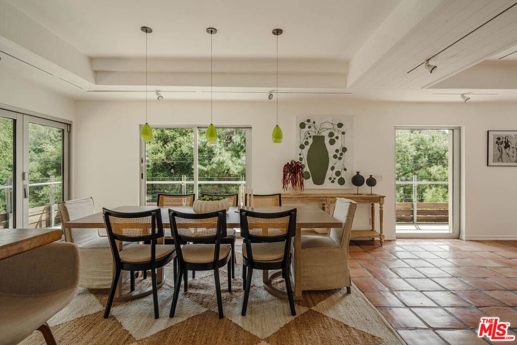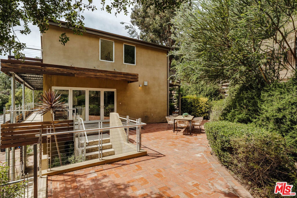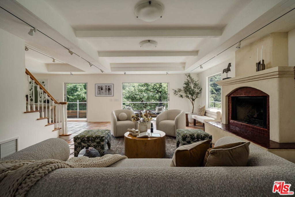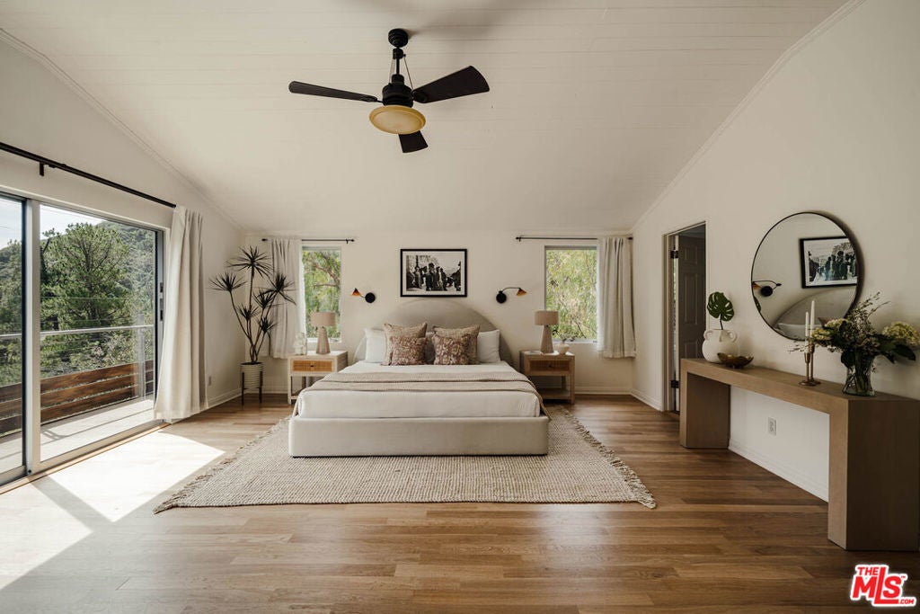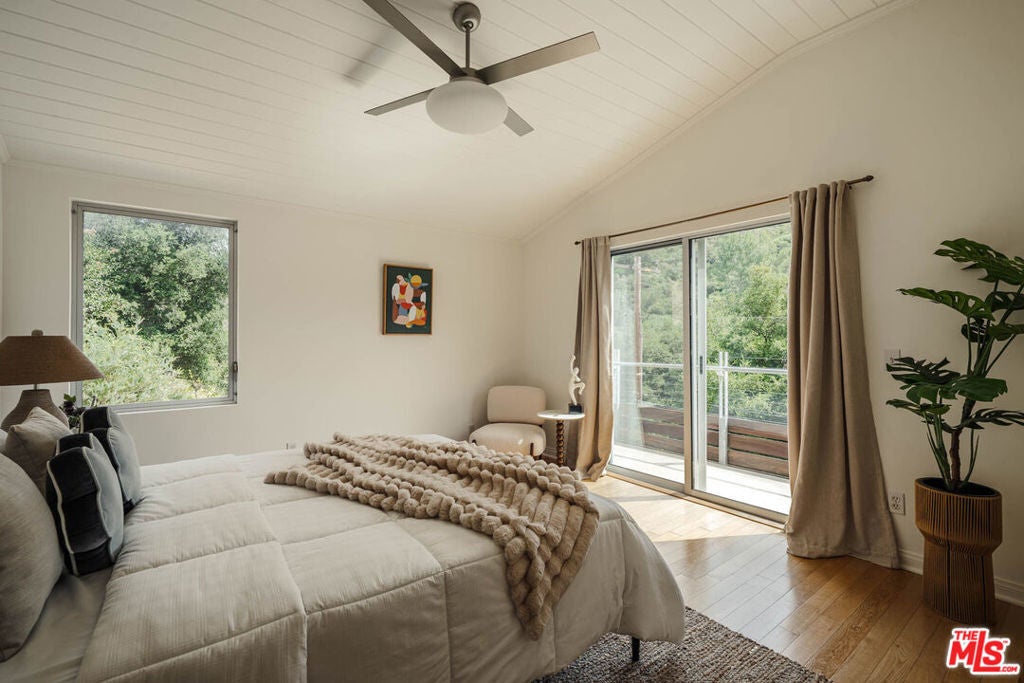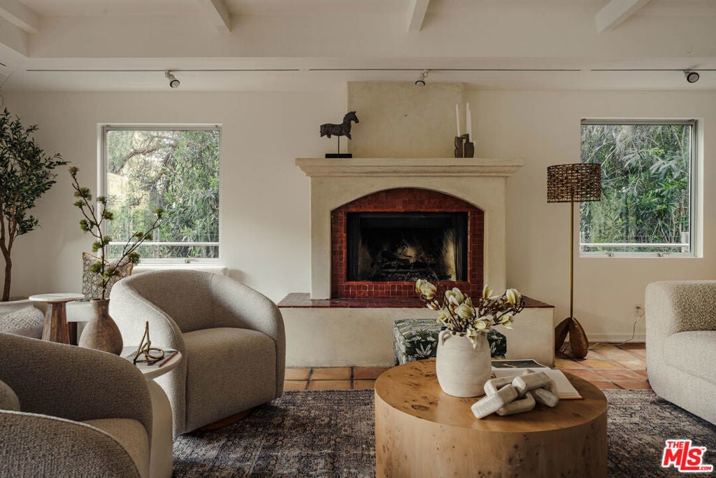 Nestled in one of Topanga Canyon's quieter pockets, this home offers an intimate connection to the surrounding canyon with views of Saddle Peak Ridge, where you can hear frogs in the creek and watch hawks soar overhead. Built by local builder Maurice Bourget and renovated in collaboration with architect John Jennings, the home spans three levels and is designed for easy indoor-outdoor living. The main level features a folding front entry and Fleetwood pocket doors that disappear completely, letting canyon breezes flow through the house and out onto the wrap-around balcony. The living room centers around a wood-burning fireplace, with windows framing the canyon on one side and the backyard hot tub on the other, while the kitchen is well-equipped with a six-burner chef's stove, wine cooler, walk-in pantry, RO and hot water tap. A guest bathroom on this level offers direct access to the backyard. Upstairs, skylights pour light into the hallway leading to three bedrooms. The primary suite looks out over the surrounding canyon with its own fireplace, en-suite bath, walk-in closet, and private balcony, a peaceful place to start and end the day. The second bedroom shares the balcony with the primary and has a charming view of the backyard, and the third bedroom has access to a deck leading out into the yard. Each room finds its own quiet connection to the landscape. The primary has its own en-suite bath, and a shared bathroom serves the second and third bedrooms. The ground level houses a theater room with projector and screen, and a full bath, equally suited as an office or guest suite, alongside an oversized garage with 20-foot ceilings. Outside, native landscaping surrounds a large brick patio with multiple seating areas connected by a walkway that winds through the backyard, with spots to sit, unwind, and take in the natural setting at every turn. The property comes with a 16-panel solar system, fully paid off. Just minutes from Old Topanga Canyon Road and about 15 minutes from Calabasas, this is a well-built, comfortable home in a beautiful part of the canyon, ready to be made your own.