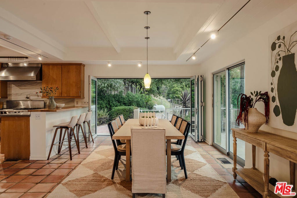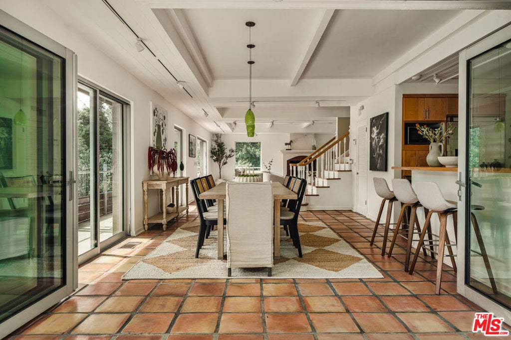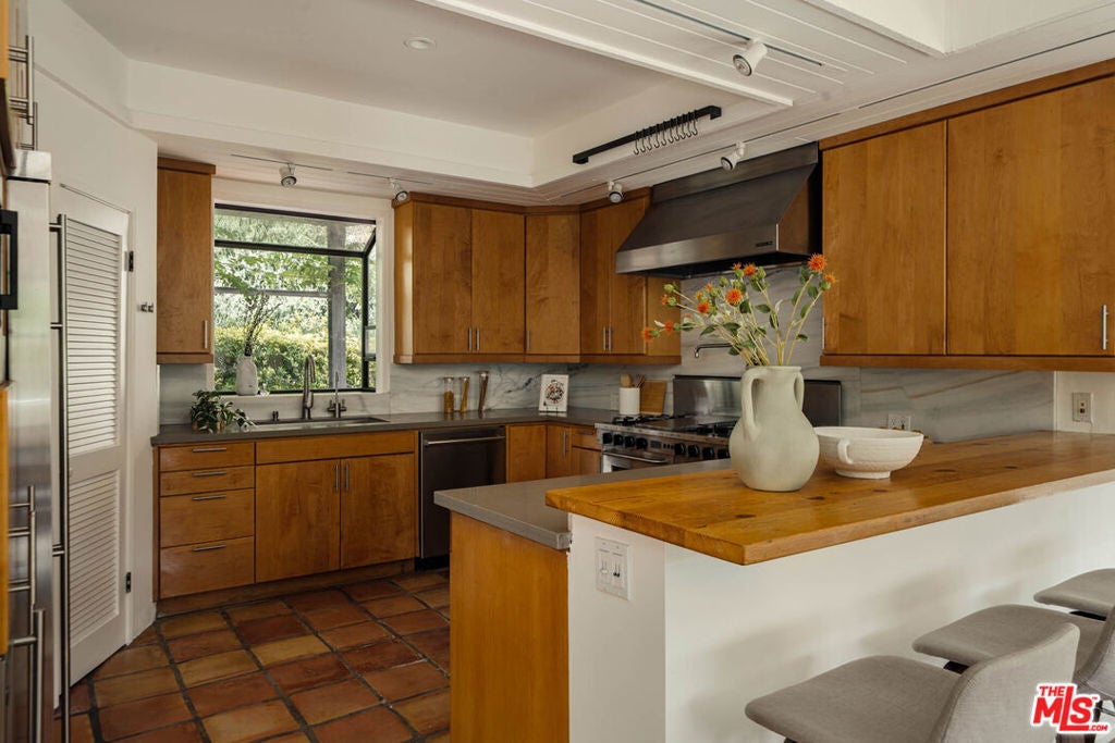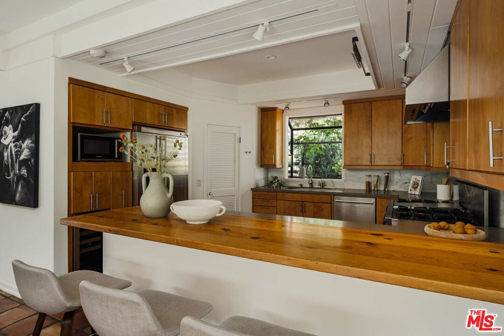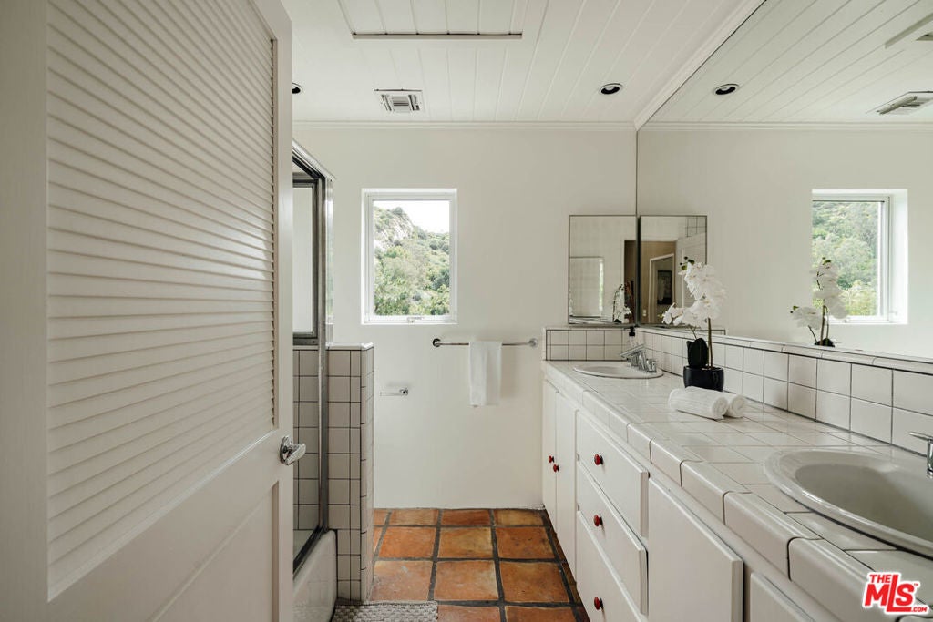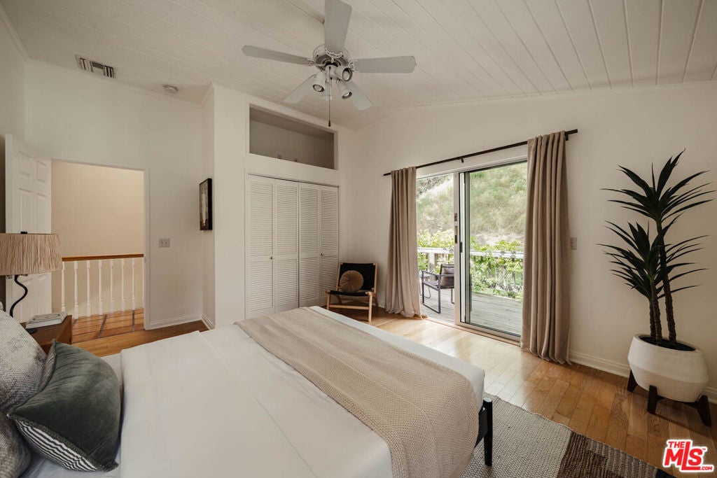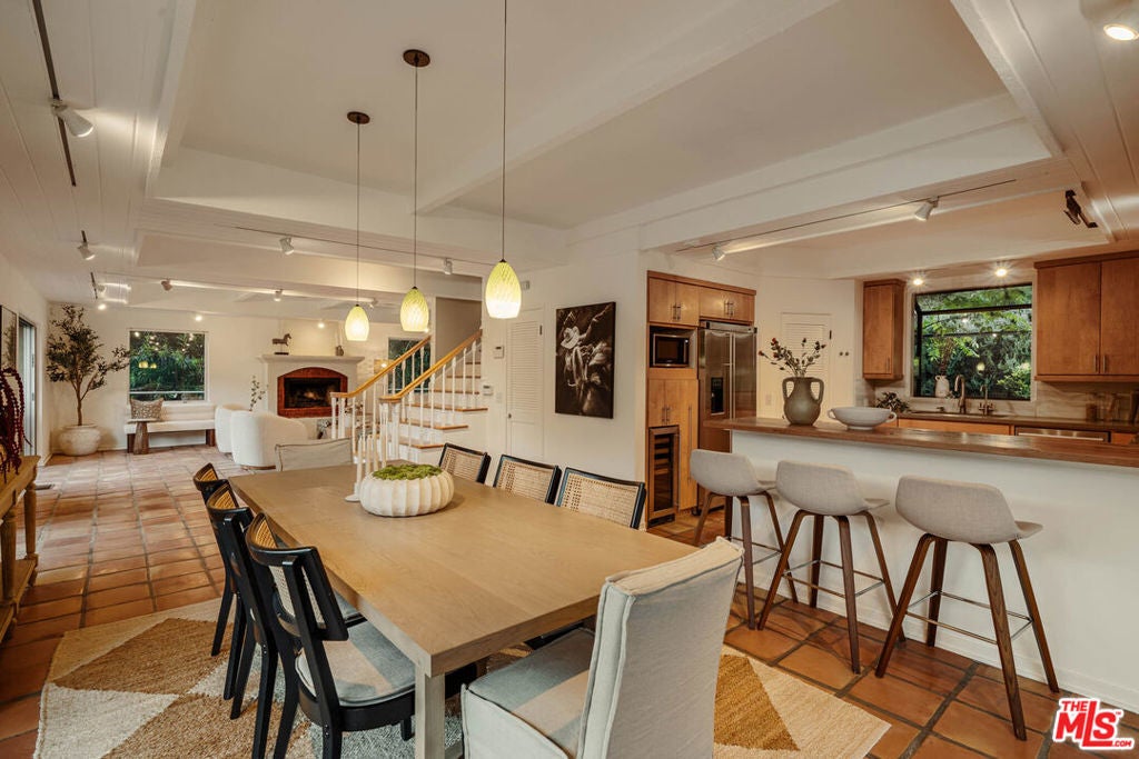 Nestled in one of Topanga Canyon's quieter pockets, this home offers an intimate connection to the surrounding canyon with views of Saddle Peak Ridge, where you can hear frogs in the creek and watch hawks soar overhead. Built by local builder Maurice Bourget and renovated in collaboration with architect John Jennings, the home spans three levels and is designed for easy indoor-outdoor living. The main level features a folding front entry and Fleetwood pocket doors that disappear completely, letting canyon breezes flow through the house and out onto the wrap-around balcony. The living room centers around a wood-burning fireplace, with windows framing the canyon on one side and the backyard hot tub on the other, while the kitchen is well-equipped with a six-burner chef's stove, wine cooler, walk-in pantry, RO and hot water tap. A guest bathroom on this level offers direct access to the backyard. Upstairs, skylights pour light into the hallway leading to three bedrooms. The primary suite looks out over the surrounding canyon with its own fireplace, en-suite bath, walk-in closet, and private balcony, a peaceful place to start and end the day. The second bedroom shares the balcony with the primary and has a charming view of the backyard, and the third bedroom has access to a deck leading out into the yard. Each room finds its own quiet connection to the landscape. The primary has its own en-suite bath, and a shared bathroom serves the second and third bedrooms. The ground level houses a theater room with projector and screen, and a full bath, equally suited as an office or guest suite, alongside an oversized garage with 20-foot ceilings. Outside, native landscaping surrounds a large brick patio with multiple seating areas connected by a walkway that winds through the backyard, with spots to sit, unwind, and take in the natural setting at every turn. The property comes with a 16-panel solar system, fully paid off. Just minutes from Old Topanga Canyon Road and about 15 minutes from Calabasas, this is a well-built, comfortable home in a beautiful part of the canyon, ready to be made your own.