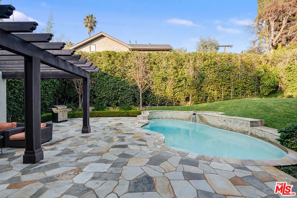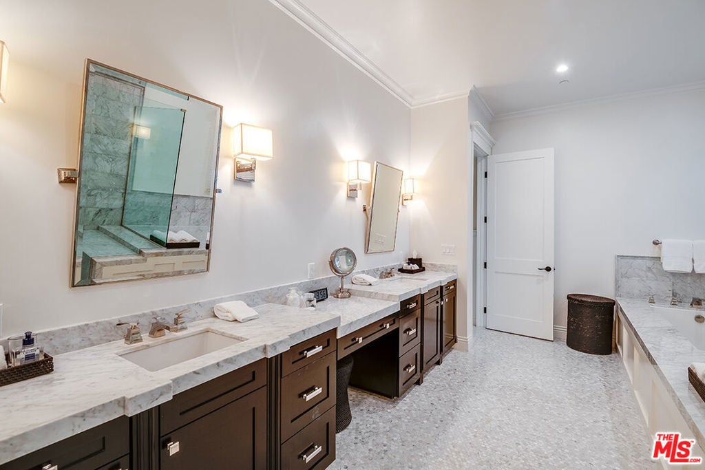 Nantucket showplace overlooking Lakeside Fairway! Designed with flawless craftsmanship and relaxed East Coast character. Airy bright interiors, bay windows & lush views. Light-filled entry boasts amazing 30' ceilings. Look for details such as beadboard, crisp panel work, crown molding, coffered ceilings and gleaming hardwood floors. Fireside great room open to chef's kitchen with gorgeous Cararra marble counters, s/s appliances, large island and built-in banquette. Butler's pantry with wine frig leads to separate dining room. Living room has Absolute Black granite fireplace. A home designed for entertaining! Upstairs, en suite family beds & baths. Master with sitting room, fireplace, dream walk-in closet and balcony. Downstairs, en suite/office or maid's with private entrance. Secluded outdoor retreat offers loggia with cozy fireplace for cool evenings, wet bar and sparkling pool/spa/waterfall. Security system inside & out. Frank Sinatra & Amelia Earhart called this lane home.
