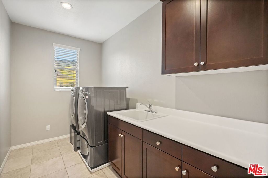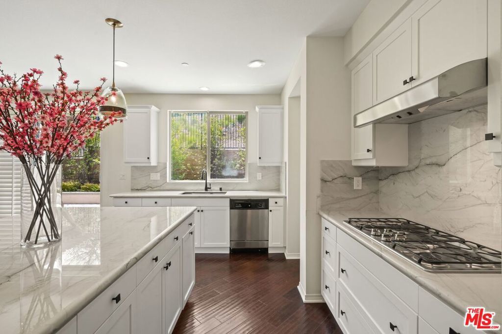 Available June 2026. This beautifully refreshed, light-filled home built in 2014 and ideally located is truly move-in ready. Thoughtfully updated throughout, the home features a fully remodeled kitchen with stunning quartzite countertops, a designer backsplash, refreshed cabinetry, and modern lighting. The expansive island serves as a striking centerpiece, perfect for casual dining and effortless entertaining. The open-concept layout seamlessly connects the impressive kitchen to a spacious living room with a cozy fireplace, creating an inviting space for gathering. The main level also offers a private en-suite bedroom, ideal for guests or a home office along with a convenient powder room. Upstairs, you'll find four generously sized bedrooms, including a luxurious primary suite complete with a walk-in closet, spa-inspired soaking tub with mountain views, dual vanities, and elegant designer finishes. One additional bedroom features its own en-suite bath and walk-in closet, while two others share a well-appointed Jack-and-Jill bathroom. A dedicated upstairs laundry room adds convenience, equipped with a large washer and dryer and utility sink. Fresh paint and new carpeting throughout enhance the home's clean, modern feel. Additional highlights include a finished two-car garage with built-in storage and a private backyard showcasing breathtaking mountain views, perfect for relaxing or entertaining. Ideally situated just minutes from Calabasas, Erewhon, Trader Joe's, and an array of top dining and shopping destinations, this home offers both comfort and convenience in a prime location. Available June 2026