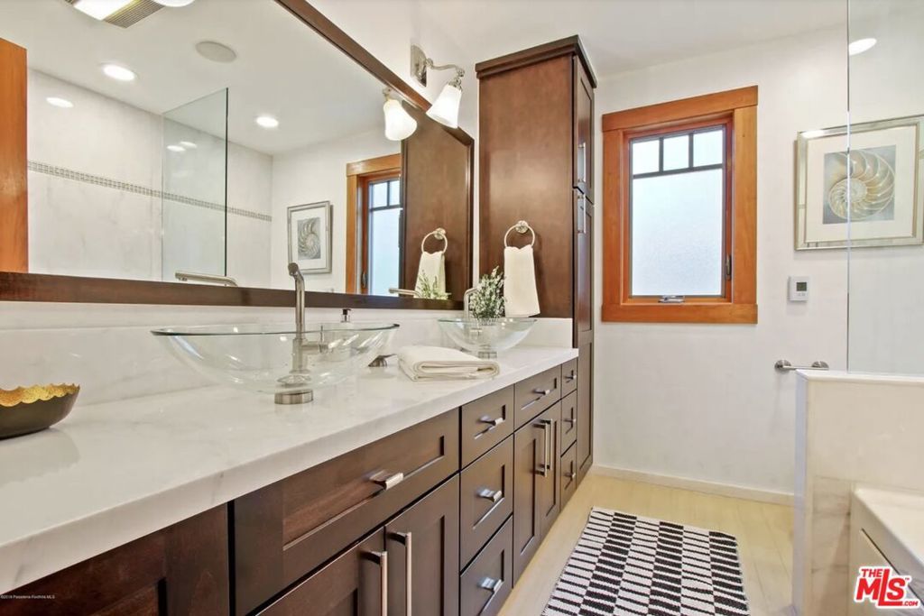 Perched on the east bank of the Arroyo Seco, 130 S Arroyo Blvd is a rare lease opportunity that delivers the feel of a private retreat without sacrificing a single modern convenience. This gutted-and-reimagined 1906 Craftsman blends the warmth of original craftsmanship stone fireplace, rich cherry woodwork, Craftsman millwork throughout with a thoroughly contemporary interior. Every bedroom is an en-suite, radiant-heated floors anchor each bath, and the open kitchen anchors daily life with a generous island and Bosch appliances. Step outside to two distinct patios: one surrounding the sparkling pool and pergola, another framed by mature landscaping with direct Arroyo trail access. Smart home systems manage lighting, sound, temperature, and security with ease. Views of the Colorado Street Bridge complete the picture. This is Pasadena living at its most refined.