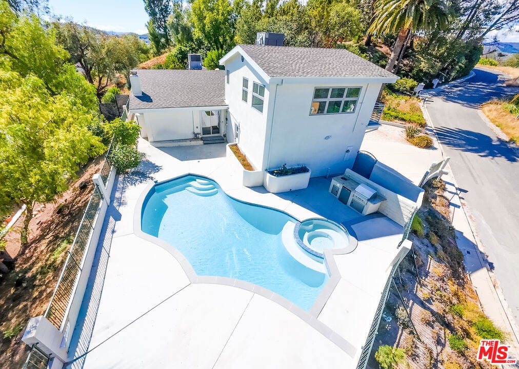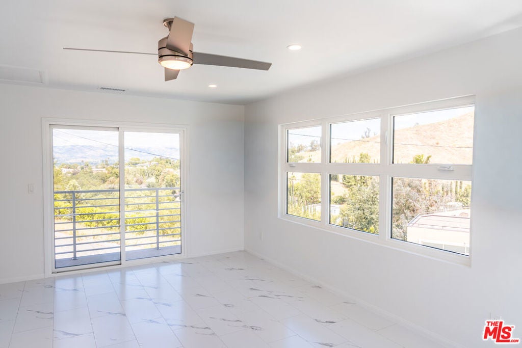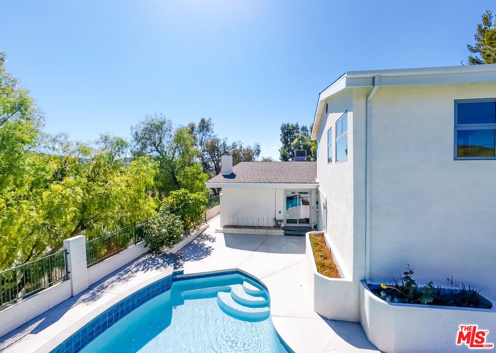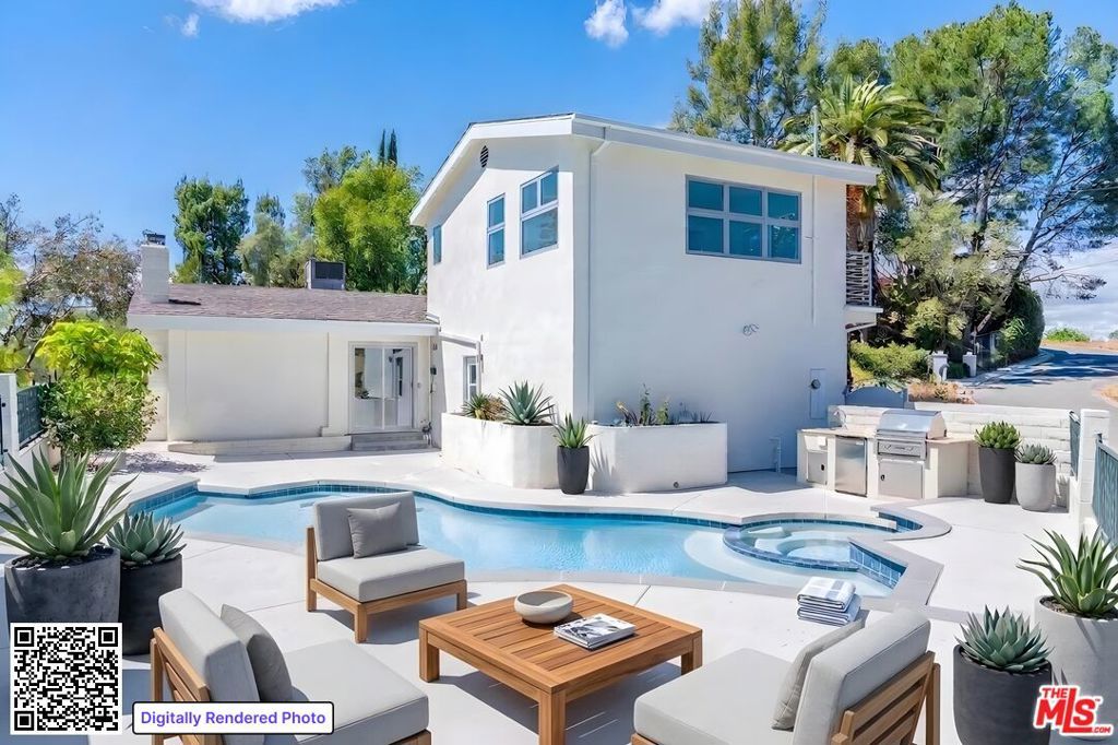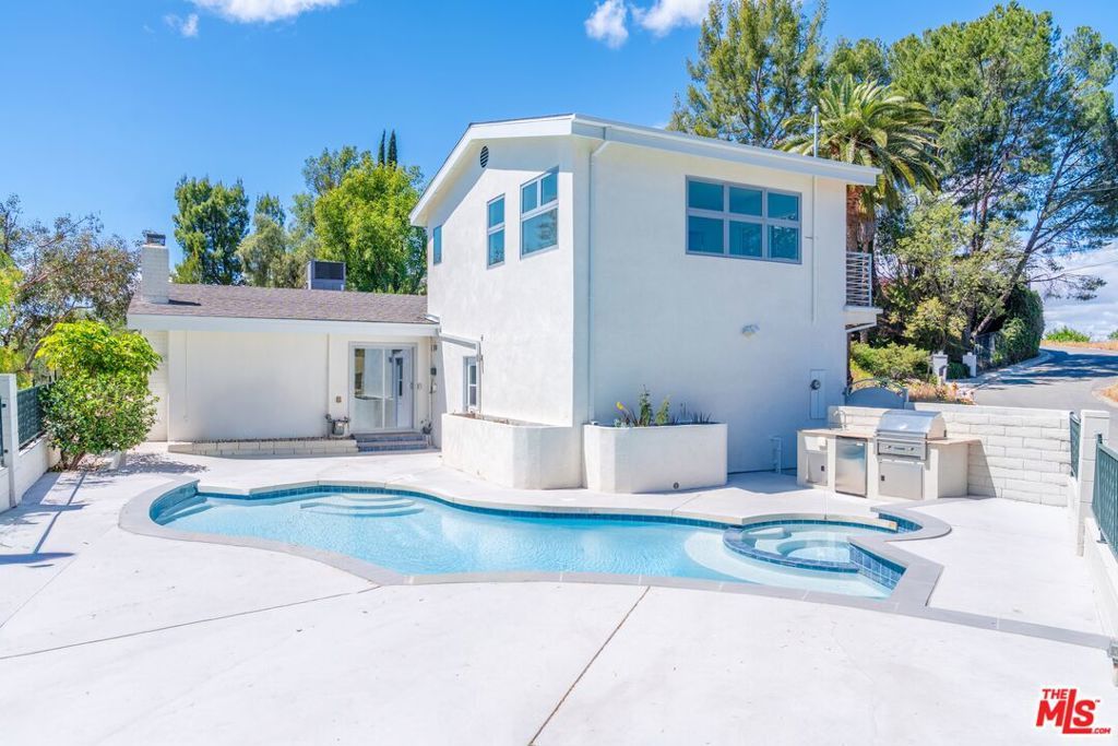 Set on a peaceful, quiet street, South of The Boulevard in the coveted Woodland Hills, this inviting home offers sweeping 360-degree mountain and valley views with an exceptional sense of privacy and calm. Thoughtfully updated throughout, the residence blends comfort and style with a brand new, beautifully remodeled kitchen appointed with premium appliances, modern black metal and frosted glass French doors, updated windows and sliding doors, fresh interior and exterior paint, and remodeled bathrooms with refined finishes. This homes open living area, decorated with a gas fireplace will keep you comfortable and safe with its newly upgraded central air, and a hardwired security system. The finished garage and upstairs addition you can use as a home office or secondary primary bedroom boasts its own walk-in closet, bathroom with dual vanity, full size shower and separate central air. As you make your way outside you'll find newly added fruit trees, refreshed landscaping, and thoughtfully designed water-collection planter boxes that add both functionality and charm. This homes outdoor living will keep your guests entertained as they enjoy a fully remodeled pool, built-in BBQ with refrigerator and generous parking on the property along with abundant, safe street parking as well. You will not only be just a few minutes from the famous Warner Center, but close to The Village, Westfield Topanga, popular dining, shopping, and entertainment Venues alike. The home also benefits from the area's exciting continued growth as Woodland Hills is part of the Warner Center 2035 vision for a more vibrant mixed-use hub, and Rams Village at Warner Center is planned to bring the Los Angeles Rams' permanent headquarters and training facility along with new residential, retail, office, entertainment, and open-space elements to the neighborhood. This momentum, together with the broader transformation of the former Promenade site, continues to elevate the area's long-term appeal and value. This Home Has Been Virtually Staged.