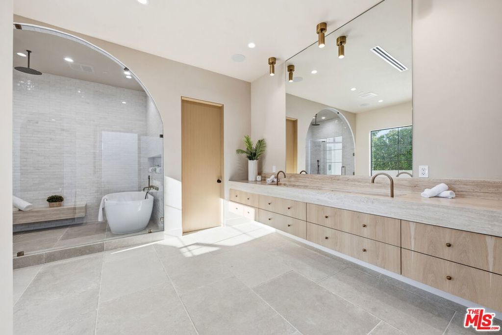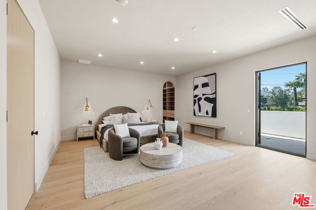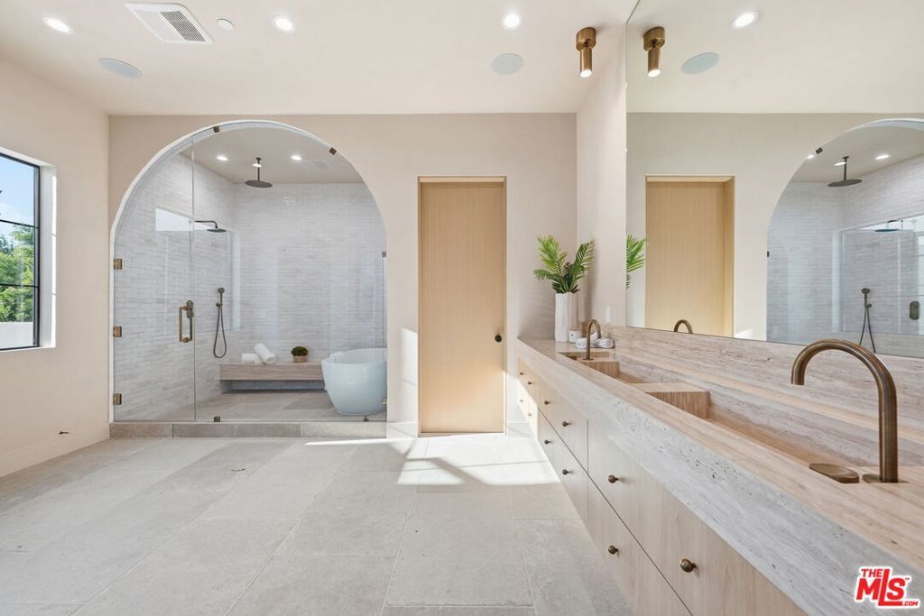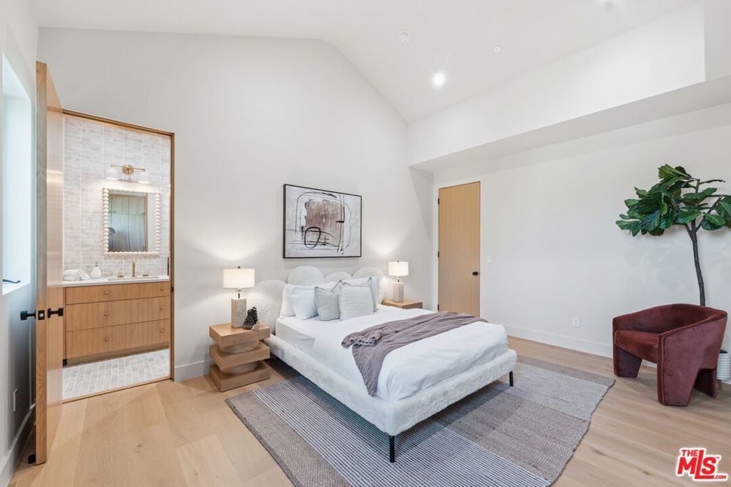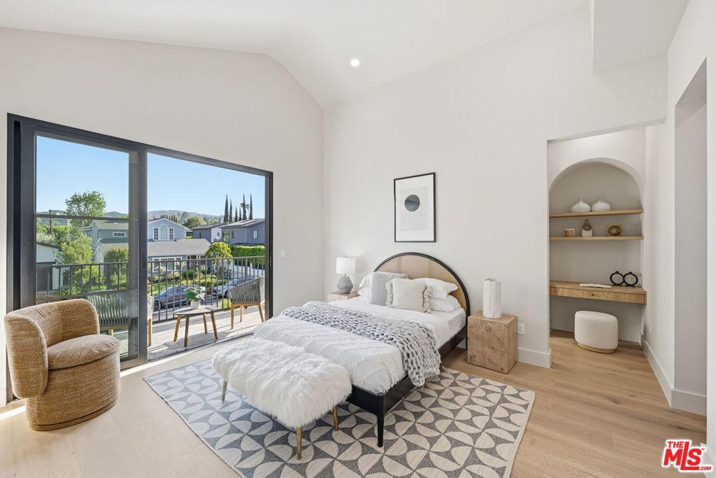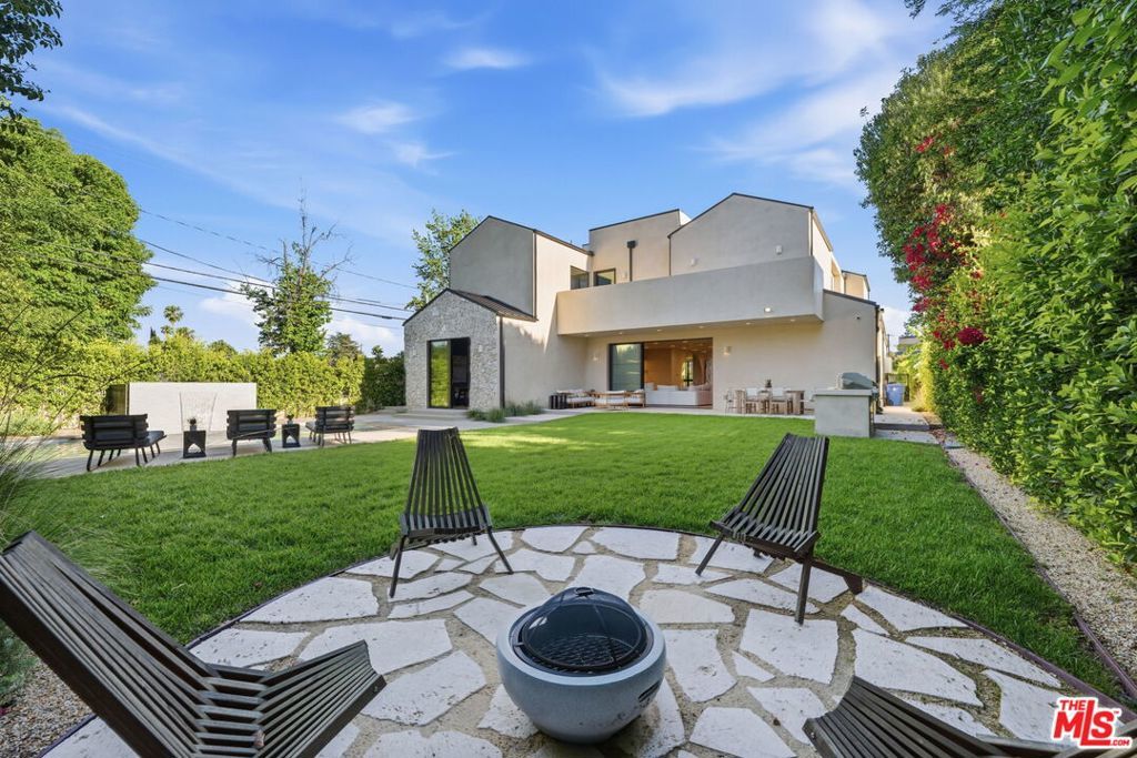 Modern organic newly built home on a prime Encino lot of over 10,000 sq ft, this refined farmhouse blends timeless architecture with warm, upscale design. Thoughtfully crafted with Roman clay plaster walls, soaring high ceilings, and an impressive open-concept layout, the home offers both comfort and sophistication. The main living spaces are designed for seamless indoor-outdoor living, filled with natural light and ideal for entertaining. At the center, the chef's kitchen features custom oak cabinetry, top-tier appliances, and an oversized island with breakfast seating. The primary suite is a true retreat, complete with a private balcony overlooking the yard, a spacious walk-in closet, and a spa-inspired bath. Home also offers a 1-bedroom ADU with its own kitchenette providing flexibility for guests, a home office, or extended living. The expansive backyard is a private oasis with a sparkling pool and spa, abundance of grass area and a built-in BBQ with bar seating, perfect for hosting or entertaining. Situated on a quiet tree lined street located near Encino's premier shopping, dining, and top-rated schools.