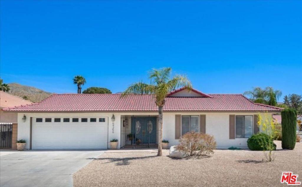 Resort-style living awaits in this beautifully upgraded single-story home, ideally situated on a prime CORNER LOT in Mission Lakes Country Club with MOUNTAIN VIEWS and close proximity to the GOLF COURSE. Just minutes from the clubhouse and a short drive to Palm Springs, this residence offers a seamless blend of luxury, comfort, and convenience. The open, airy floor plan features vaulted ceilings, a stylish built-in bar, and effortless flow into a sleek kitchen with stainless steel appliances, perfect for everyday living and entertaining. The spacious primary suite is filled with natural light and includes two walk-in closets and a luxurious en-suite bath. The spa-inspired bathroom showcases an expansive steam shower with three shower heads, including rain, wall, and hand-held options, along with dual seating for added comfort. A large double vanity with generous storage and elegant Carrara marble countertops completes the space. Two additional bedrooms provide flexibility and comfort, while the secondary bath features a Jacuzzi tub for relaxing. Outside, enjoy a private desert retreat with a sparkling pool, Jacuzzi, mature lemon trees, and peaceful mountain and golf course surroundings. Community amenities include golf, dining, fitness center, pools, spa, and guest hotel. Fireplace is decorative only.
