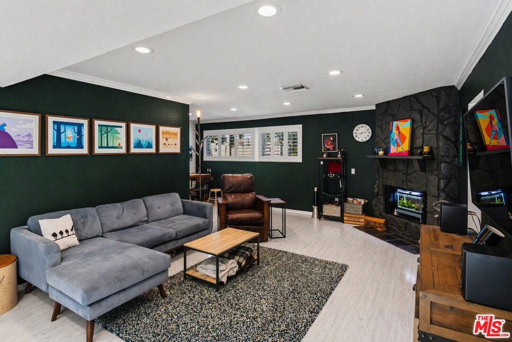 Stylish and thoughtfully updated, this end-unit residence offers exceptional privacy with only one shared wall and is among the largest units in the complex. This inviting residence blends comfort, functionality, and modern upgrades in a well-maintained community. The open living space is anchored by a cozy fireplace and flows seamlessly to a private patio with dedicated garden space ideal for indoor-outdoor living. The kitchen features upgraded GE Cafe appliances and connects easily to the main living areas, perfect for everyday use or entertaining. In addition to two bedrooms and 2.5 baths, a flexible main-level room just off the living area offers excellent versatility, ideal as a home office, media room, or guest space and includes a convenient powder room with vanity. Additional highlights include central air and heat with a smart thermostat, newer dual-pane windows (approx. 2 years old), and a brand-new roof completed in January. The property also offers two side-by-side parking spaces in a secure garage, complete with a private EV charger. Low HOA dues enhance overall affordability while maintaining the community. A well-rounded offering with smart upgrades, flexible living space, and strong lifestyle appeal.