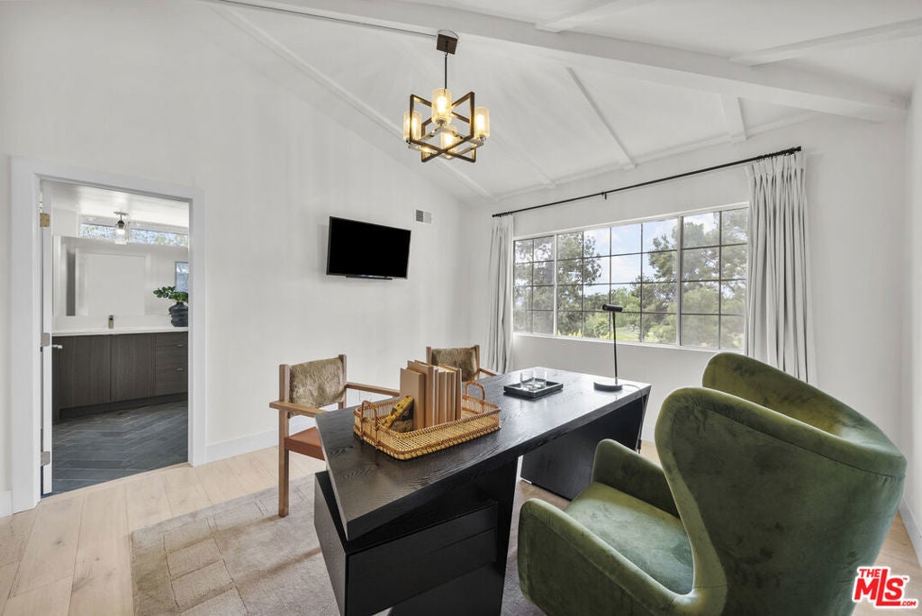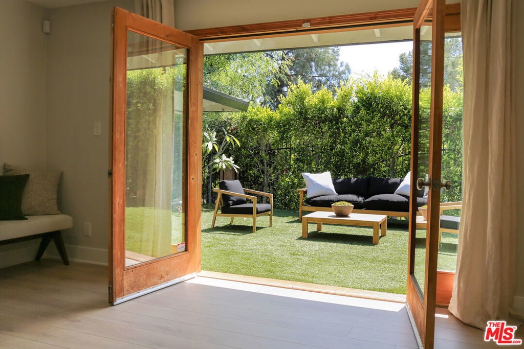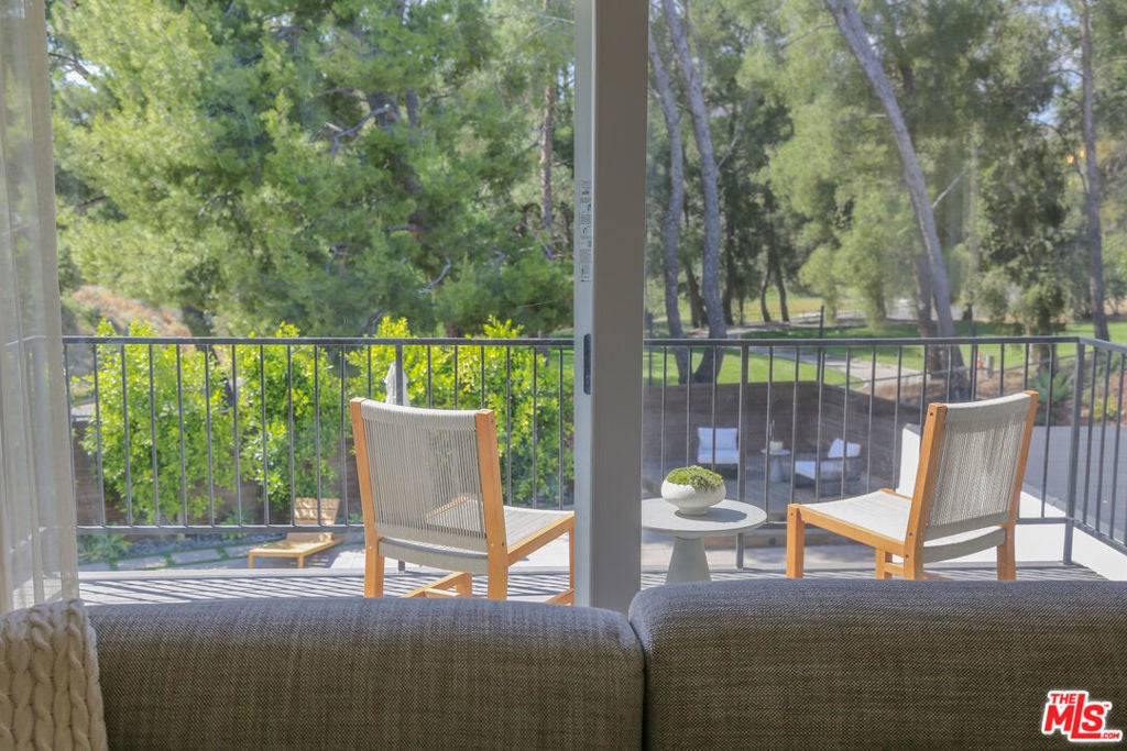 Set within the highly sought-after Knollwood Estates of Granada Hills, this stunning contemporary residence sits on an expansive 18,000 sq ft corner lot overlooking the 9th tee of the country club golf course. Elevated above the street and tucked behind gates, the home offers exceptional privacy, scale, and a true sense of retreat.Spanning approximately 3,600 sq ft, the thoughtfully designed floor plan features a formal living room, formal dining room, oversized family room, and a versatile library/office, along with an upstairs den. The open-concept kitchen is the heart of the home, complete with quartz countertops, a large center island with breakfast bar, newer stainless steel appliances, and abundant custom cabinetryseamlessly connecting to the main living spaces for effortless entertaining.All four bedrooms are generously sized and en-suite, offering flexibility for families and guests alike. The luxurious primary suite occupies its own private level, showcasing vaulted ceilings, a sitting area, and an extended private balcony, an increasingly rare feature due to current building restrictions overlooking the pool and grounds. The suite is complete with a spacious walk-in closet and a spa-inspired bathroom with dual vanities and a glass-enclosed shower.The outdoor setting is designed for both relaxation and entertaining, featuring a remodeled pool, Brazilian Ipe wood deck, and a custom outdoor movie experience with projector and dedicated viewing wall. The grounds also include a utility closet, multiple entertaining areas, and mature landscaping with a passionfruit tree in the driveway and lemon and grapefruit trees in the side yard.Additional highlights include newer flooring throughout, automatic shades in the downstairs large glass windowed room, and a dedicated EV charging outlet. Residents of this section of Knollwood Estates also enjoy the added benefit of a private security patrol, included as part of the HOA and serving a select group of homes near the golf course.Natural light pours in through skylights, French doors, and expansive windows, enhancing the home's bright, airy ambiance and cohesive designer finishes throughout.A rare offering that seamlessly blends privacy, lifestyle, and locationthis is Granada Hills living at its finest.