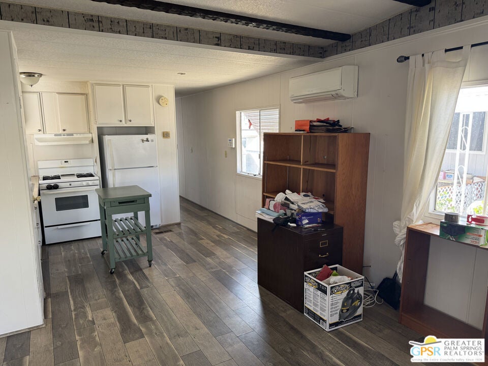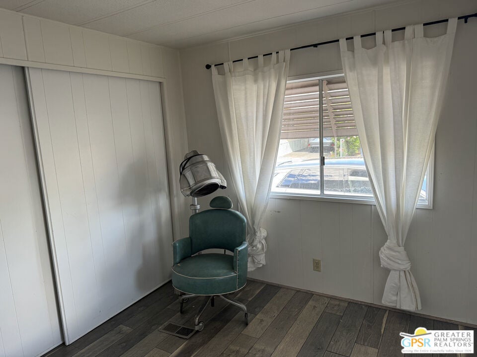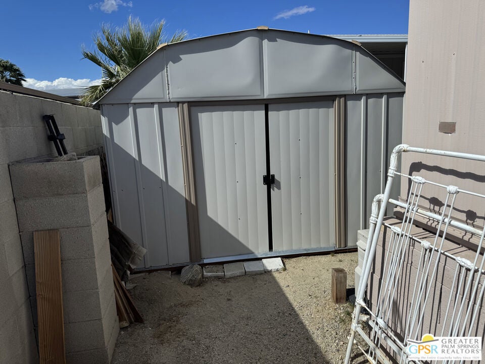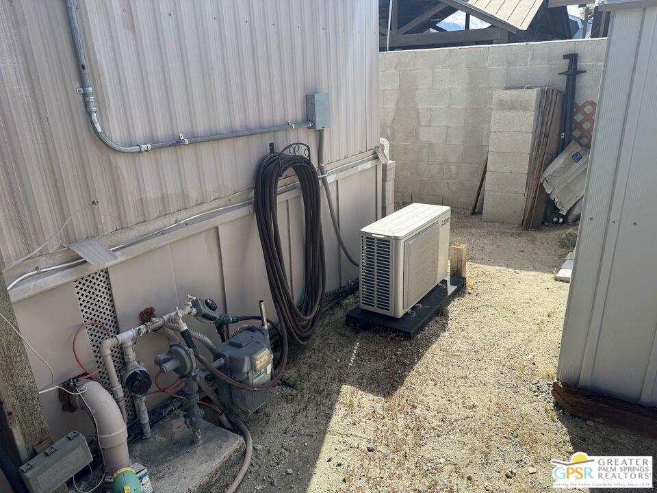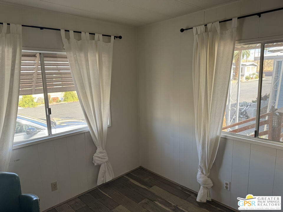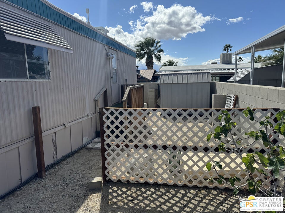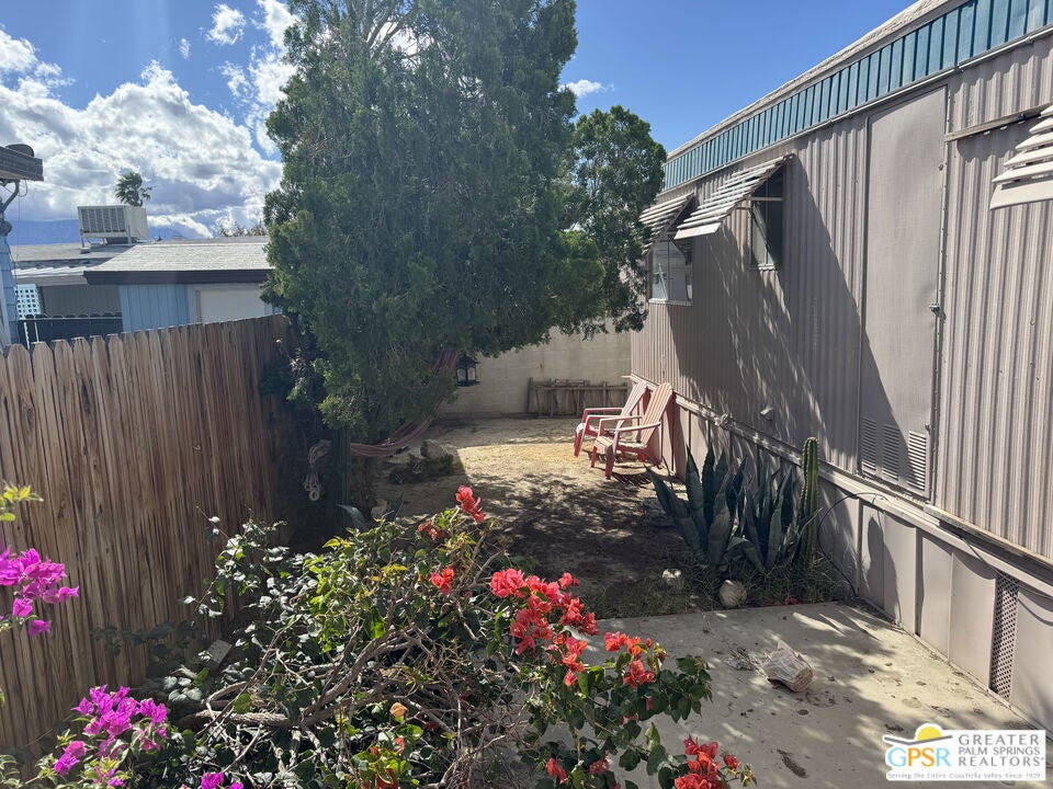 Welcome home to Desert View Mobile Home Club. Very private community which is located in east Desert Hot Springs. This 2 Bedroom 1.5 Bath Mobile Home is ready for your updates. It features an open great room in it's approximately 800 sf and has a lovely rear yard with trees. The great room features a mini-split heat pump and the main bedroom offers a window wall Air Conditioning unit. The front bedroom has it's own half bath, with toilet and sink. This home is very close to the large clubhouse and pool and spas. Why not make this great home your new home today.