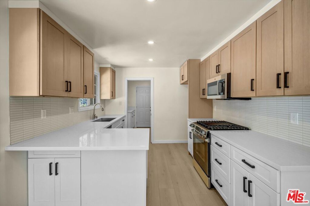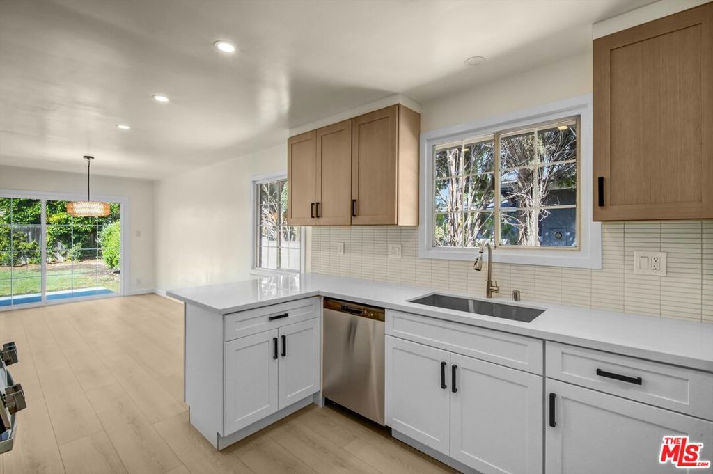 Welcome to this nicely updated Woodland Hills home that sit's on a quiet tree lined street. With lots of natural light and functional floor plan that flows from the entrance foyer to the living room with fire place, dining area is off the kitchen. The fully updated kitchen with new shaker cabinets, quartz countertops, breakfast bar and stainless steel appliances. Off of the living room is a large patio and backyard. Throughout the home you'll find new water proof laminate flooring, can lighting and dual pane windows. The primary bedroom with ensuite. 2 other bedrooms are good sized. The hall bath features a shower over tub and double vanity. The laundry room is just off the kitchen with direct garage accses. Centrally located to schools, stores and transportation. Garage walls are finished. New paint inside and out, new roof, new water heater, Full copper plumbing and HAVC. Landscape is growing in.