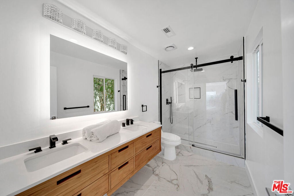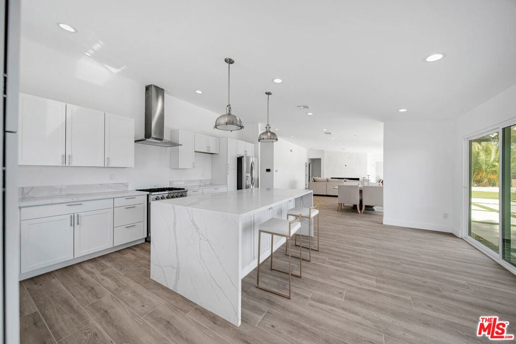 Amazing panoramic views from this single story Woodland Hills home. A gated private entry leads to a newly renovated open floor plan with 4 bedrooms and 4 bathrooms. Brand new chef's kitchen with large island, laminate flooring, new windows, and much much more. Walking distance to schools and shopping.