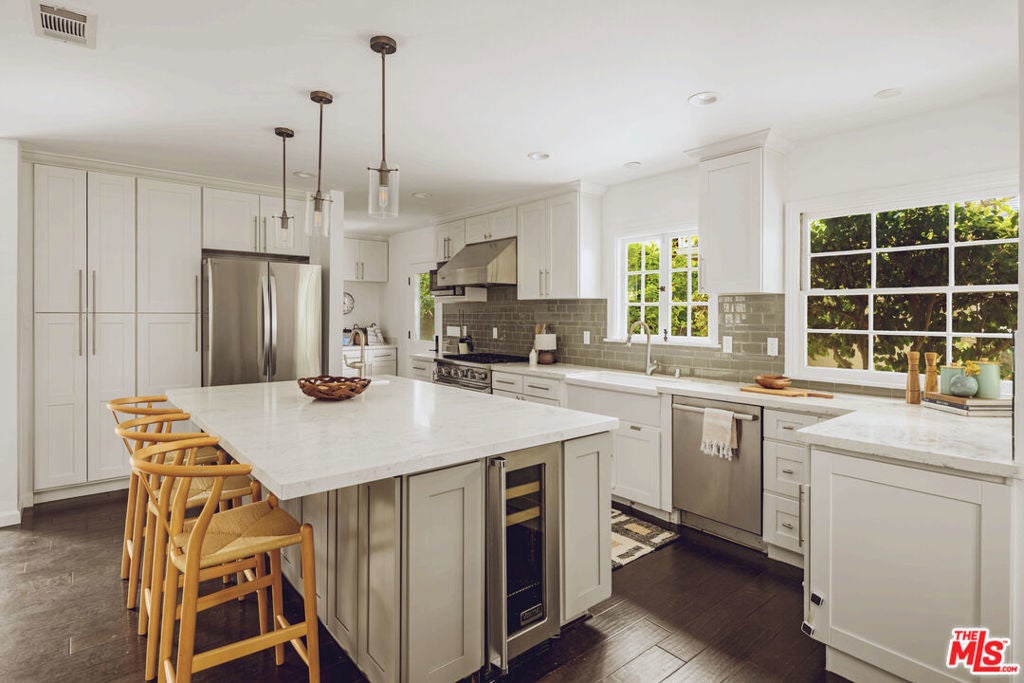 Beautiful traditional home tucked away on a quiet, tree-lined street in Pasadena's highly sought-after Linda Vista neighborhood. Privately hedged and thoughtfully landscaped, the property offers an abundance of outdoor space, perfect for entertaining, relaxing, or enjoying lawn games. This 3-bedroom, 2.5-bath residence features an open and airy floor plan anchored by a marble fireplace. The chef's kitchen provides both function and style, complete with a Viking range, expansive center island with prep sink, and two wine refrigerators, ideal for everyday living and hosting alike. The grounds are a true highlight, showcasing lavender, a variety of mature fruit trees including lemon, pomegranate, and stone fruits, creating a serene, garden-like setting. The home has been thoughtfully enhanced and maintained over time with meaningful upgrades that add both comfort and peace of mind, including foundation earthquake bracing, redoing retaining walls, upgraded irrigation, curated landscape improvements, and a variety of lights and security features. Ideally located near the Rose Bowl, Brookside Golf Course, and shops, restaurants, and cafs of Old Town Pasadena, this home offers the best of Pasadena living with a perfect balance of privacy, charm, and convenience.