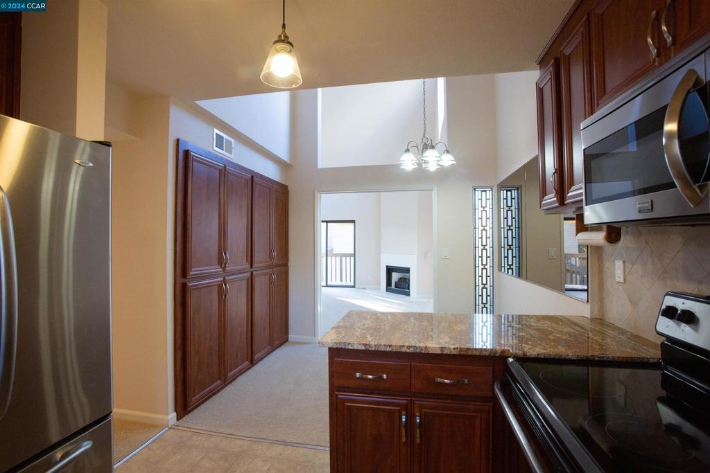 Impeccably clean 2BD/2BA single-level penthouse style condominium, just minutes away from freeway, BART, highly regarded schools, parks and downtown Pleasant Hill with lovely shops, restaurants and entertainment. This beautiful home is sun kissed and boosts vaulted ceilings and fireplace in the living room, 2 master suites with en-suite bathrooms, indoor washer and dryer, 2 refrigerators, 1-car garage and nicely remodeled kitchen with tons of cabinets. Freshly painted and brand new carpet.
