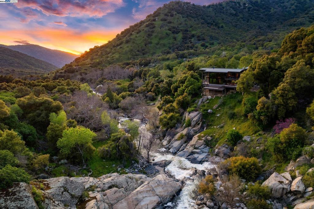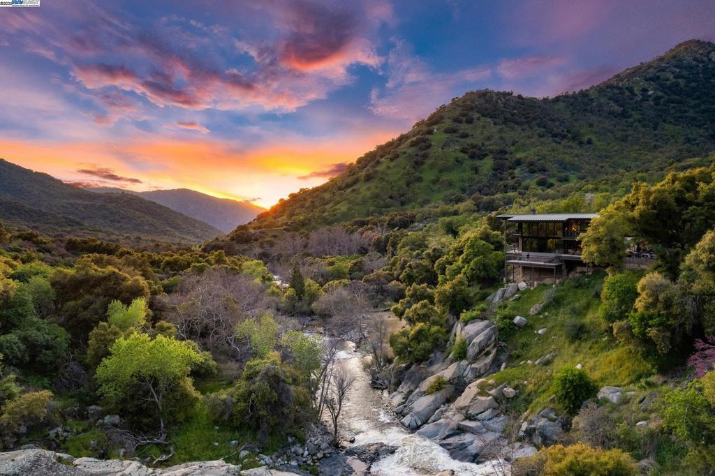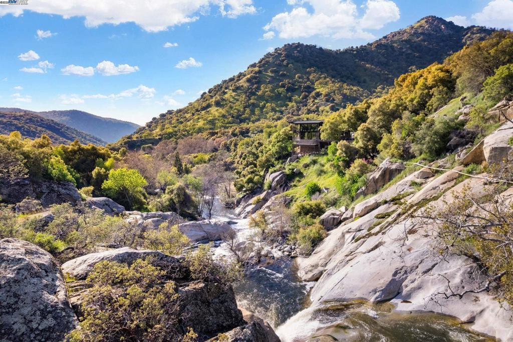 Nestled along the South Fork of the Kaweah River near Sequoia National Park, this extraordinary estate offers unmatched serenity and investment potential. A 22-ft cascading waterfall flows into private swimming ponds, creating a true oasis on 43+ acres. Perfect as a luxury vacation rental, boutique lodge, corporate retreat, or entertainment venue, this 3,500+ sq. ft. steel-framed masterpiece features three en-suite bedrooms, each with a viewing deck, plus a versatile multi-purpose room/office that could serve as a 4th bedroom. Floor-to-ceiling gold reflective windows showcase breathtaking views of the waterfall, river & mountains. The grand family room stuns with vaulted wood ceilings, solid oak flooring & a 24-ft stone fireplace. A chef’s dream kitchen boasts a massive stone island, top-tier appliances & a walk-in pantry. This extraordinary property offers sustainable luxury, with a 400-ft private well, a deeded flume for a reliable water & potential electricity source & owned solar panels with a transferrable 25-year warranty feeding directly into the grid. Whether you're seeking a private sanctuary, a Luxury investment property or an unforgettable event venue, this estate is a rare opportunity to own an exclusive retreat in one of the most breathtaking locations imaginable!