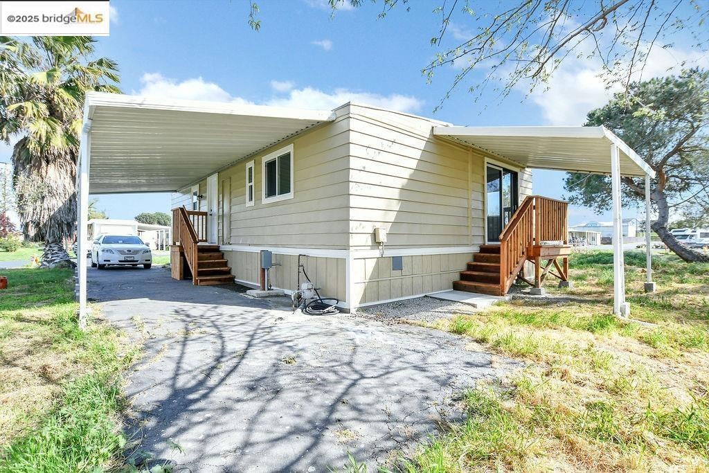 Affordable Home Alert!!! This remodeled double wide mobile home is located in the heart of the Delta waterways within Santiago Island Village Family mobile home park. The exterior skirting is new, new double pane windows, new flooring, new interior and exterior paint, new plumbing system, new heater, textured interior walls, 6 panel interior and exterior doors. The kitchen has a complete facelift with decorator cabinetry, stainless steel sink, decorator faucet, granite counters, beautiful glass tile backsplash, gas stove, and refrigerator. The spacious bathroom features a new designer vanity. There are entry steps from the covered left patio, parking garage, or the primary bedroom. This is a great opportunity to go from tenant to homeowner. A refreshing change from urban noise and smog, this peaceful community has several restaurants within a 5-10 minute drive and is centrally located between the cities of Oakley and Brentwood where all major shopping can be found. Spacious lots, quiet streets, rustling trees and large grassy areas all add to the ambiance and country atmosphere. Mobile home park is located across the street from million dollar properties. Fireplaces: NO