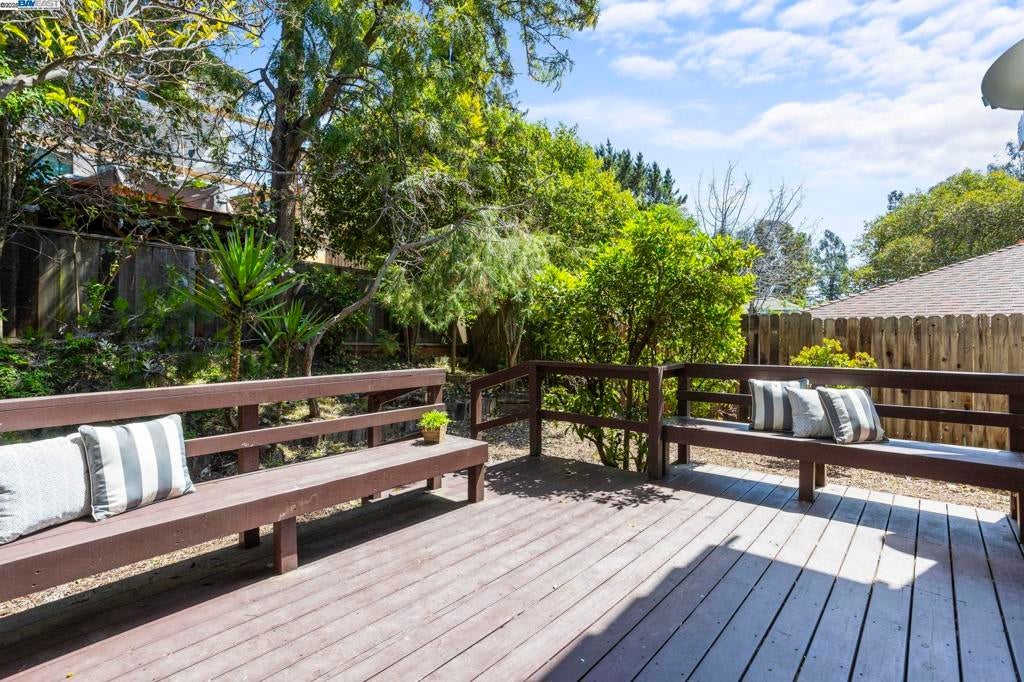 Nestled in the desirable Hayward Hills, this beautifully upgraded home offers the perfect blend of comfort and style. Inside, enjoy a bright and airy living room with soaring vaulted ceilings, fresh interior paint, and newer flooring. The kitchen is designed for both form and function, complete with granite counters, built-in pantry, roll out drawers and a gas stove—highly sought-after by cooking enthusiasts. The primary bedroom suite has two large windows and an abundance of natural light, walk-in closet, fireplace, sitting area, and remodeled en-suite bathroom featuring quartz countertop, double sinks, and a large linen closet for added storage. The Tahoe-like backyard is a true retreat, featuring a spacious deck with built-in seating, mature trees, and lush landscaping—ideal for relaxing in nature or entertaining guests year-round. Wonderful Hayward Hills location near local parks, restaurants, downtown Hayward and Castro Valley. Very convenient for traveling the Bay Area freeways using nearby 580 or 880 to the Tri-Valley, Silicon Valley, and San Francisco.