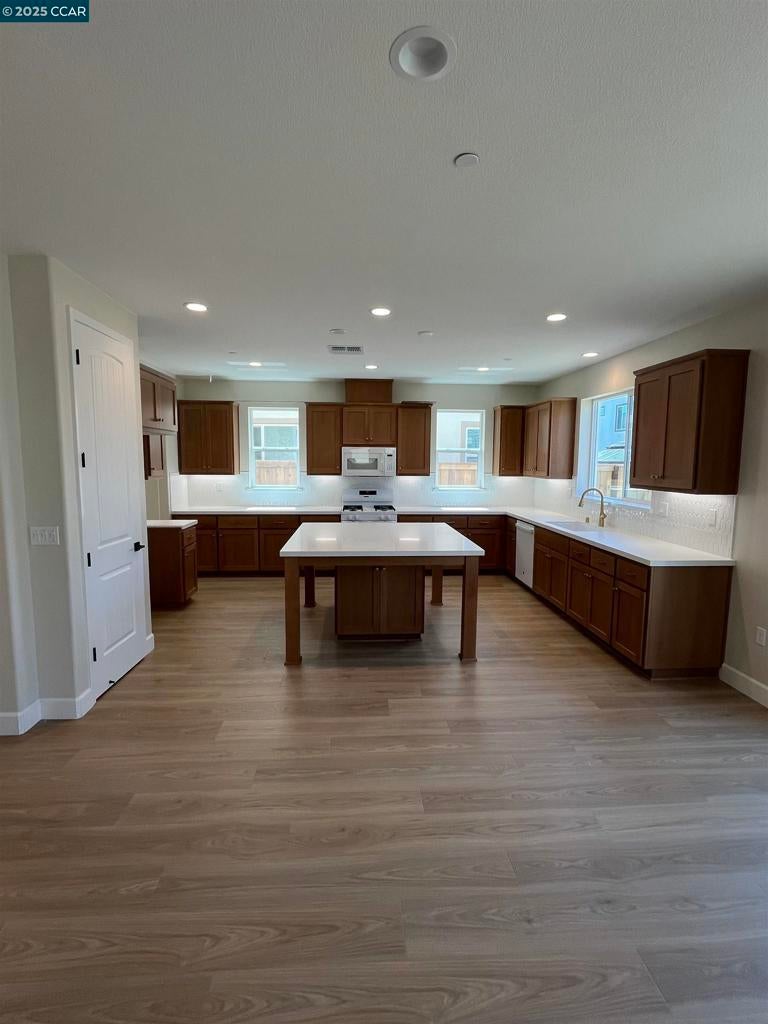 Welcome to The Dawson at The Estates at Newport in West Sacramento, where modern living meets thoughtful design. This expansive two-story home offers 3,123 sq. ft. of living space, 4 bedrooms, and 3.5 baths. The main level features an open-concept layout, perfect for entertaining, with a formal dining room, living room, and family room flowing into the beautifully upgraded kitchen. Highlights include caramel-stained shaker cabinets, brushed gold hardware, quartz countertops, and a clean white tile backsplash. Appliance package is included with a GE range, microwave and dishwasher A first-floor bedroom with an ensuite bath provides versatility as a guest suite or home office. Upstairs, the luxurious primary suite boasts a spacious walk-in closet and a spa-like bath with upgraded tile, dual sinks, a soaking tub, and a separate shower. Two additional bedrooms, a full bath, and a flexible loft complete the second floor. Upgrades include laminate flooring, plush carpeting, and modern brushed gold hardware and lighting throughout. The landscaped front yard is low-maintenance and drought-tolerant. The Dawson offers the perfect blend of style, comfort, and convenience all near the cultural and outdoor life that Sacramento has to offer. Don’t miss this opportunity!