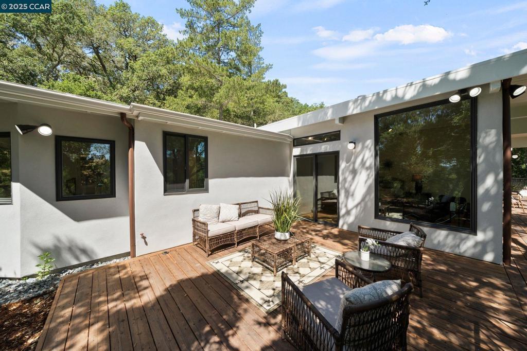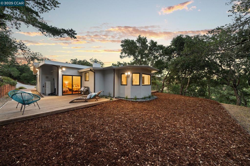 Use 119 Melody for correct directions!! Fully remodeled single-level mid-century modern masterpiece nestled in the serene foothills of Orinda. Enjoy the elite k-12 public school system that Orinda offers. Sweeping views of the hills and valleys, the sounds of nature, and the beauty of the local flora and fauna allow for an easy path to peace in this unique slice of paradise. Indoor/outdoor mid-century living and entertaining at its best! Floor to ceiling windows and 9 skylights fill the living space with warm natural light. The nearly 4 acre lot offers the owner unparalleled privacy and the opportunity for expansion; plant an orchard or vineyard, or extend the deck and add a pool. (ADU plans provided!) The chef's kitchen is fully equipped with stainless high end appliances including a 48" Sub Zero refrigerator/freezer, a 6-burner professional Wolf range, and quartz countertops. Just 15 feet from the attached garage to the kitchen counter. The remodel left nothing in question; low maintenance hardscaping, new roof and gutters, walls, windows and sliding doors, appliances, Phylrich and Gröhe fixtures, decking, siding, kitchen, bathrooms with programmable radiant heated floors, flooring, gas lines, water lines, and a 7-zone HVAC mini-split system.